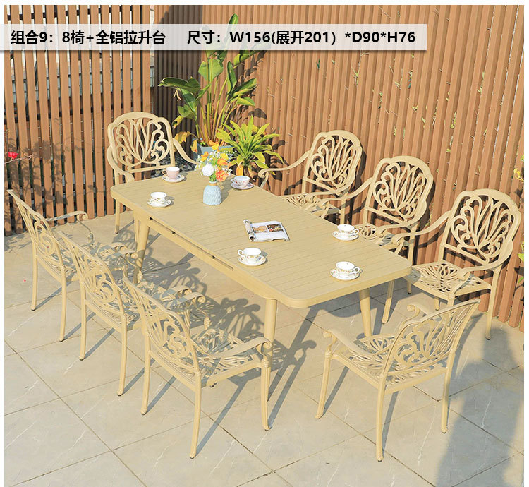 • 조합 9: 의자 8개 + 156(확장 201)*90*H76 전체 알루미늄 리프팅 플랫폼