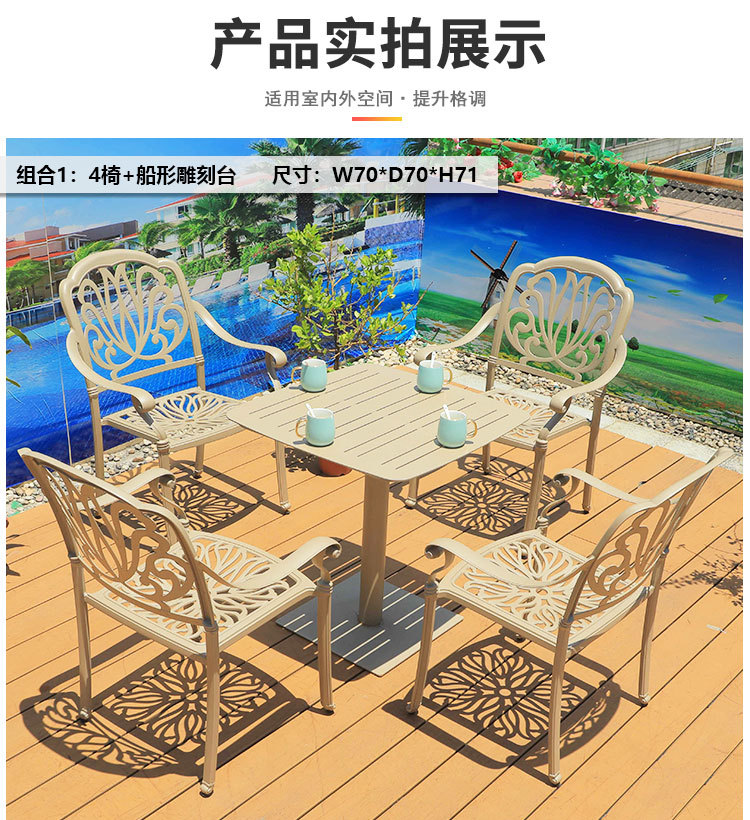 • 조합 1: 의자 4개 + 70*70*H71 보트 모양 조각 테이블