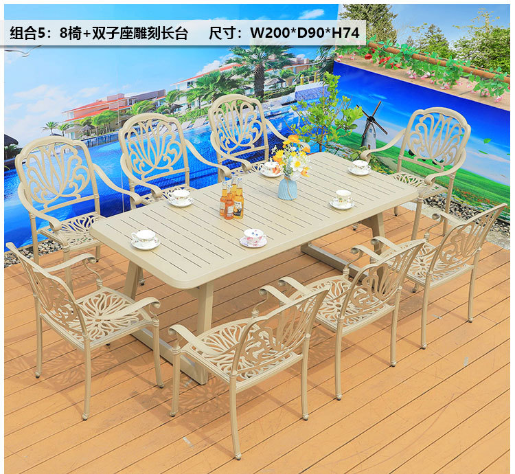 • 조합 5: 의자 8개 + 200*90*H74 쌍둥이자리 조각 긴 테이블