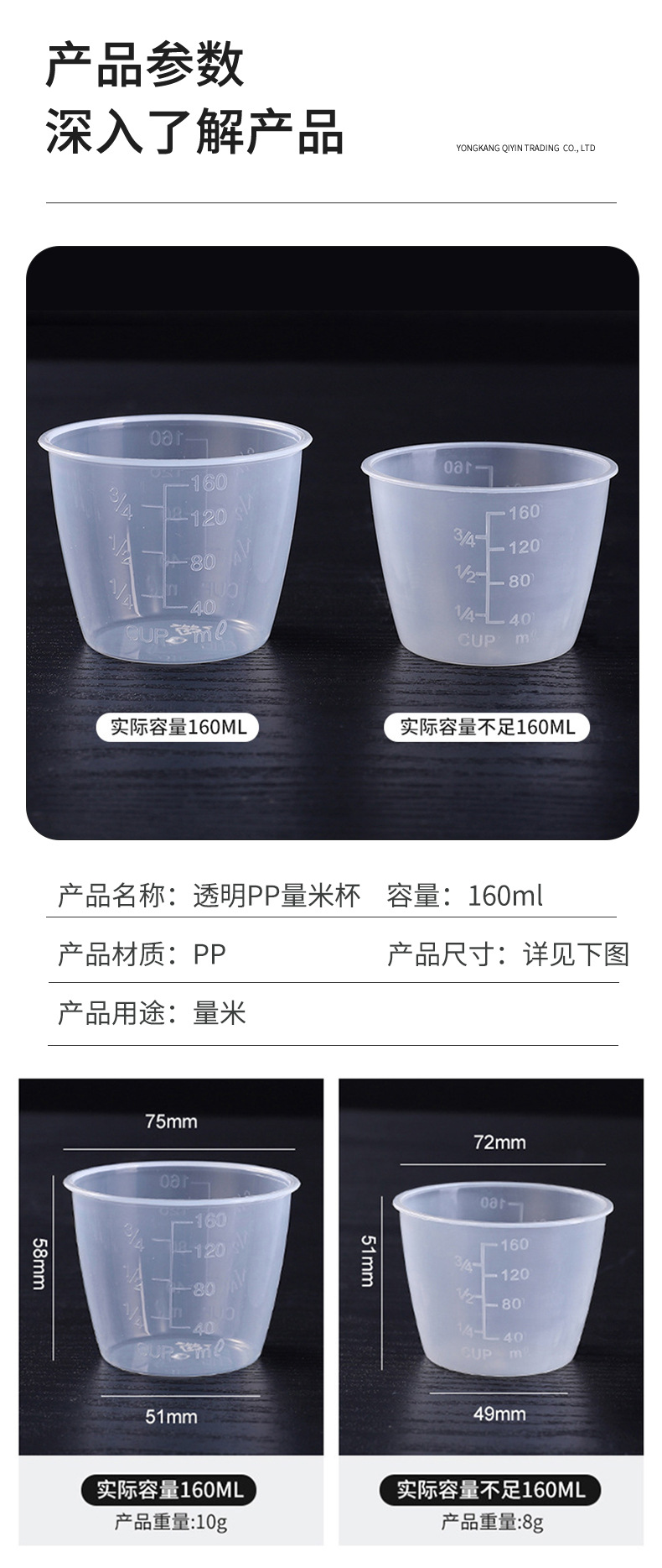 식품 등급 PP 플라스틱 계량컵 160ml 전기밥솥용 쌀 계량컵 눈금 표시 베이킹용 투명 계량컵 전자레인지용