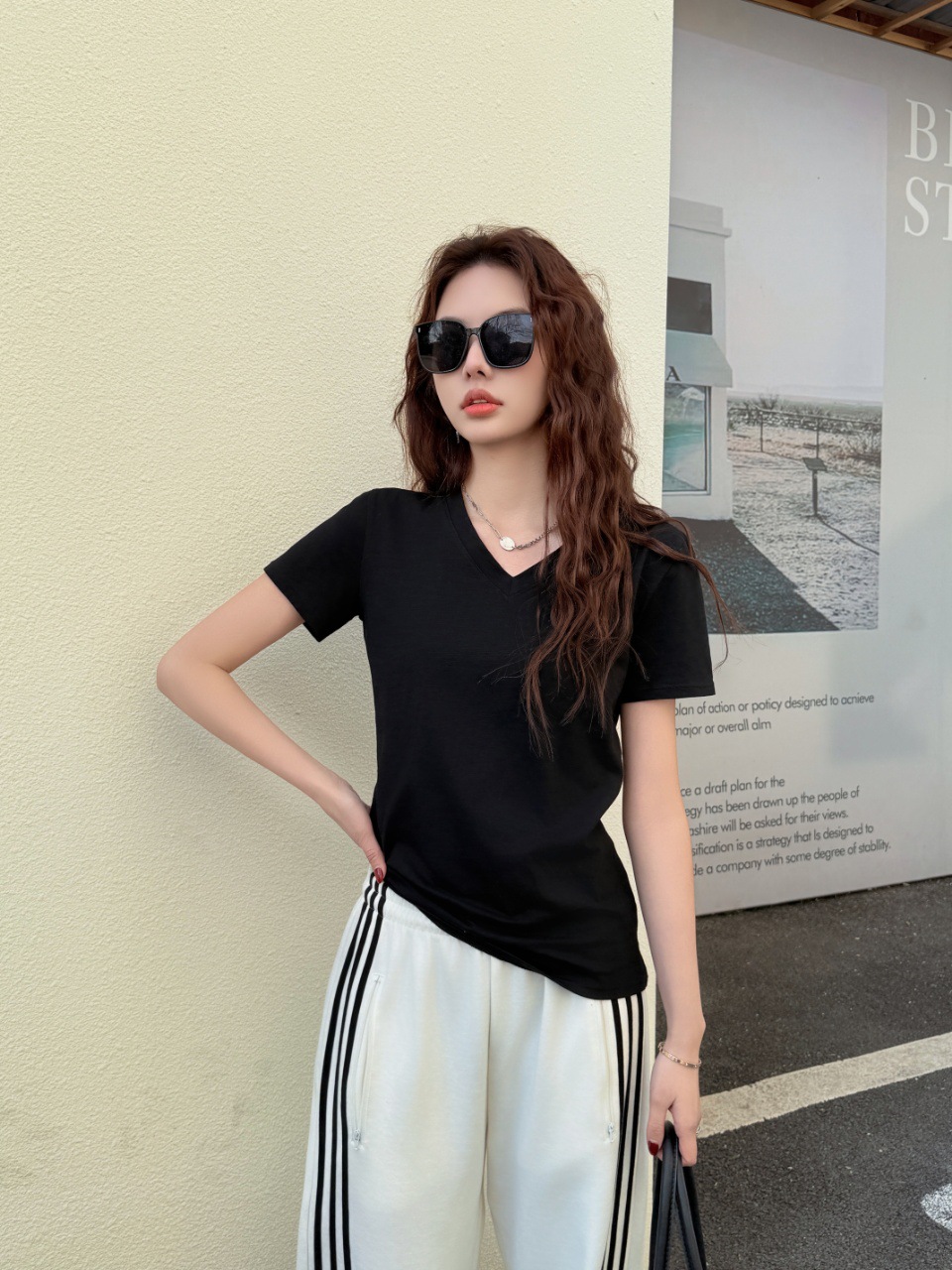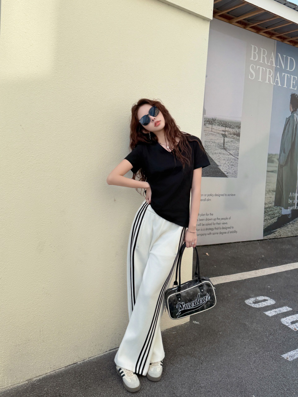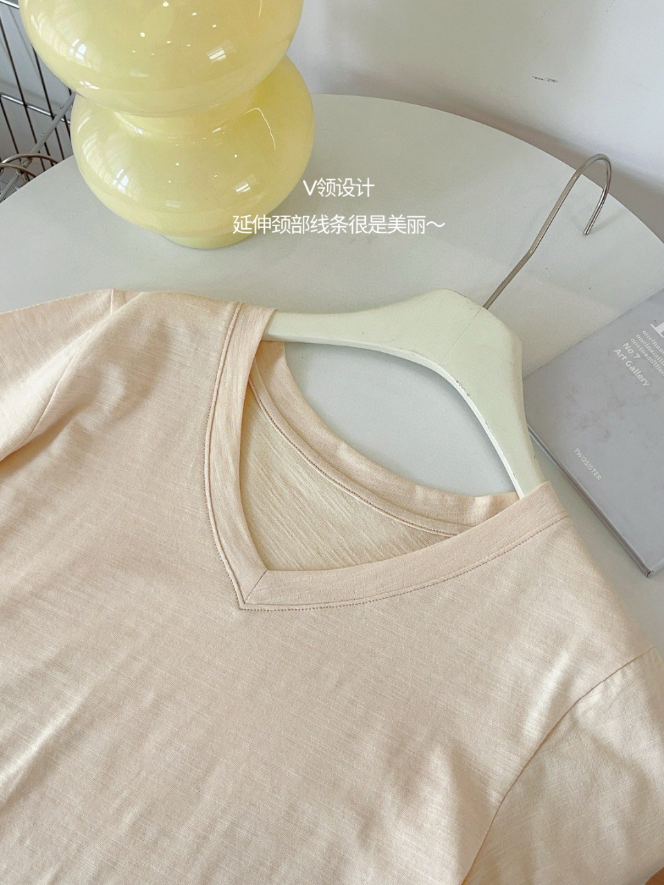 화이트 대나무 코튼 소재의 여성용 여름 반팔 티셔츠, 활용도 높은 숏탑, 브이넥 캐주얼 베이직 티셔츠, 루즈핏스토어 가기