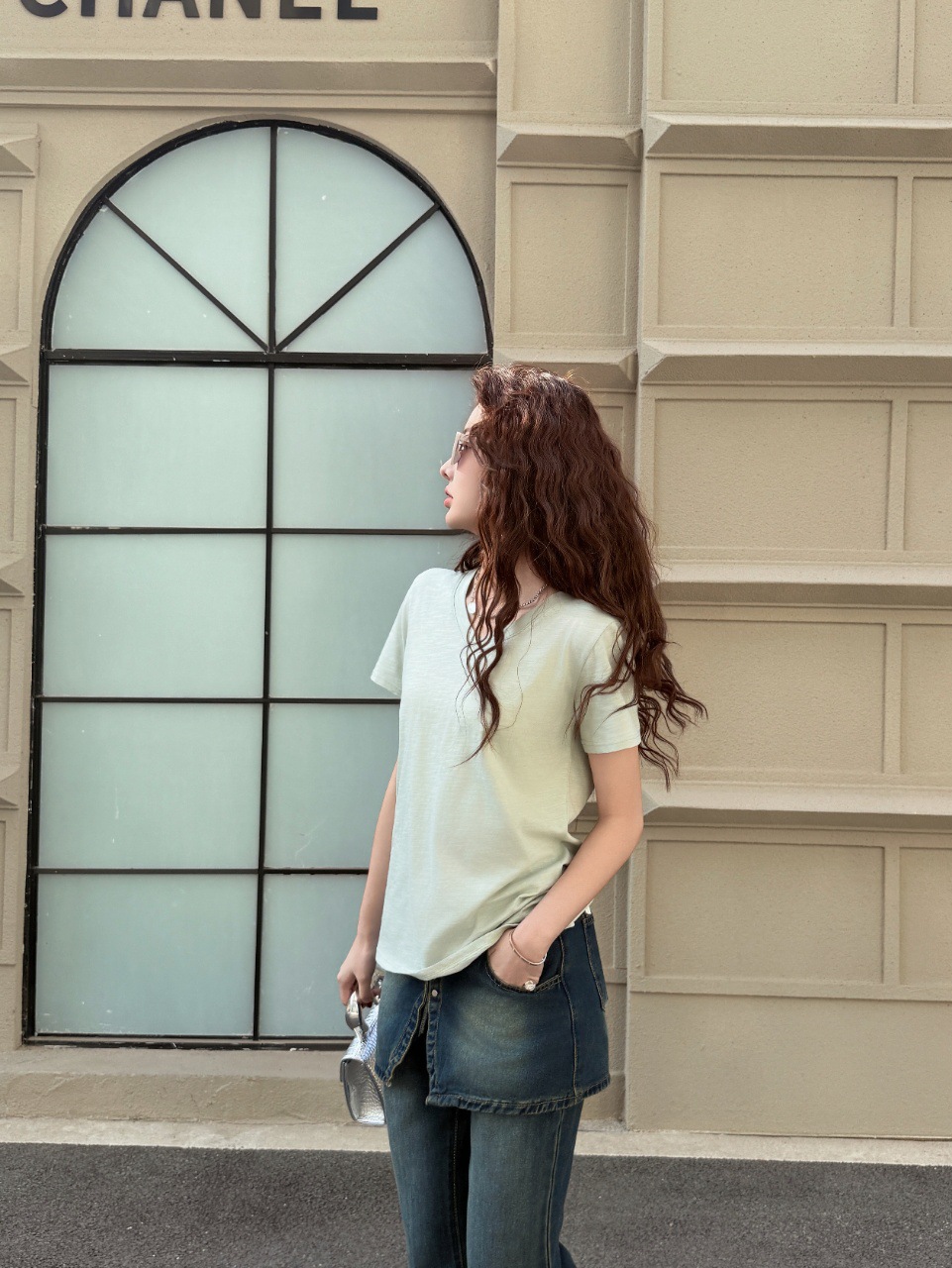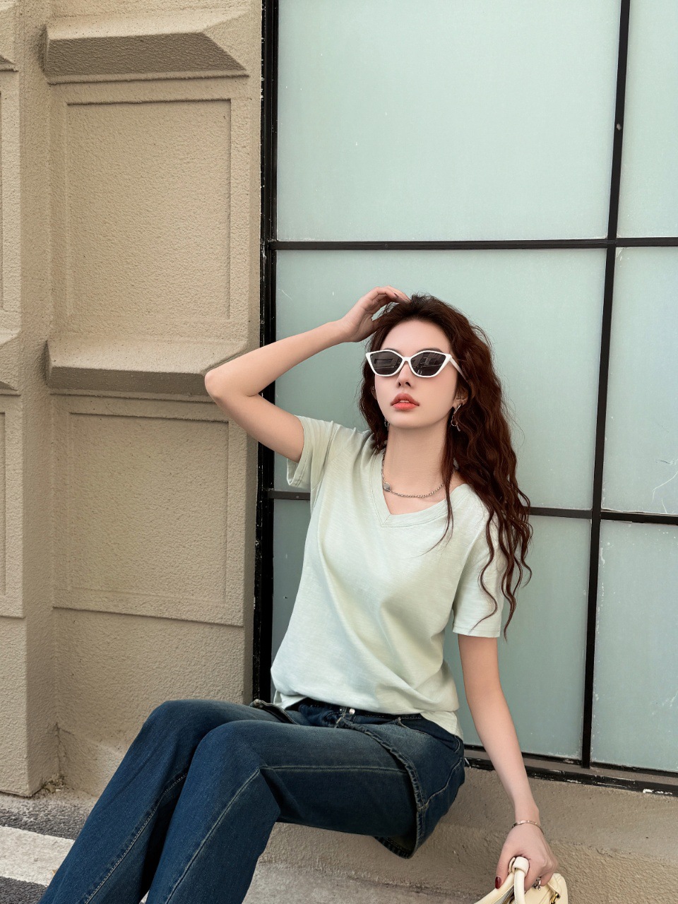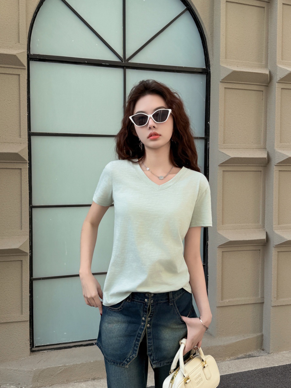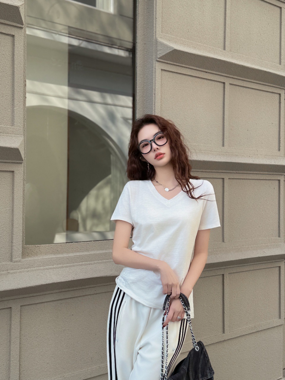 화이트 대나무 코튼 소재의 여성용 여름 반팔 티셔츠, 활용도 높은 숏탑, 브이넥 캐주얼 베이직 티셔츠, 루즈핏스토어 가기