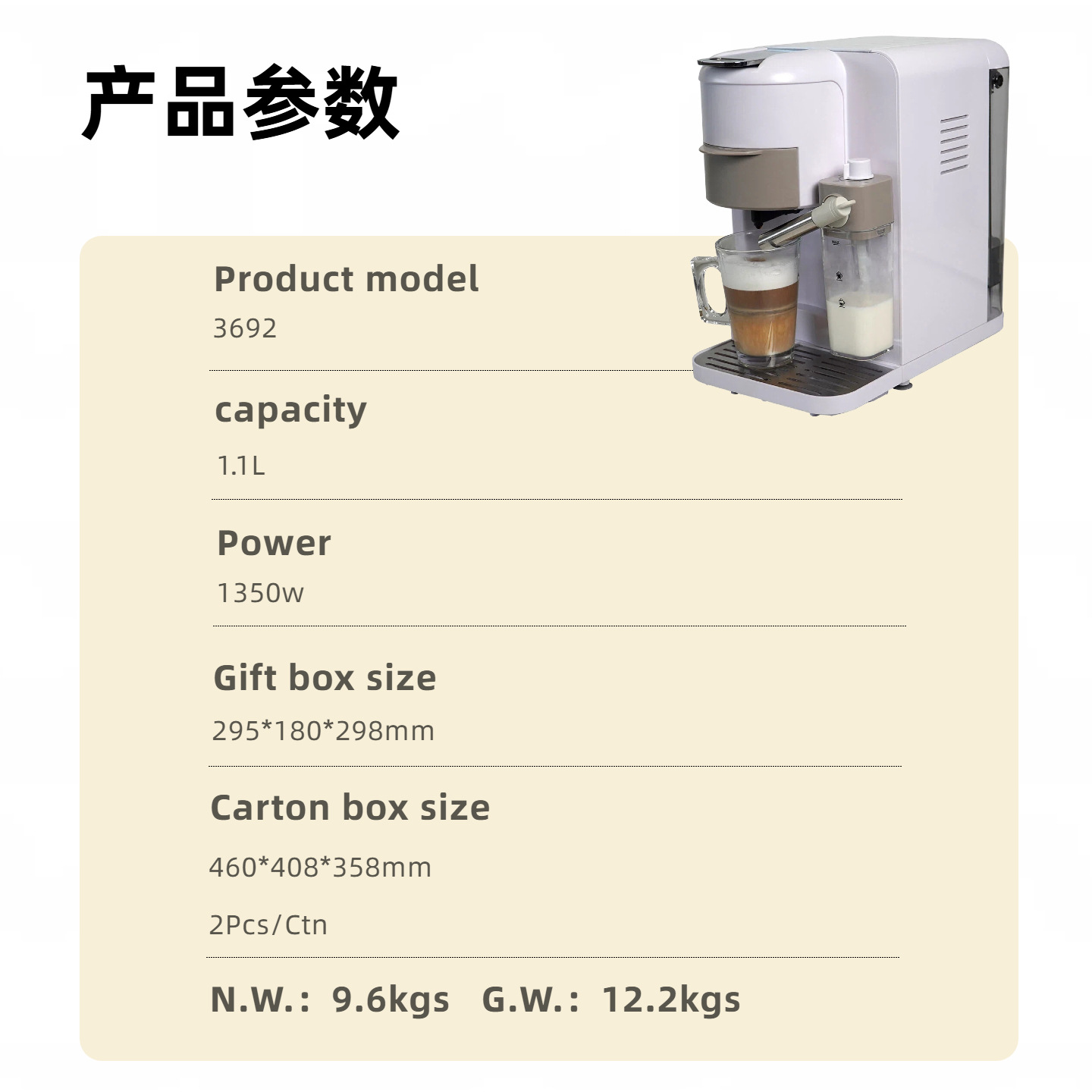 毛净重: 10.7 / 13 Kg