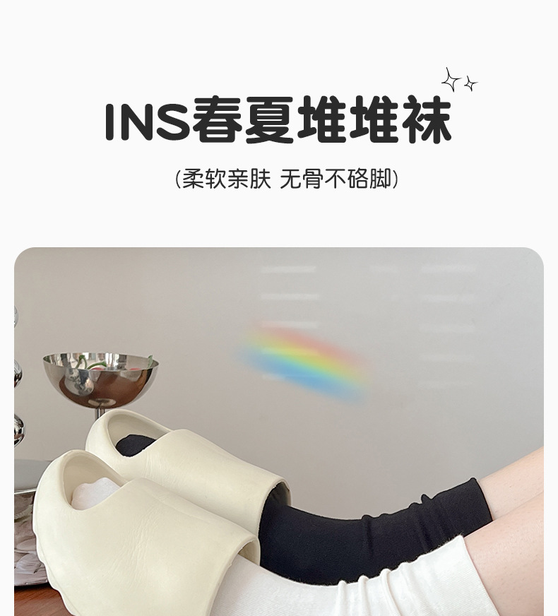 뼈없는 양말 어린이 중간 길이 양말 순면 올매치 달 양말 봄과 가을 흰색 긴 튜브 스택 양말 여름 얇은 스타킹스토어 가기