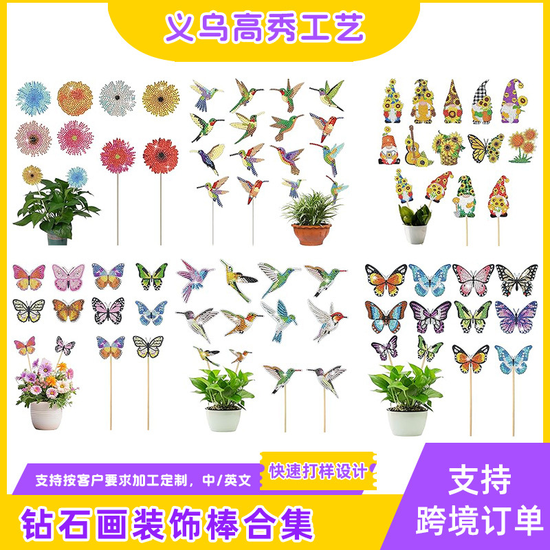 다이아몬드 페인팅 장식 스틱, 맞춤형 화분 삽입 막대, 맞춤형 식물 장식품, 다이아몬드 스티커, DIY 수제 정원 말뚝 스티커스토어 가기