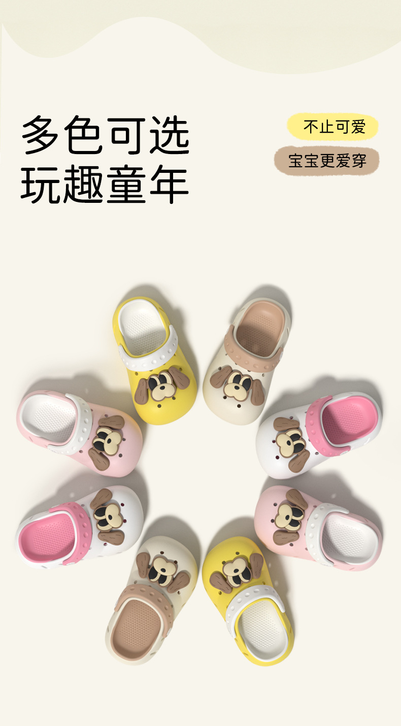 여름 새로운 완두콩 어린이 만화 강아지 구멍 신발 귀여운 경량 2 색 인테리어 이동식 샌들