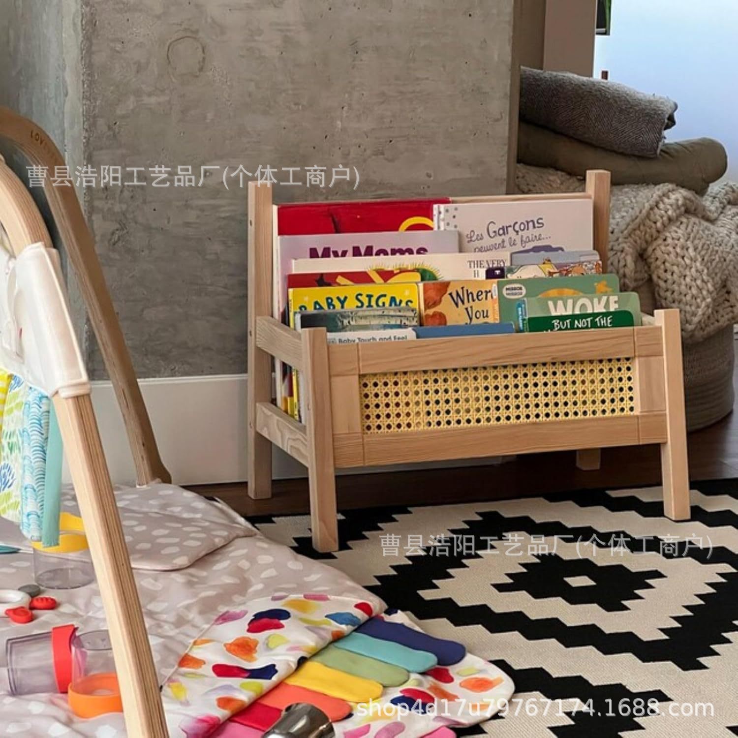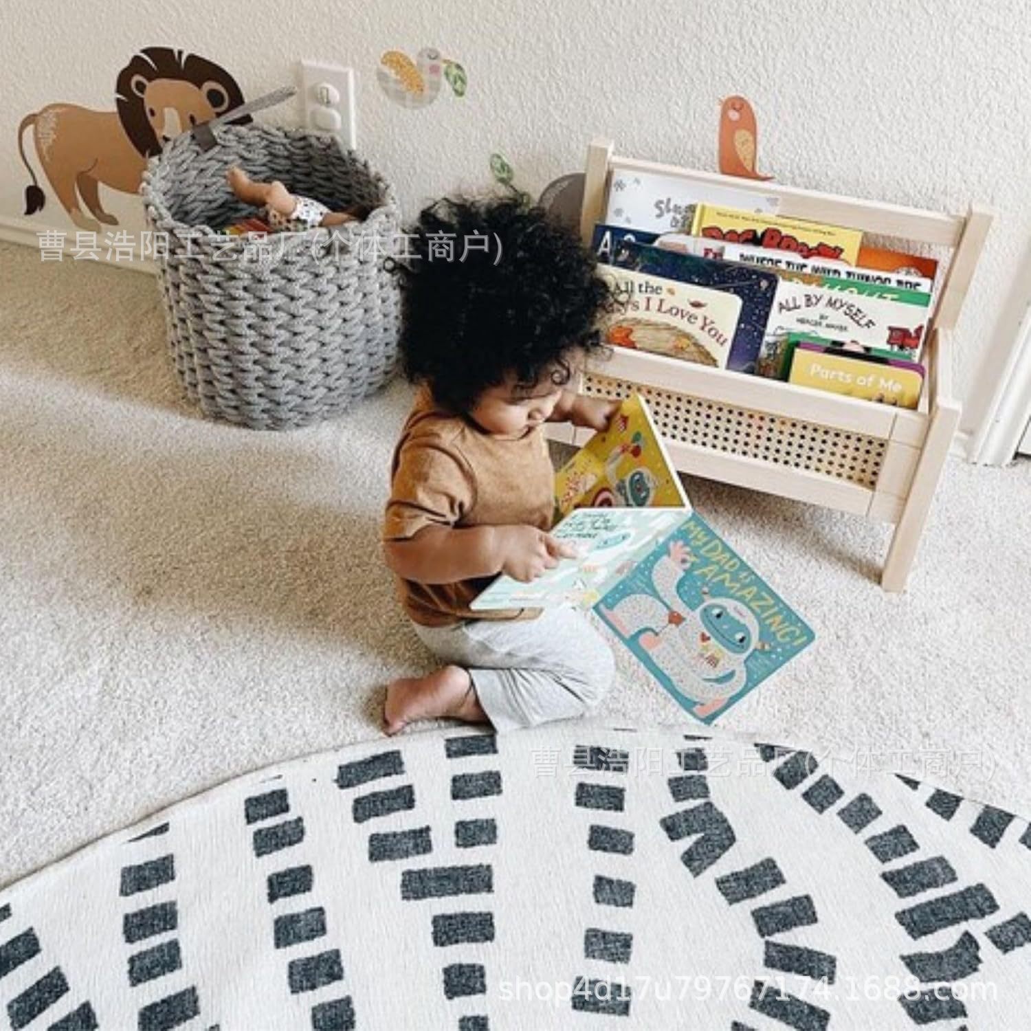 국경 간 나무 어린이 독서 랙 바닥부터 바닥까지 책장 책장 아기 독서 침실 잡화 장난감 보관 랙