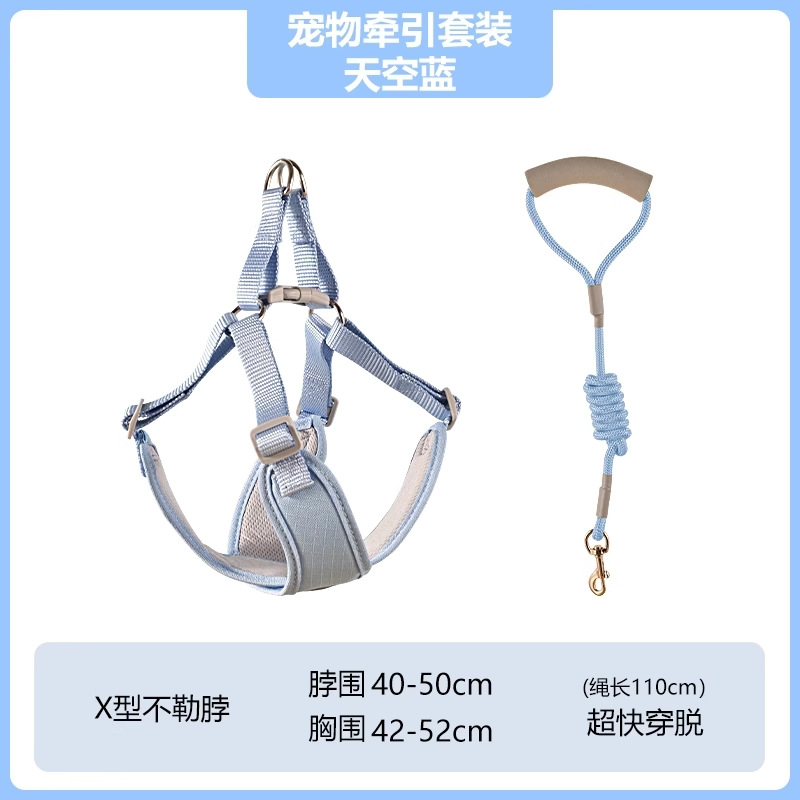 • 애완동물 목줄 세트 [하늘색] M 사이즈 (권장 3.5-8kg )