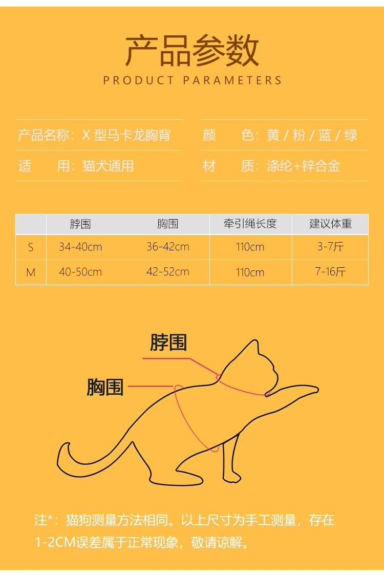 • 애완동물 목줄 세트 [레몬옐로우] M사이즈 (권장 3.5-8kg개)