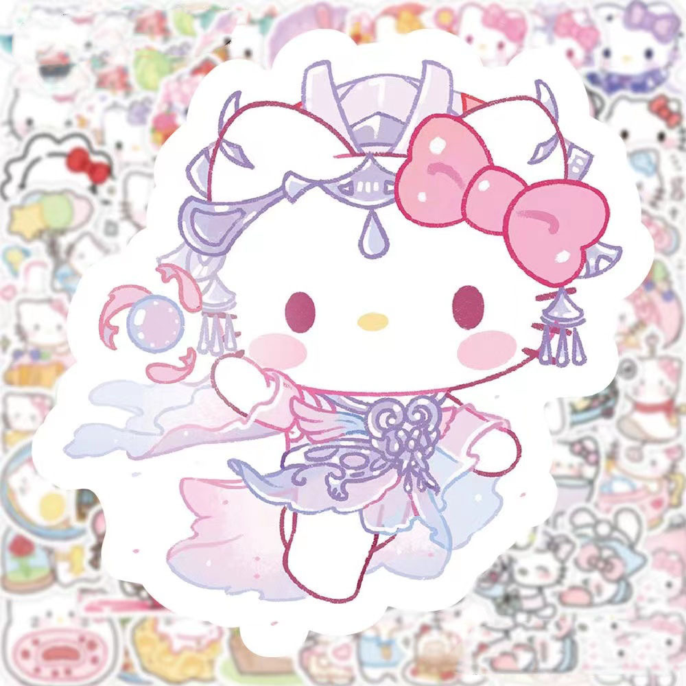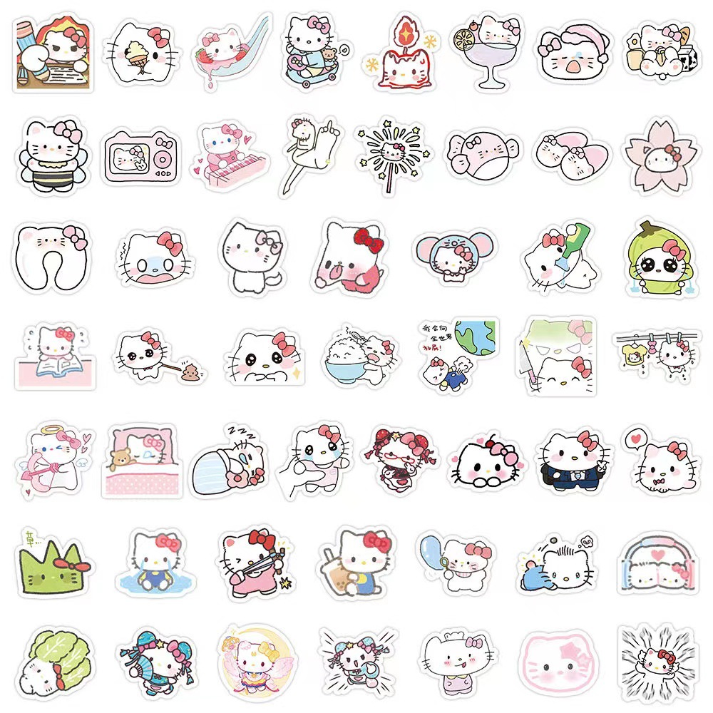 100 새로운 만화 kt 귀여운 낙서 스티커 장식 스케이트 보드 물 컵 맞춤형 방수 스티커 도매