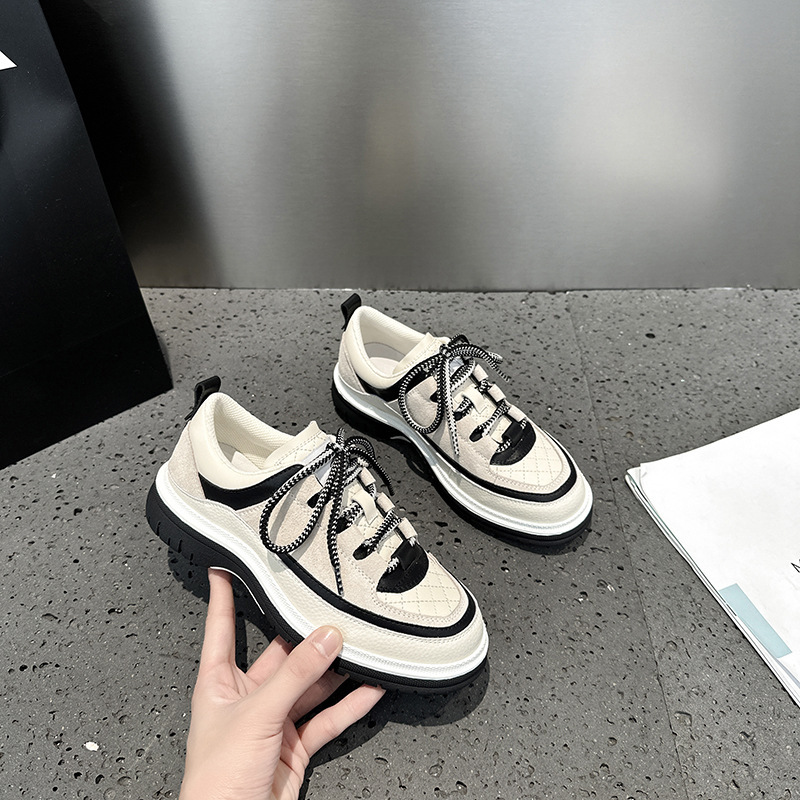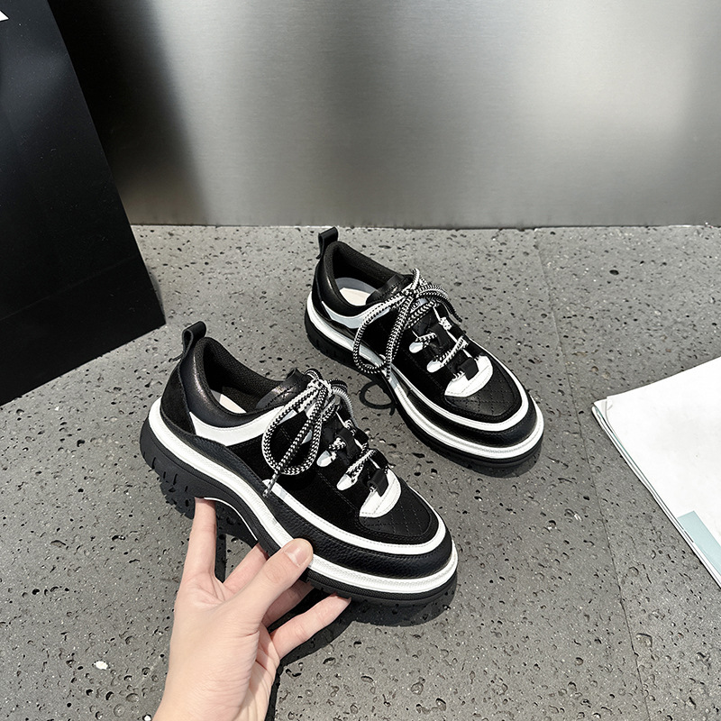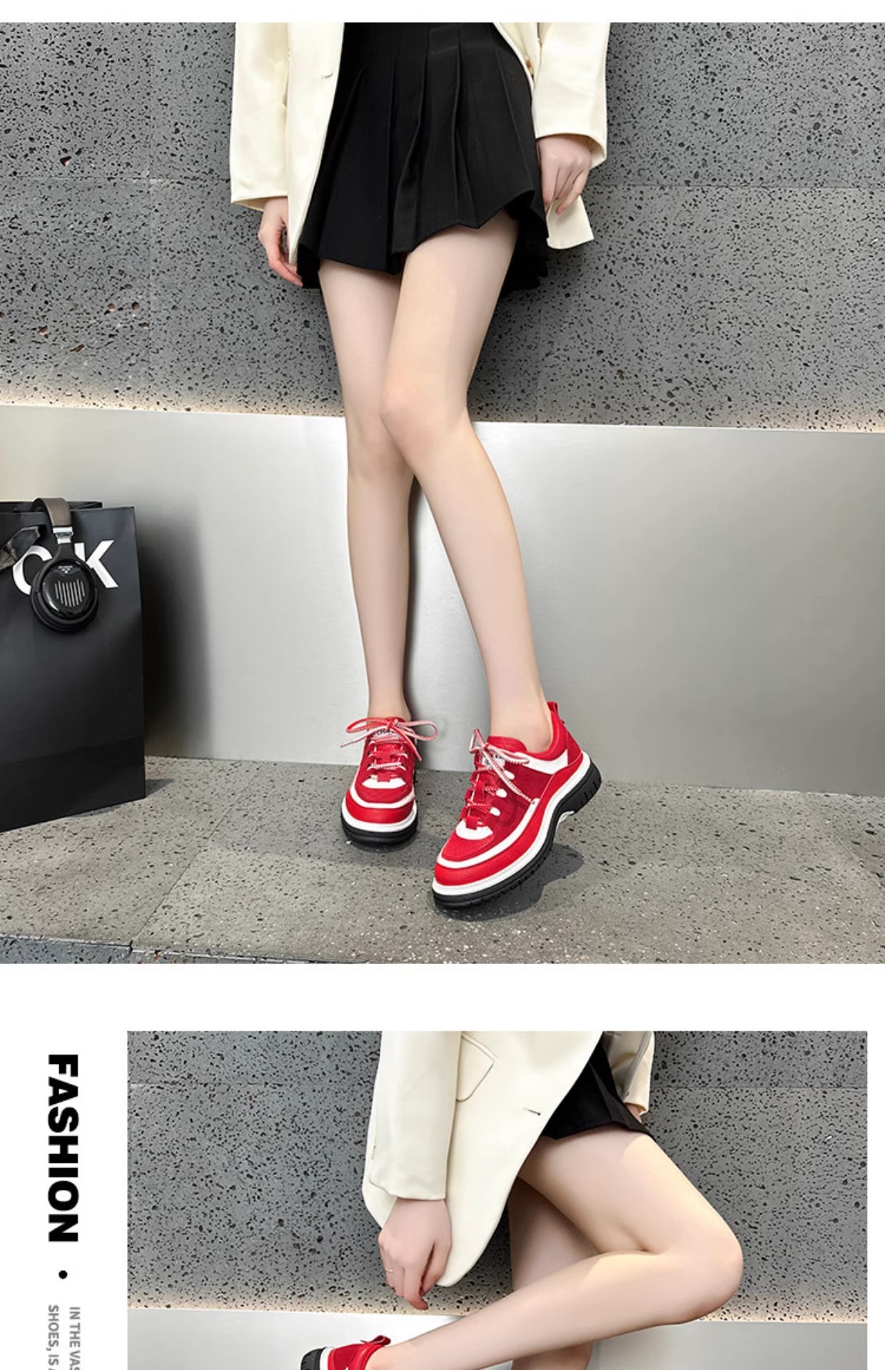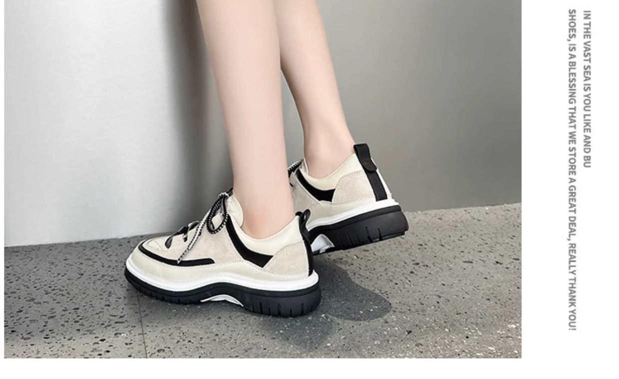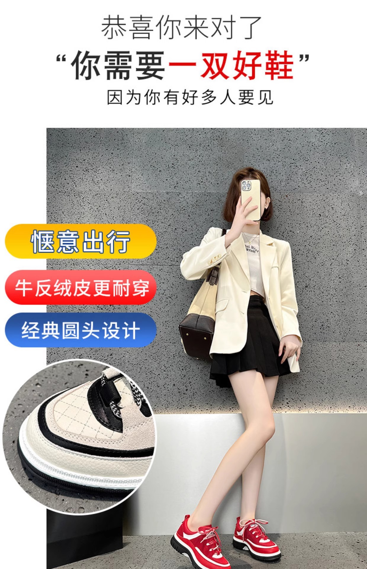 정품 가죽 향기로운 스타일 운동화 여성 2025 년 봄과 가을 새로운 두꺼운 밑창 작은 높이 증가 캐주얼 스포츠 신발스토어 가기