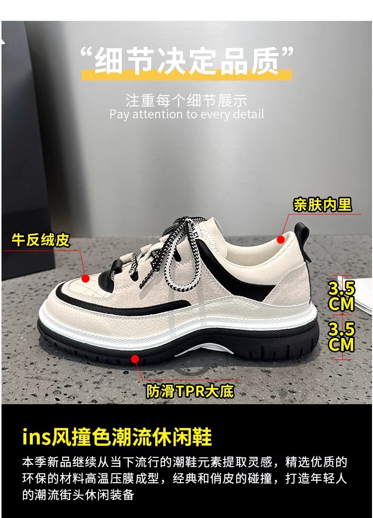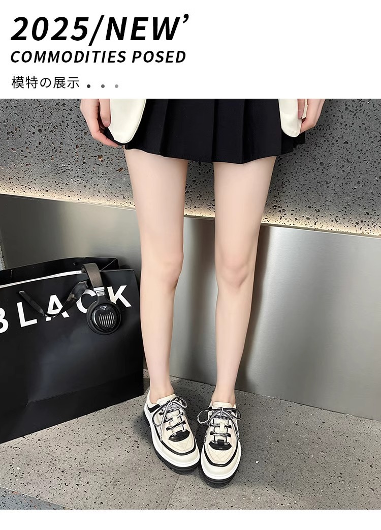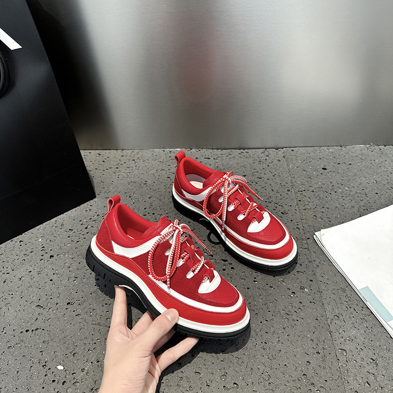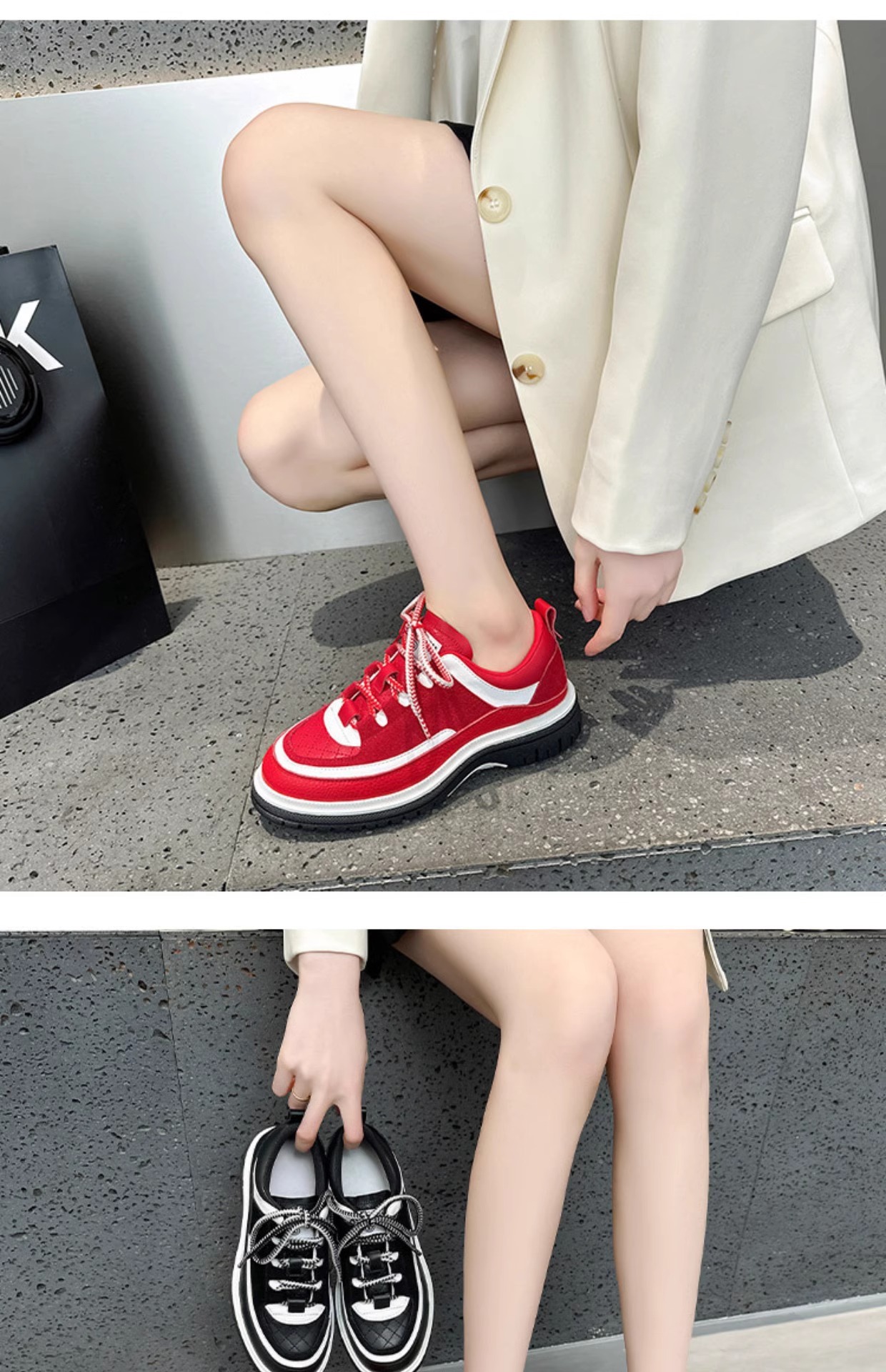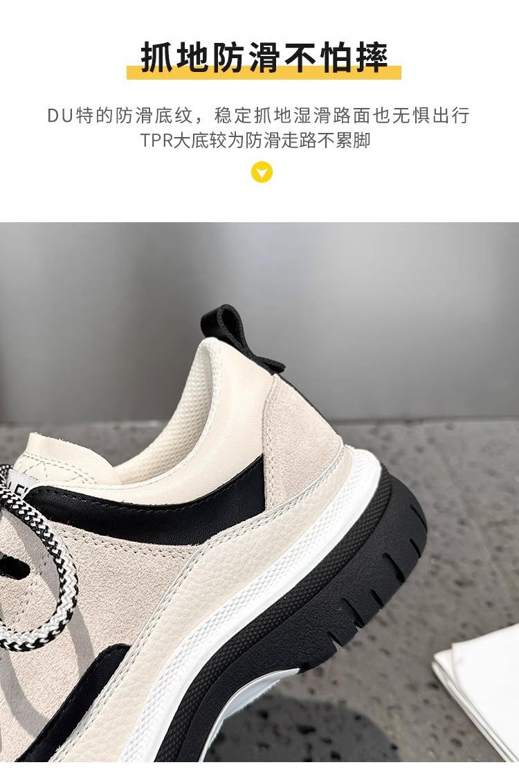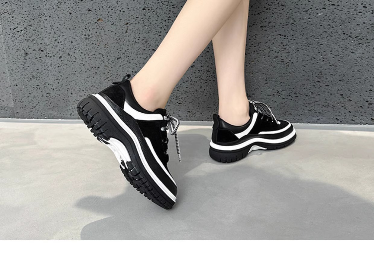 정품 가죽 향기로운 스타일 운동화 여성 2025 년 봄과 가을 새로운 두꺼운 밑창 작은 높이 증가 캐주얼 스포츠 신발스토어 가기