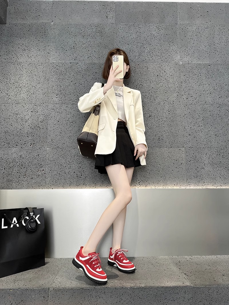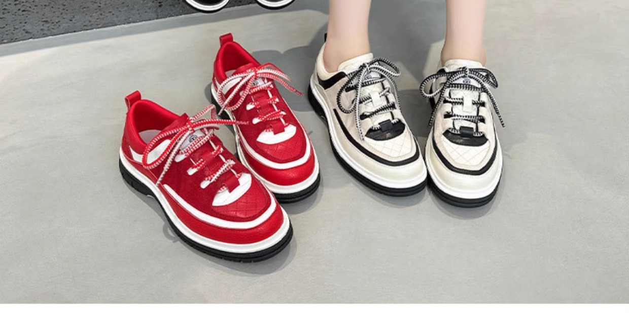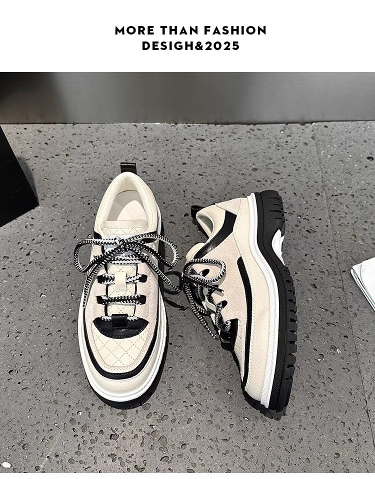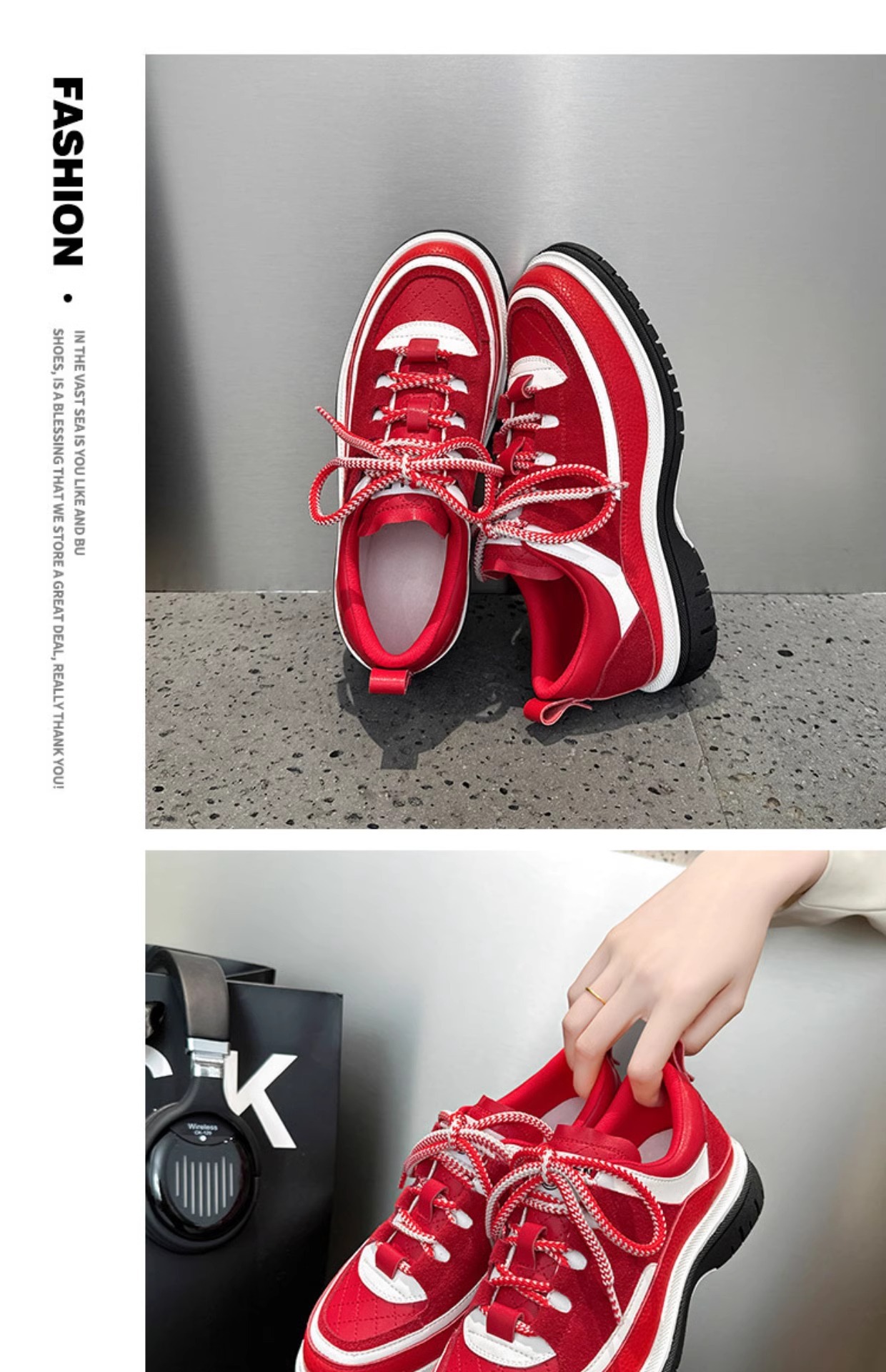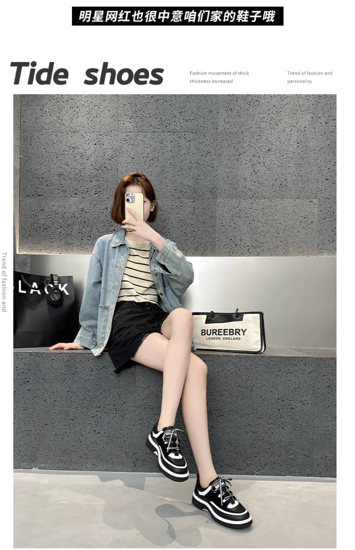 정품 가죽 향기로운 스타일 운동화 여성 2025 년 봄과 가을 새로운 두꺼운 밑창 작은 높이 증가 캐주얼 스포츠 신발스토어 가기