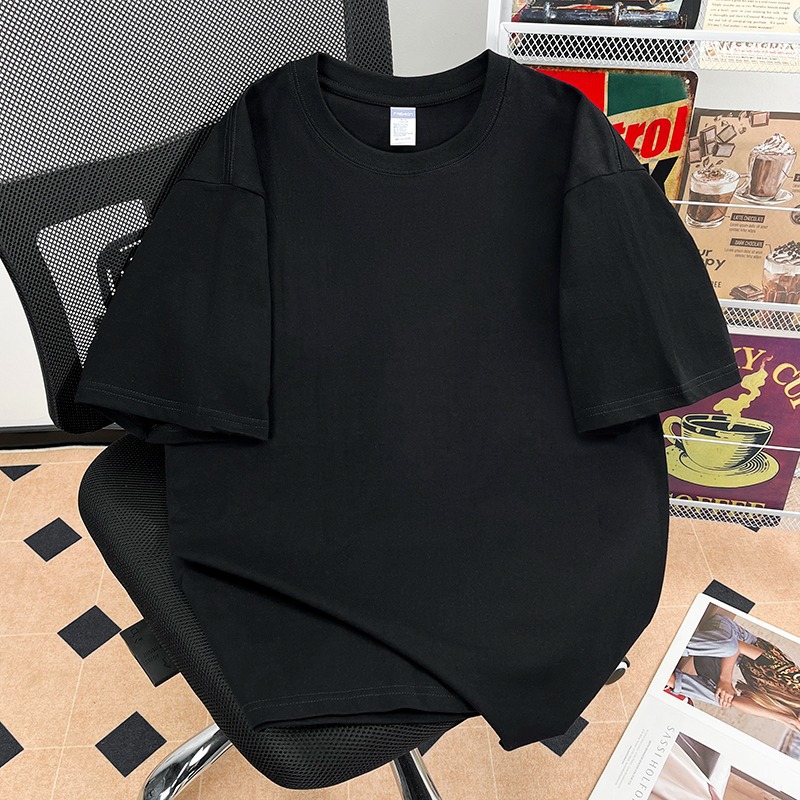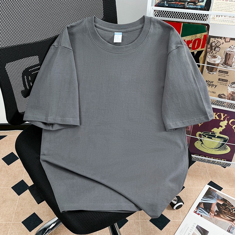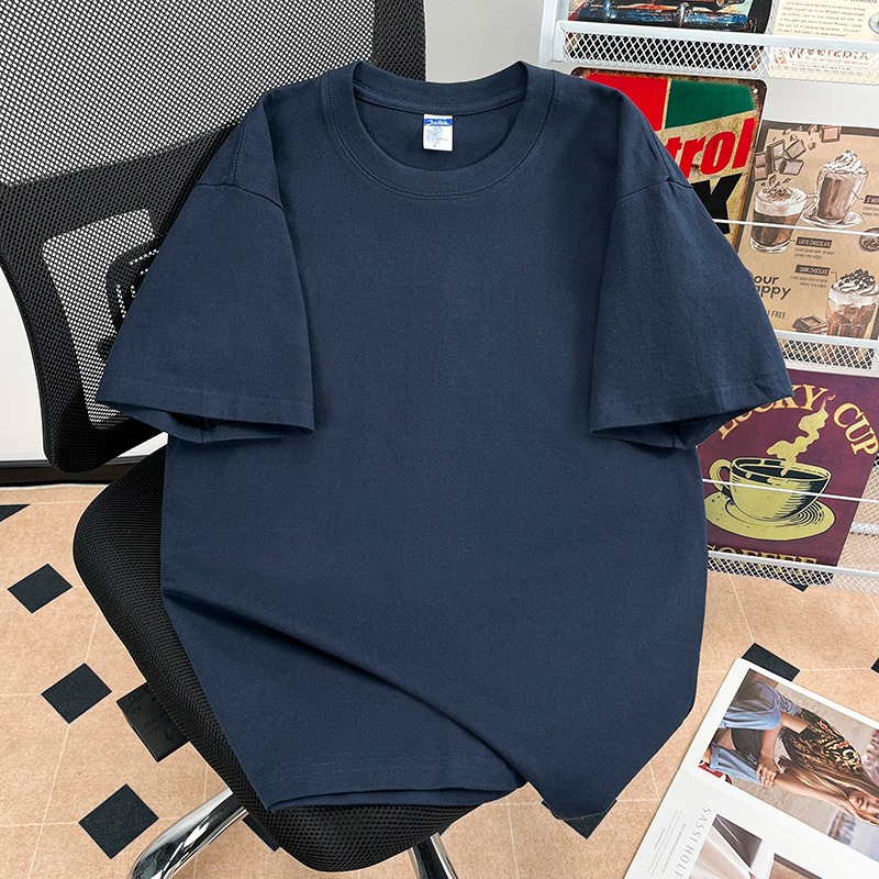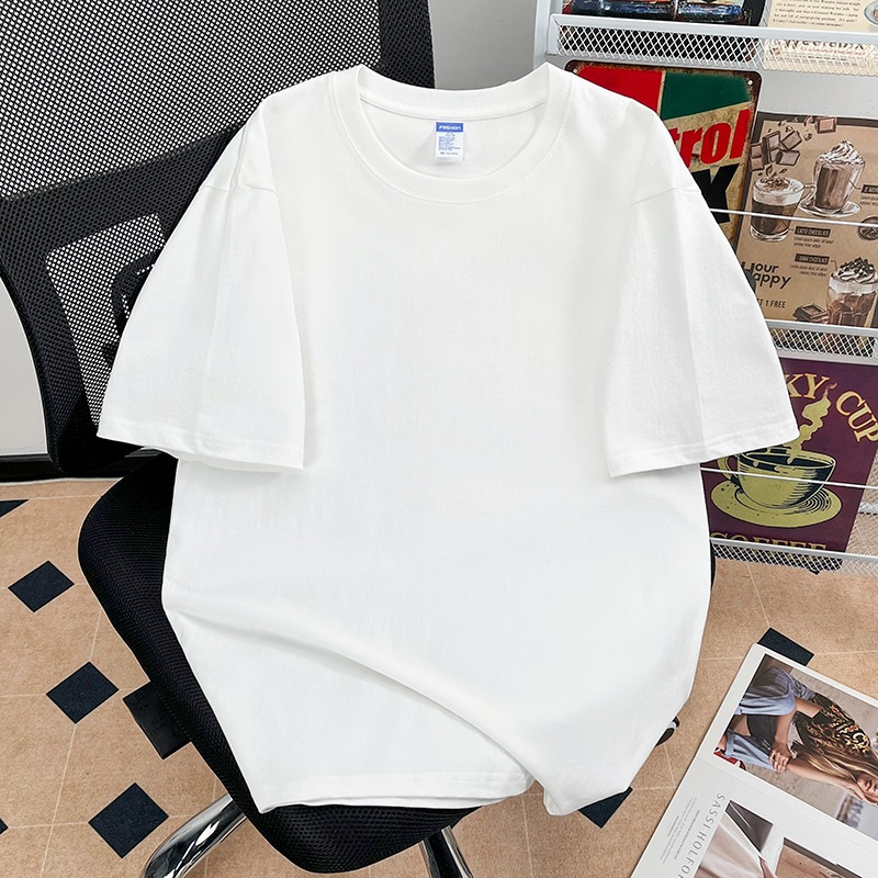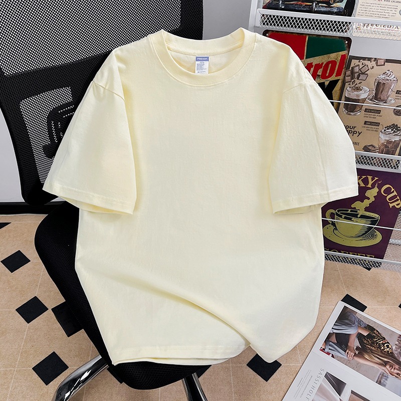 퓨어 코튼 반팔 티셔츠 남자 2025 년 새 여름 캐주얼 느슨한 미국 유행 반소매 탑 솔리드 컬러 베이스 셔츠스토어 가기