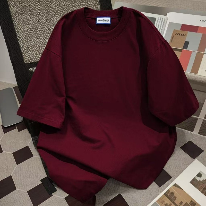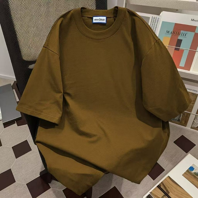 퓨어 코튼 반팔 티셔츠 남자 2025 년 새 여름 캐주얼 느슨한 미국 유행 반소매 탑 솔리드 컬러 베이스 셔츠