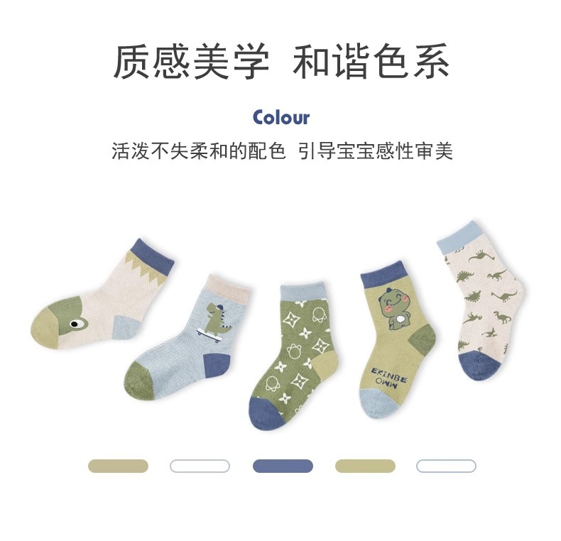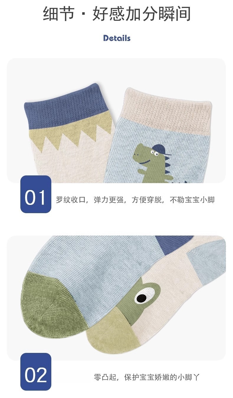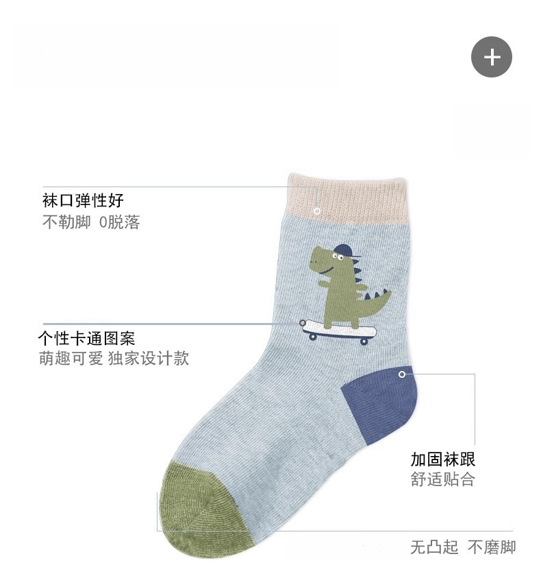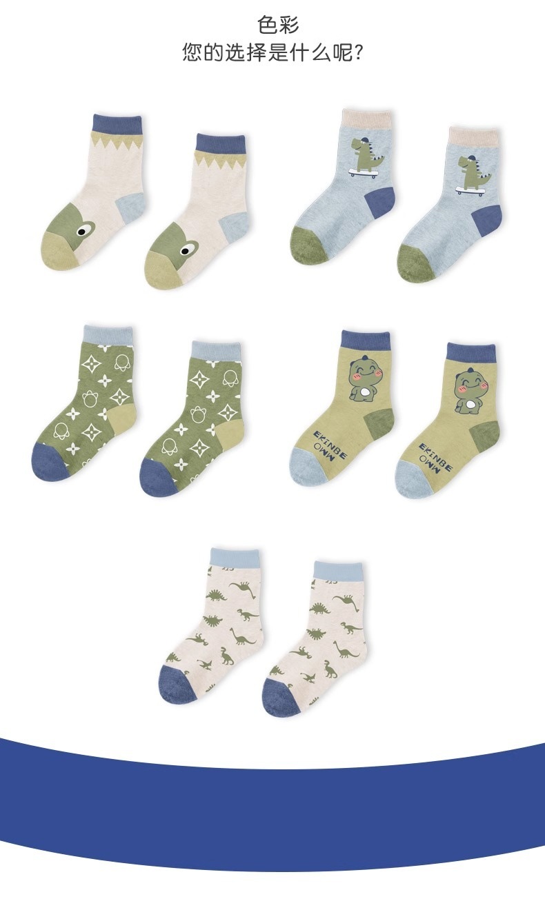 공룡 어린이 양말 봄과 가을 소년 면 아기 중간 및 큰 어린이 만화 소년 중간 튜브 양말 새로운 통기성 땀 흡수 양말스토어 가기