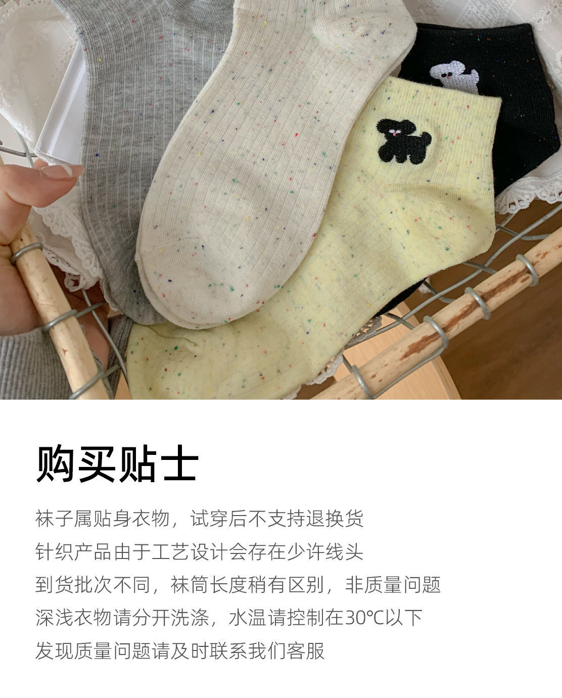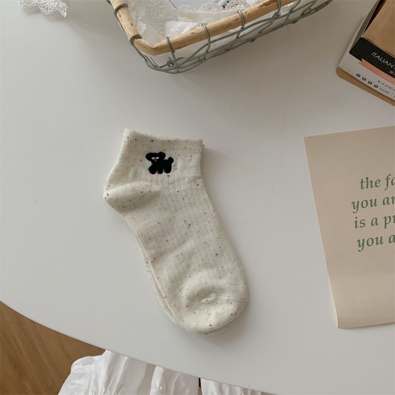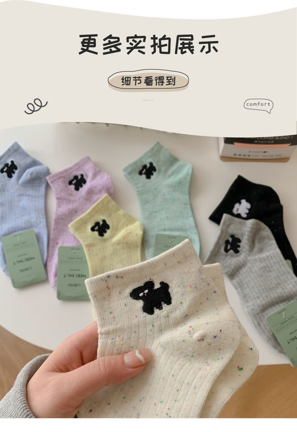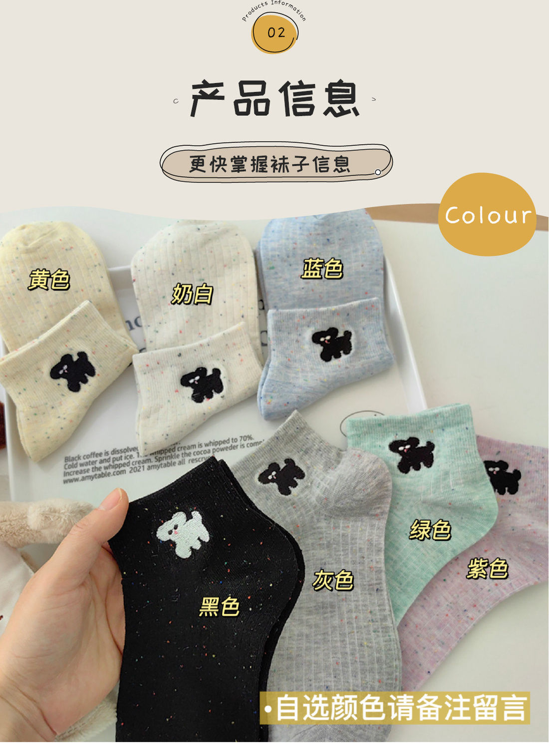 봄과 여름 단색 자수 강아지 면 양말 짧은 튜브 얇은 땀 흡수 양말 일본 달콤하고 귀여운 Zhuji 양말 여성용스토어 가기