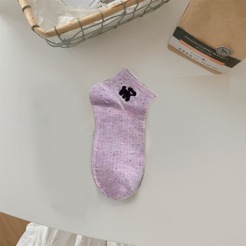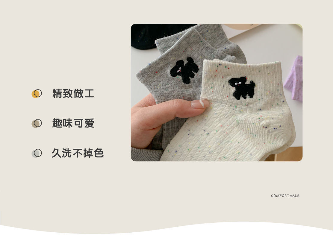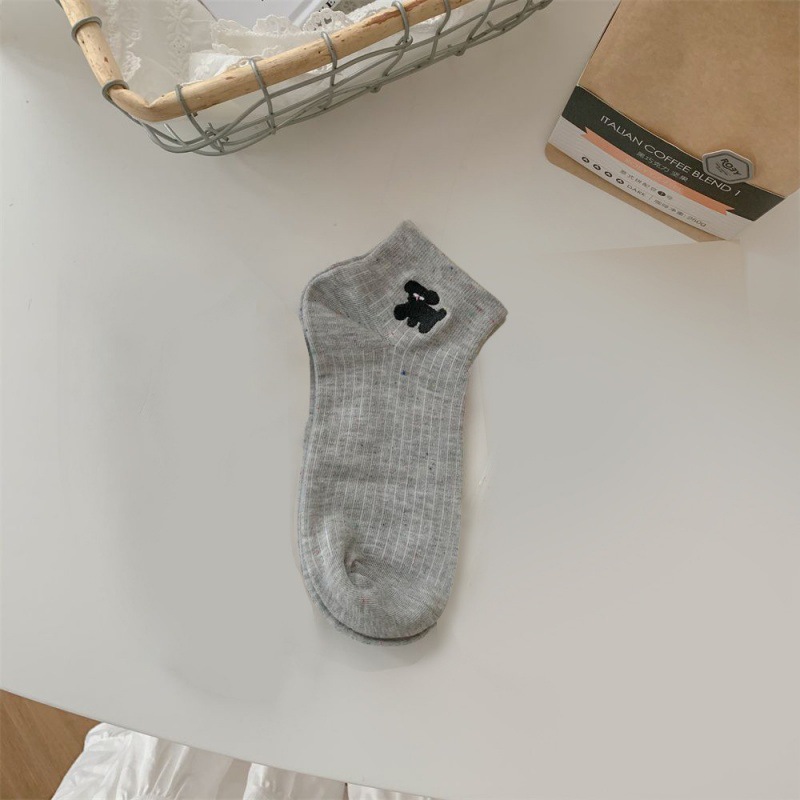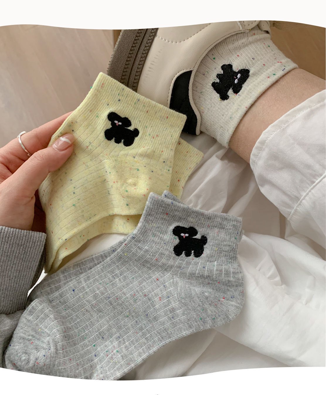 봄과 여름 단색 자수 강아지 면 양말 짧은 튜브 얇은 땀 흡수 양말 일본 달콤하고 귀여운 Zhuji 양말 여성용스토어 가기