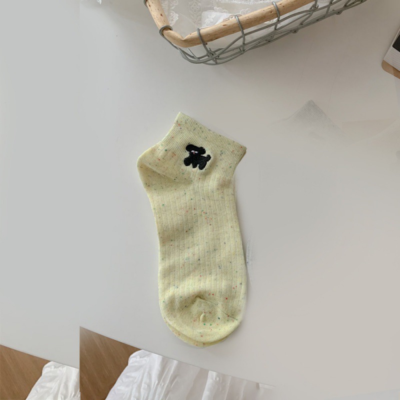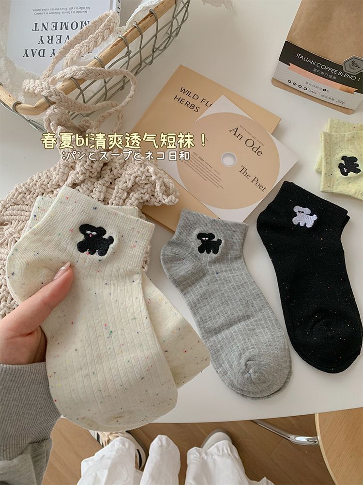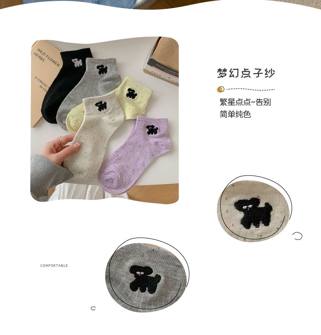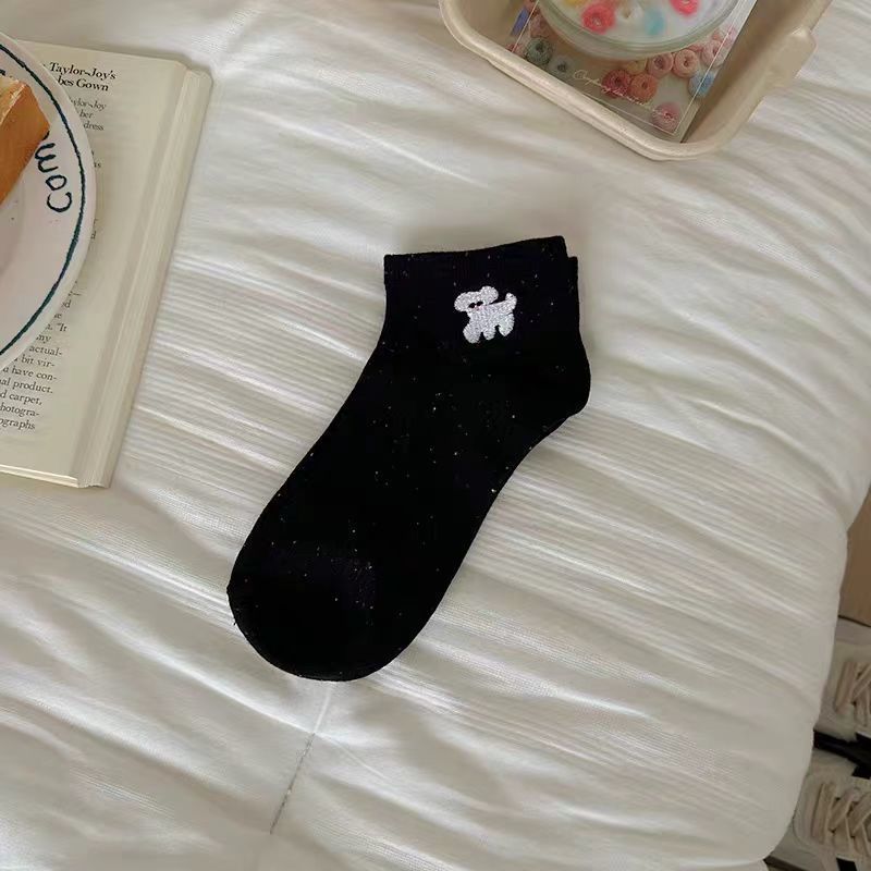 봄과 여름 단색 자수 강아지 면 양말 짧은 튜브 얇은 땀 흡수 양말 일본 달콤하고 귀여운 Zhuji 양말 여성용