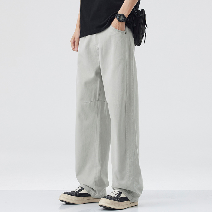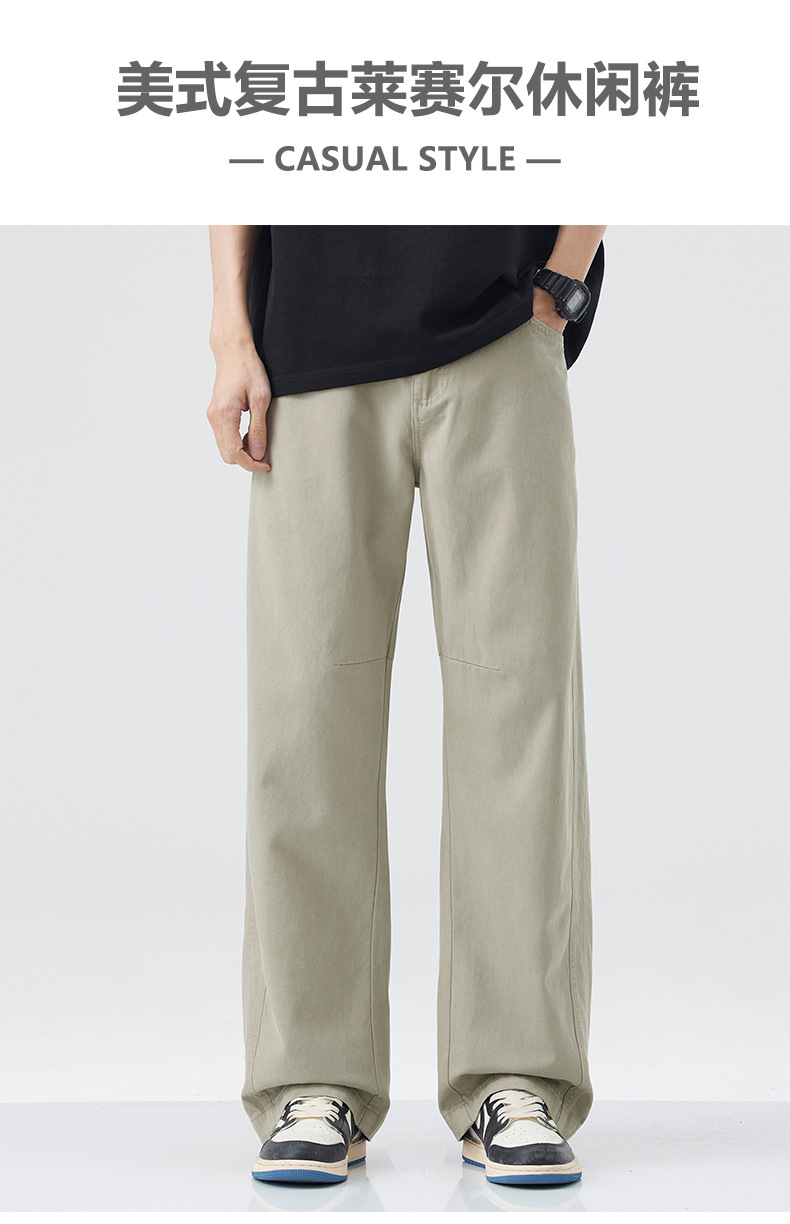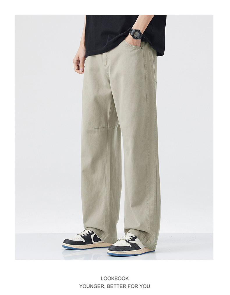 DANPONY | 홍콩 스타일 샤 리오셀 텐셀 아메리칸 트렌디 루즈 스트레이트 팬츠 캐주얼 바지 남성 일본 복고풍 버전스토어 가기