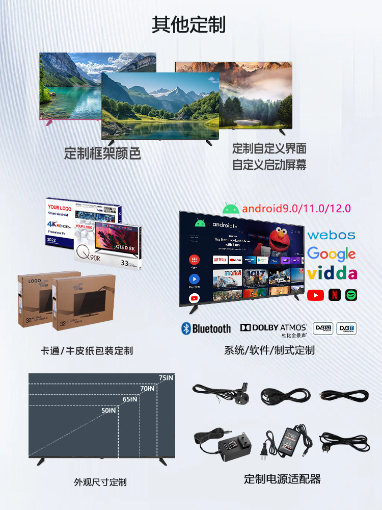 대외 무역 65 인치 75 인치 TV 85 인치 울트라 얇은 98 인치 QLED 지능형 네트워크 4K 초 고화질 TV LCD