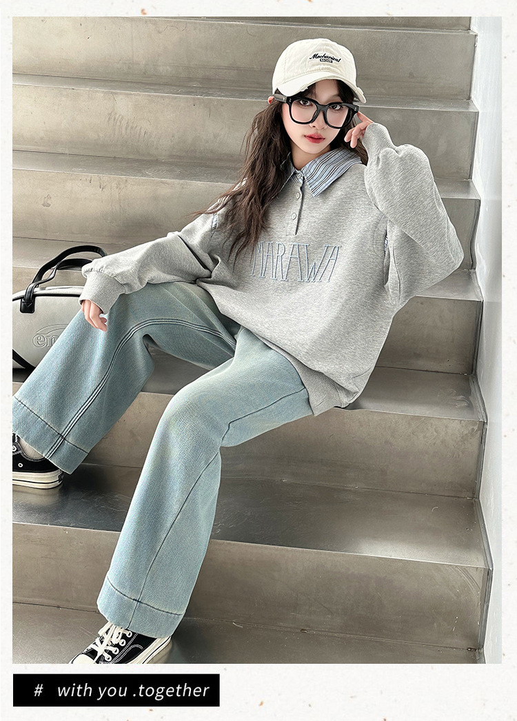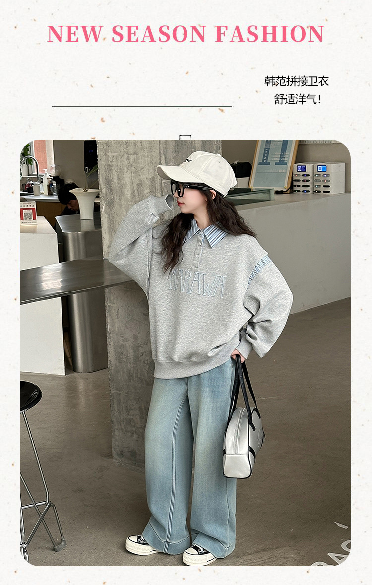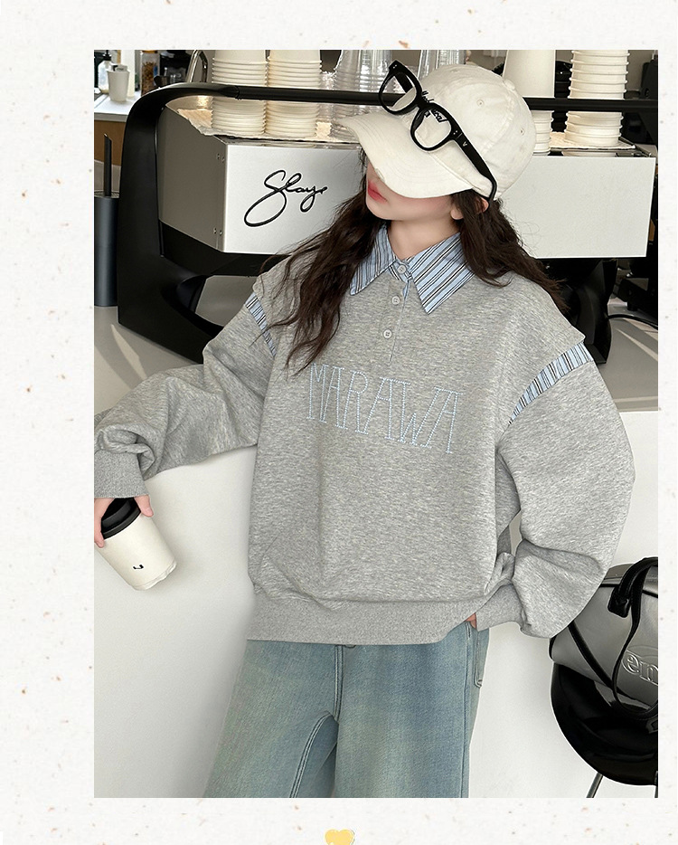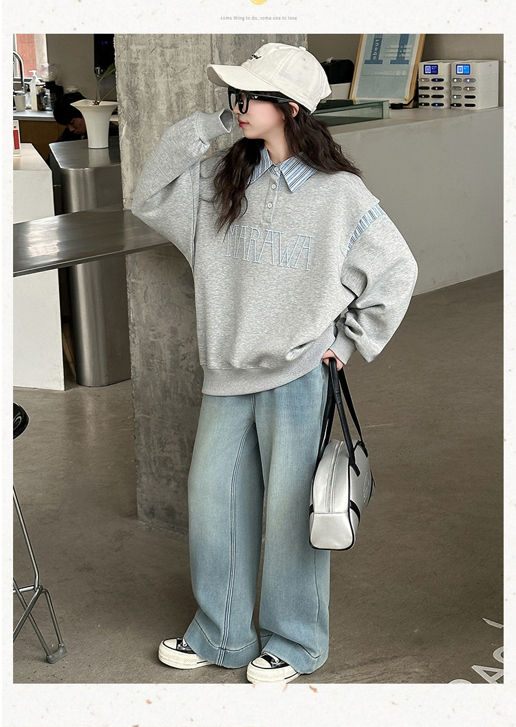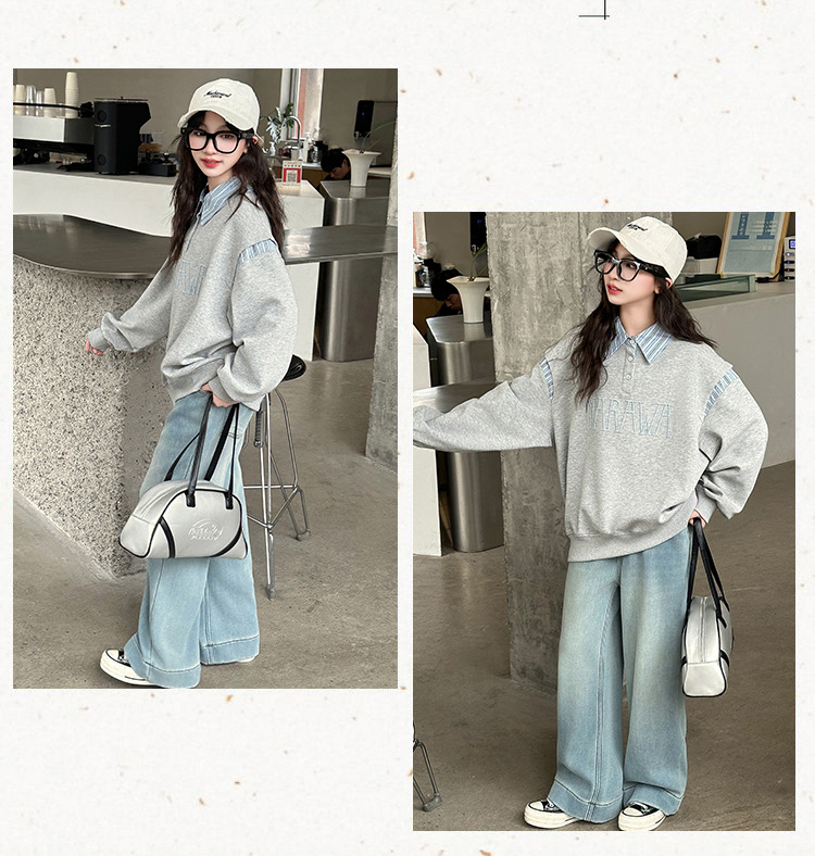 소녀 서양식 봄과 가을 옷깃 스웨터 2025 봄 어린이 가짜 투피스 폴로 셔츠 소녀 캐주얼 탑스토어 가기