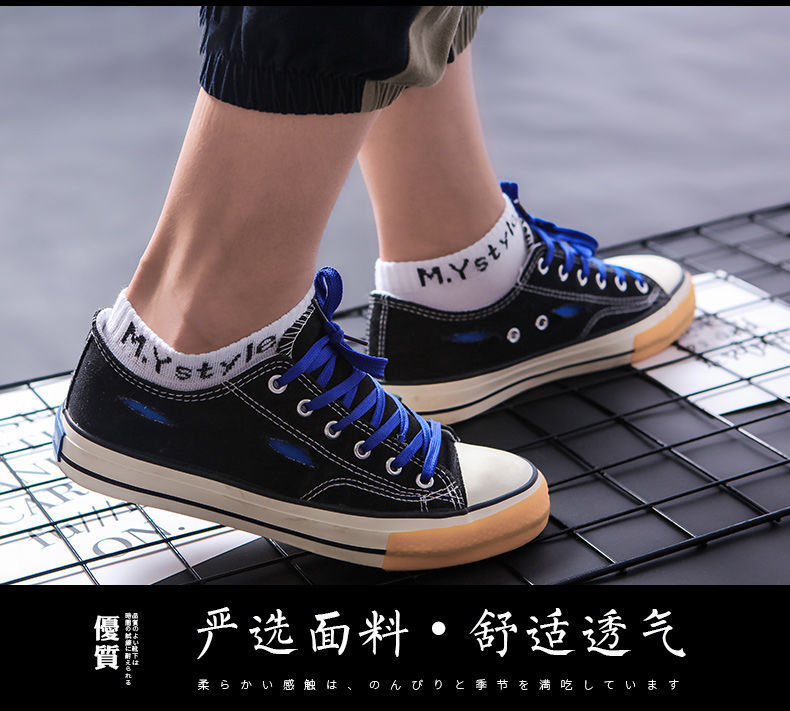 양말 남자의 짧은 양말 줄무늬 글자 탈취제 땀 흡수성 통기성 여름 스포츠 남자의 여름 얇은 보트 양말