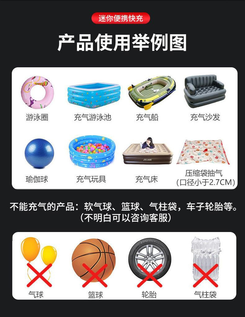 USB 충전 이중 목적 공기 펌프 공기 펌프 휴대용 야외 전기 공기 펌프 압축 가방 전기 펌프 텐트스토어 가기