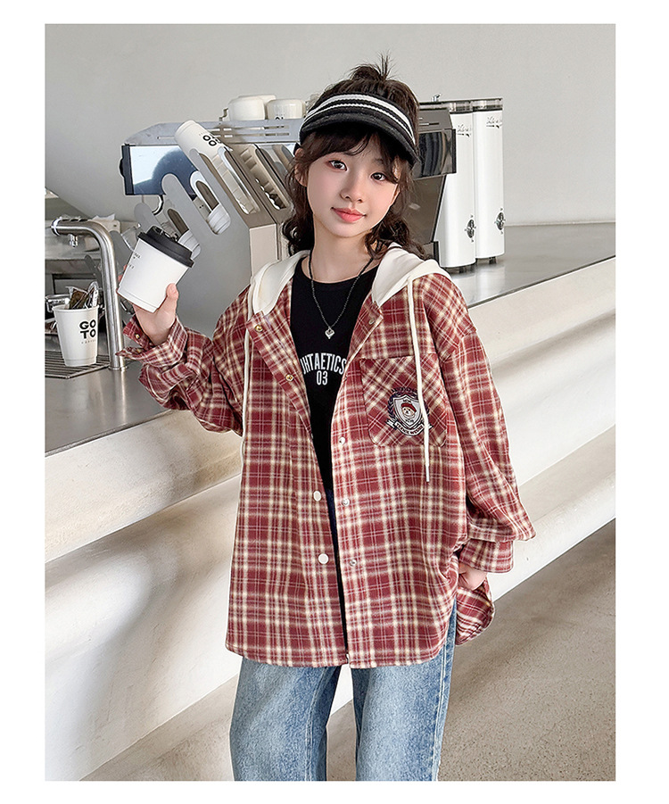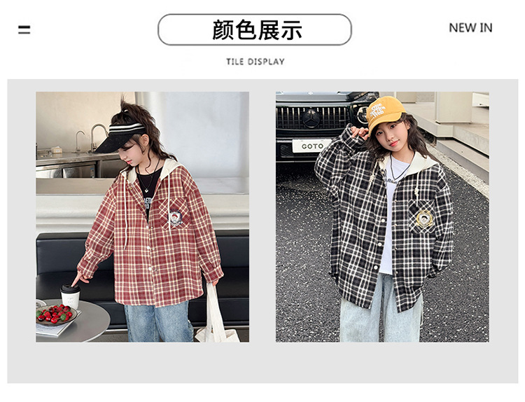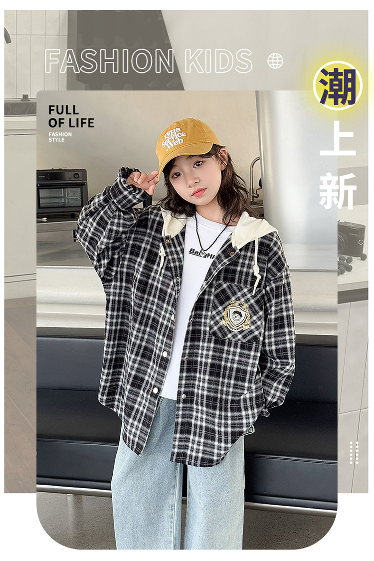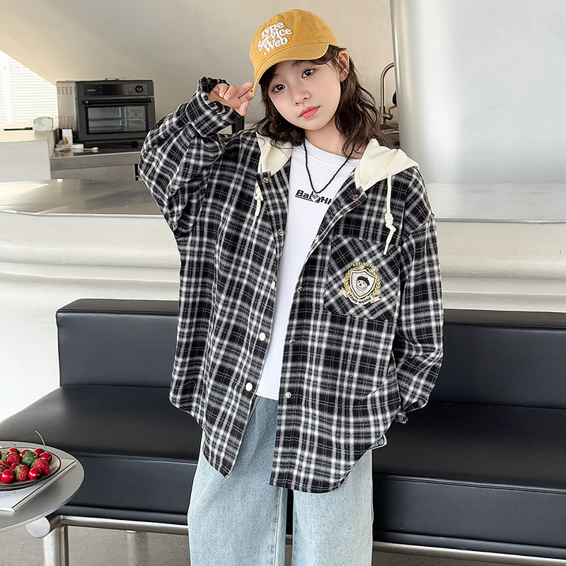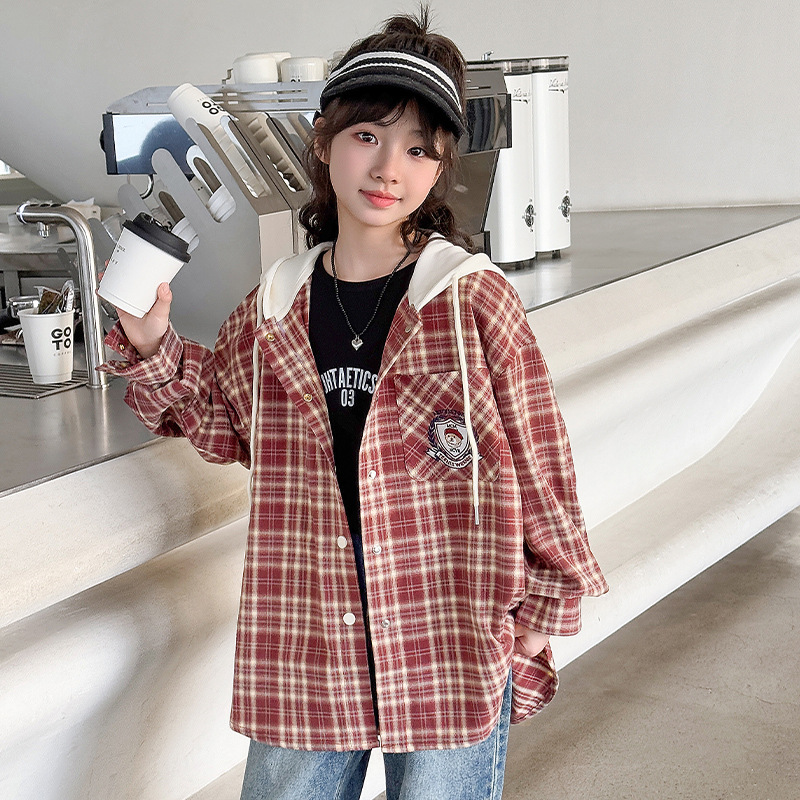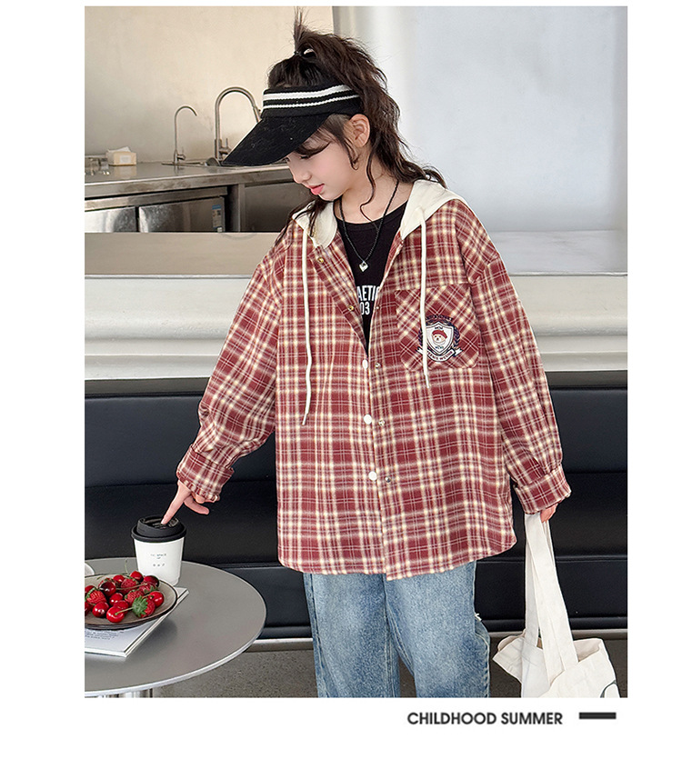 여자 봄 격자 무늬 셔츠 코트 2025 새로운 캐주얼 스포츠 어린이 재킷 큰 어린이 바람막이 봄 가을 옷스토어 가기