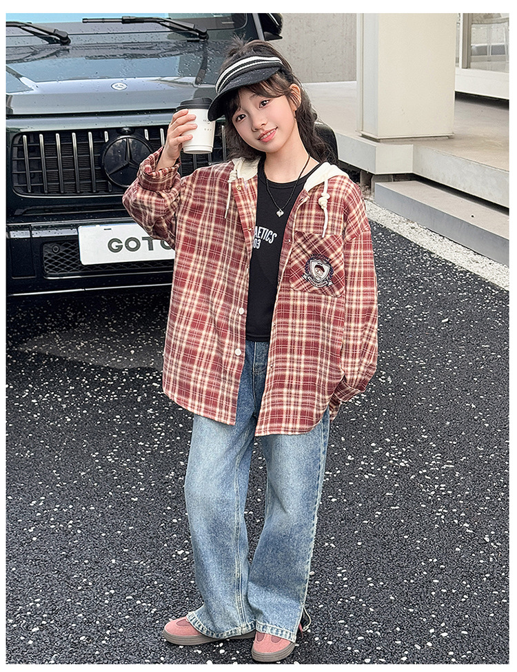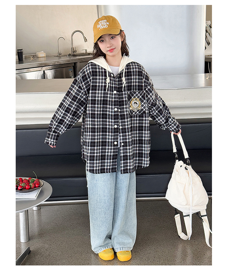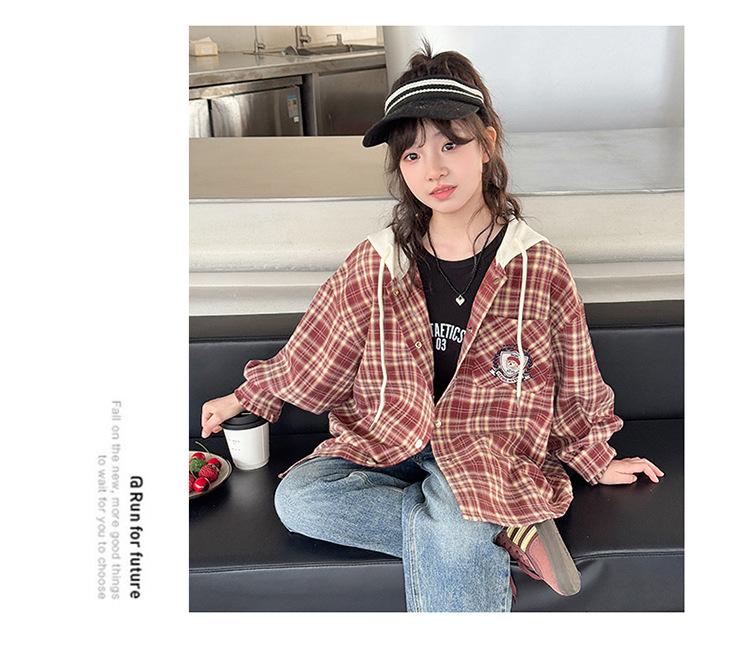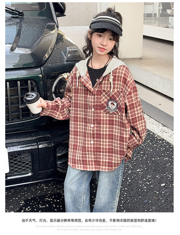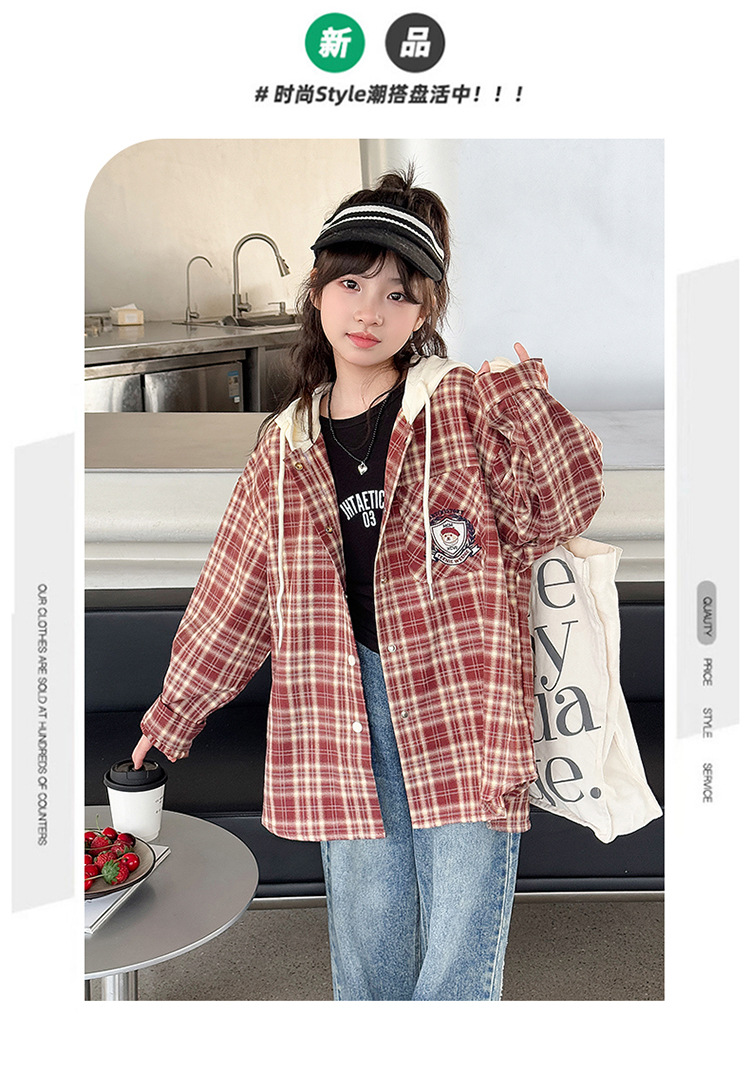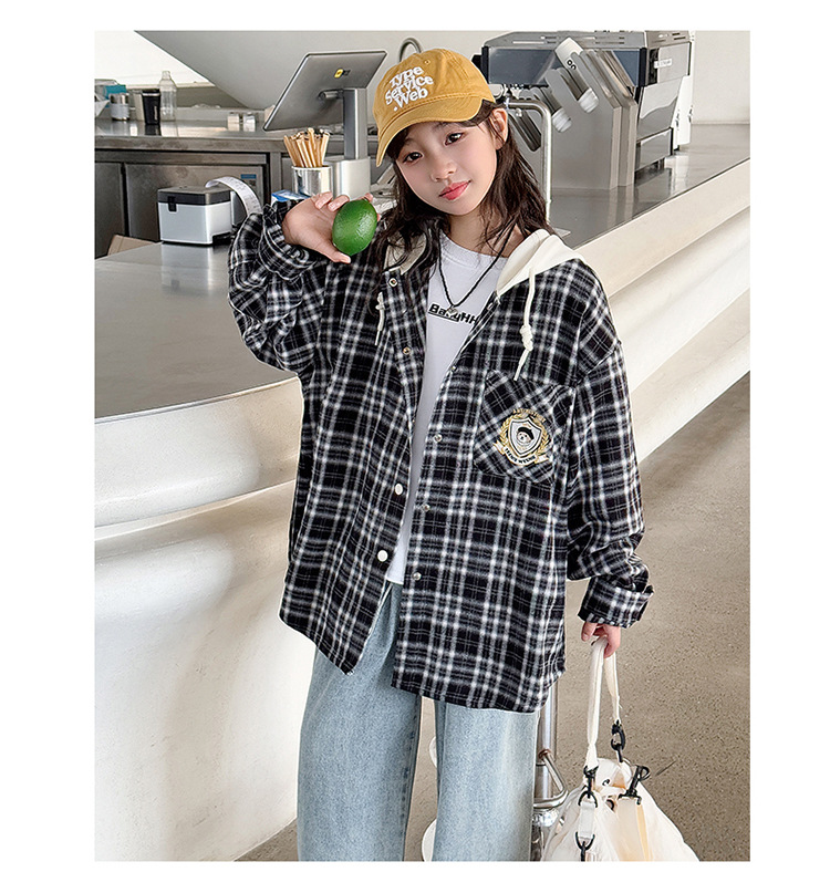 여자 봄 격자 무늬 셔츠 코트 2025 새로운 캐주얼 스포츠 어린이 재킷 큰 어린이 바람막이 봄 가을 옷스토어 가기
