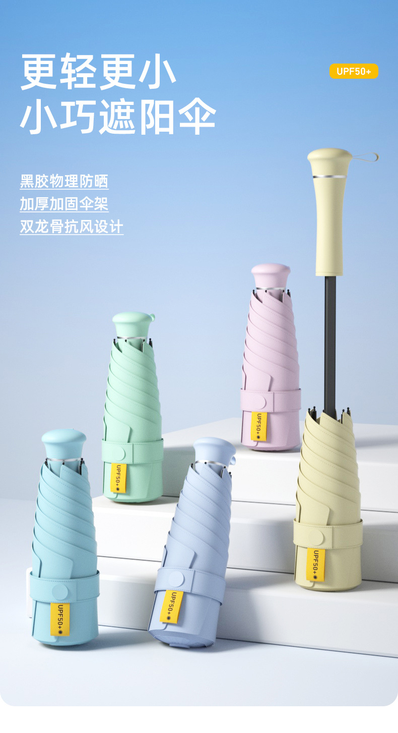 텔레스코픽 핸들 5 배 태양 우산 여성용 숨겨진 손잡이 초경량 햇빛 우산 선 스크린 이중 사용 포켓 캡슐 우산스토어 가기