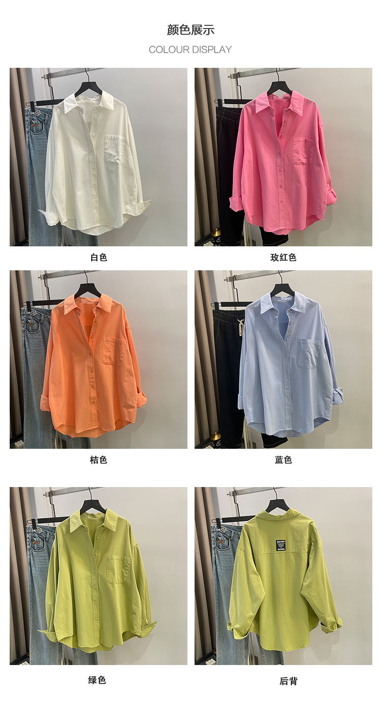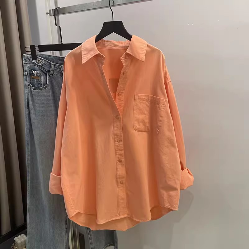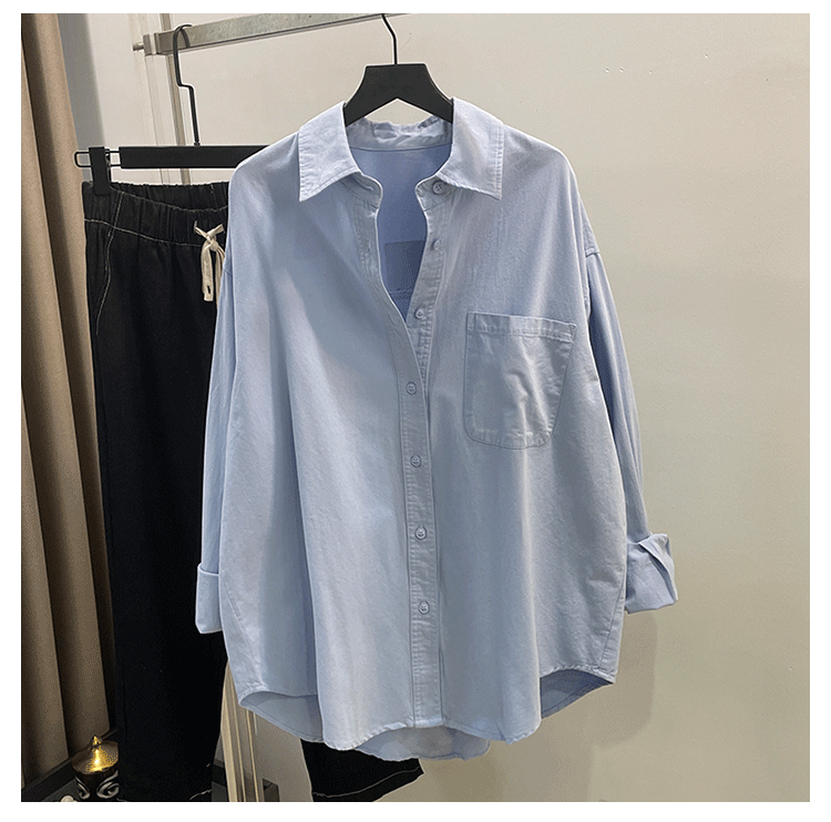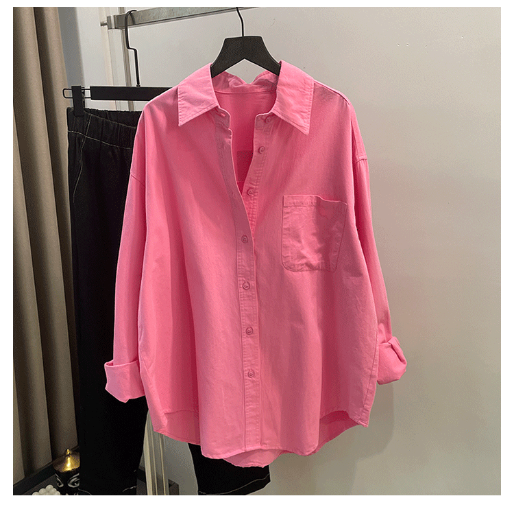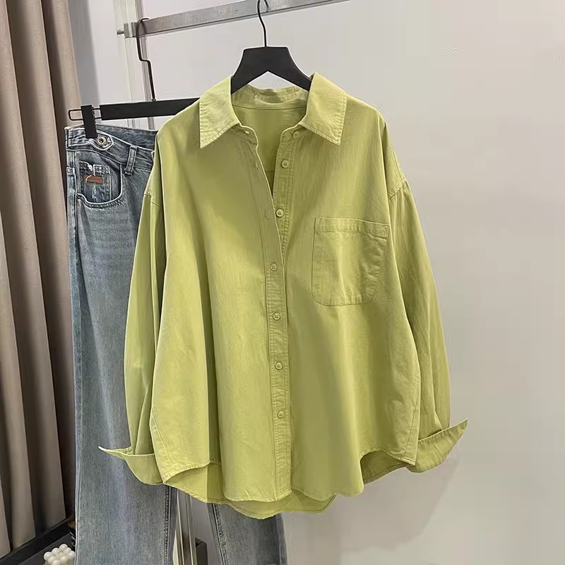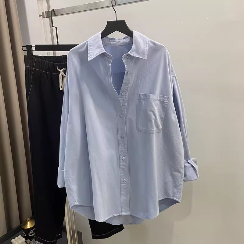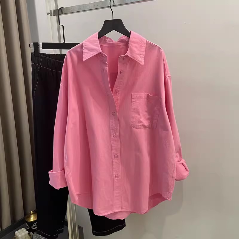 봄과 가을 새로운 홍콩 스타일 느슨한 서양식 단색 긴 소매 셔츠 재킷 여성의 한국 스타일 느슨한 셔츠 탑