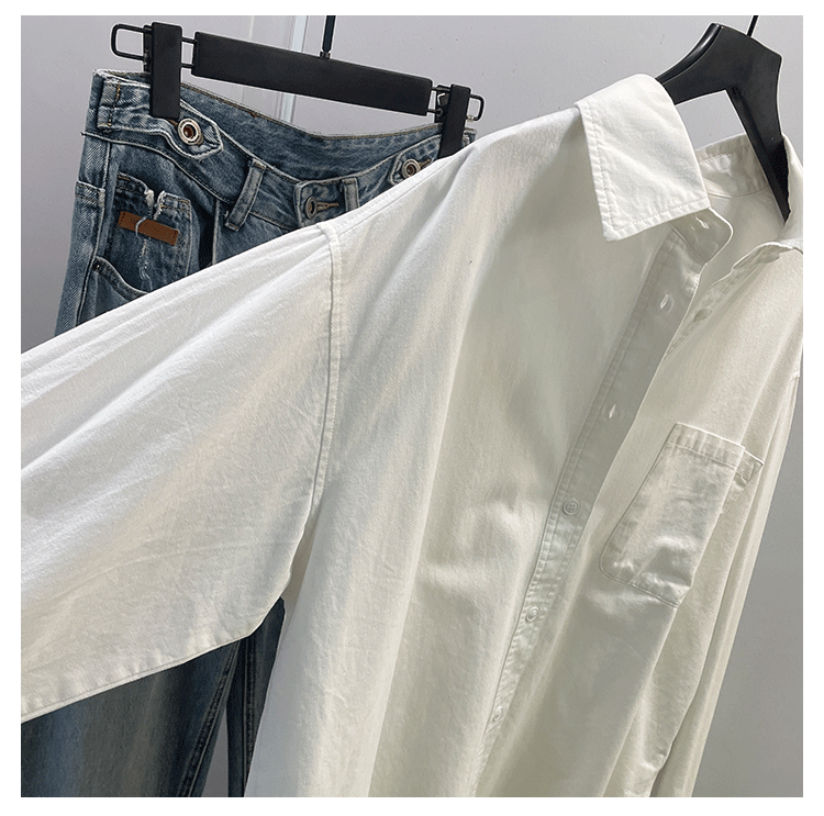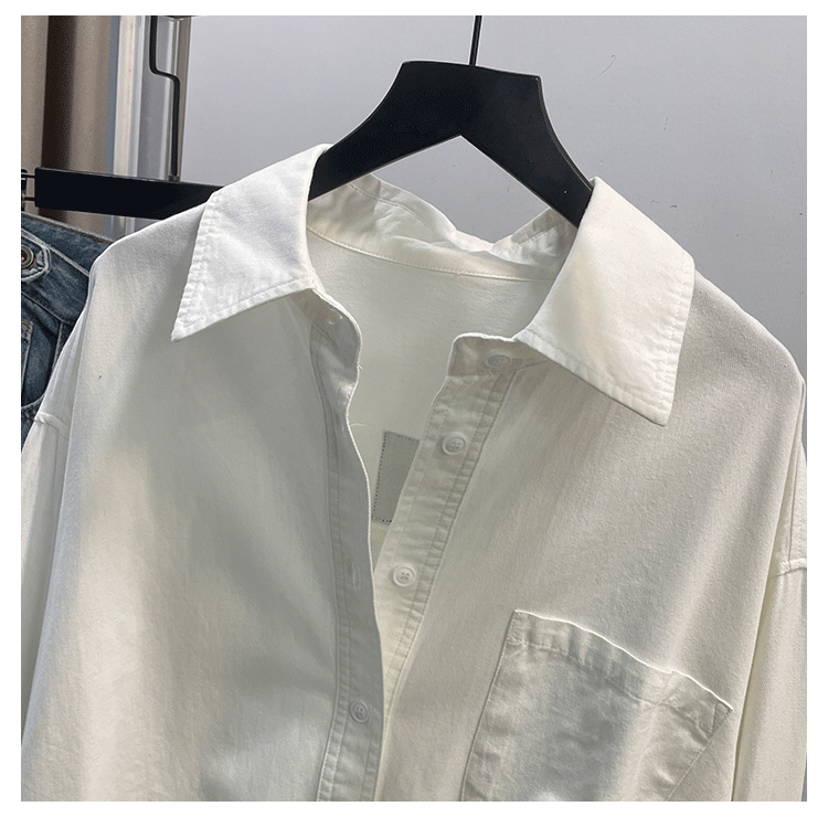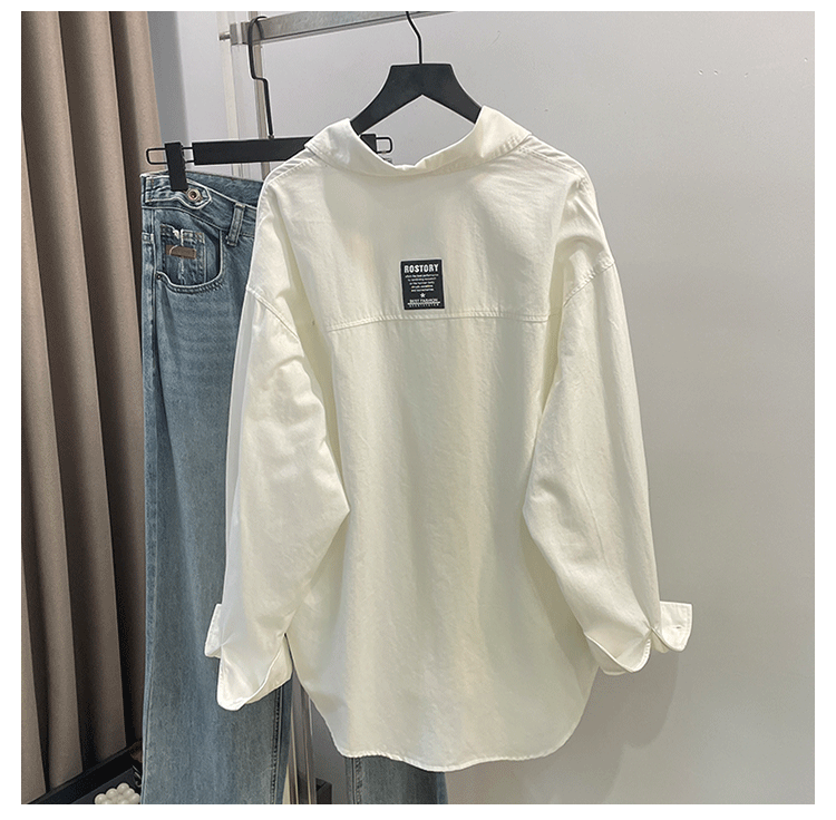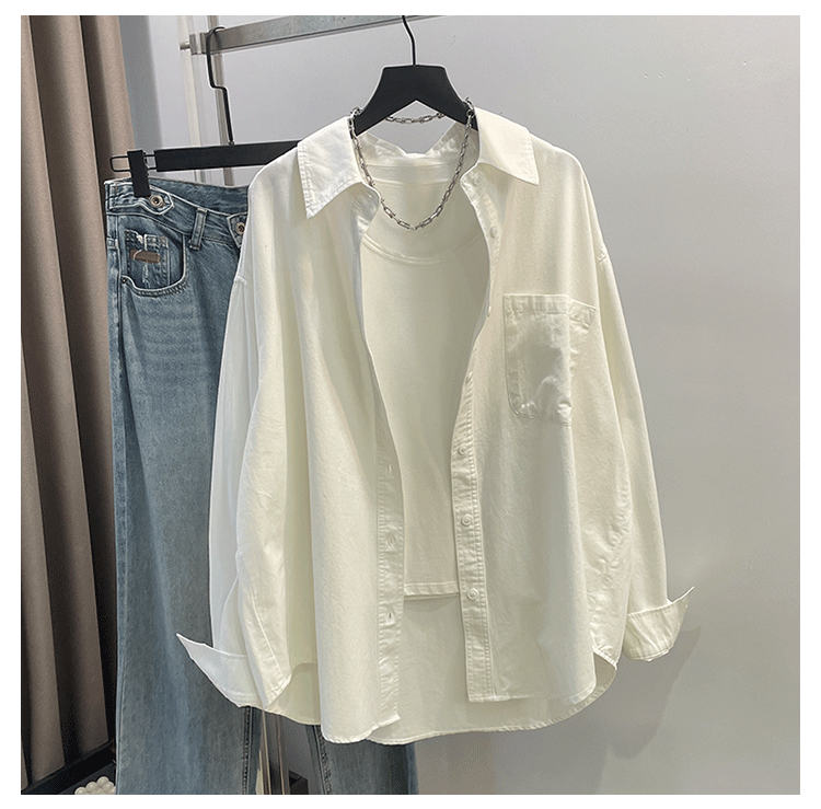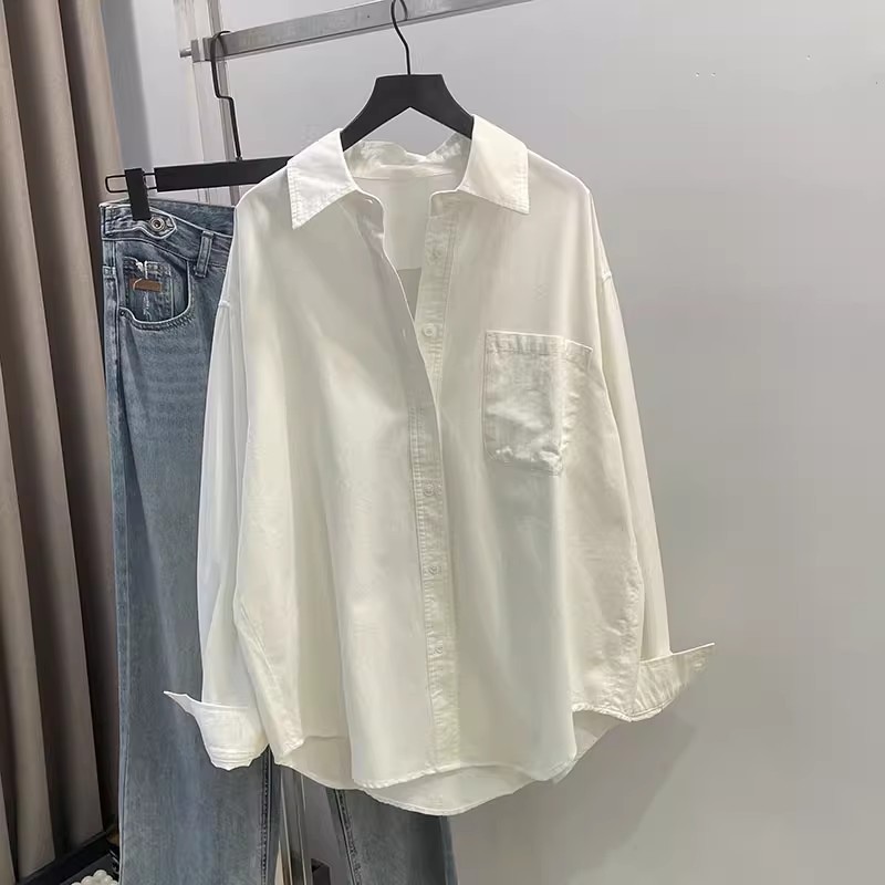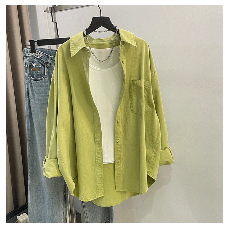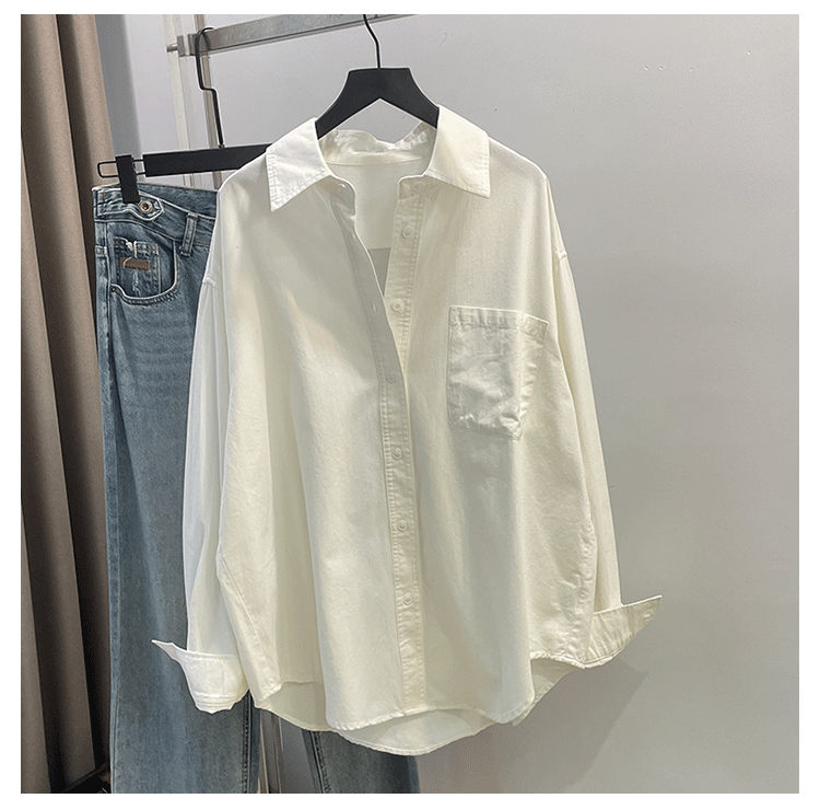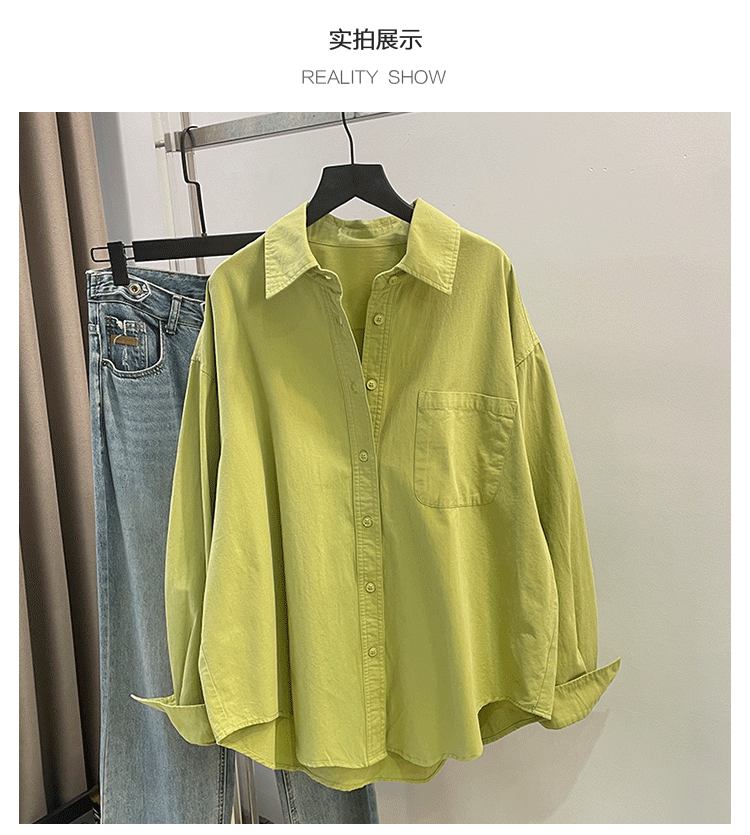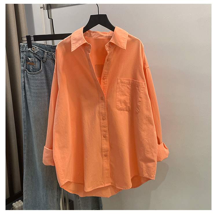 봄과 가을 새로운 홍콩 스타일 느슨한 서양식 단색 긴 소매 셔츠 재킷 여성의 한국 스타일 느슨한 셔츠 탑