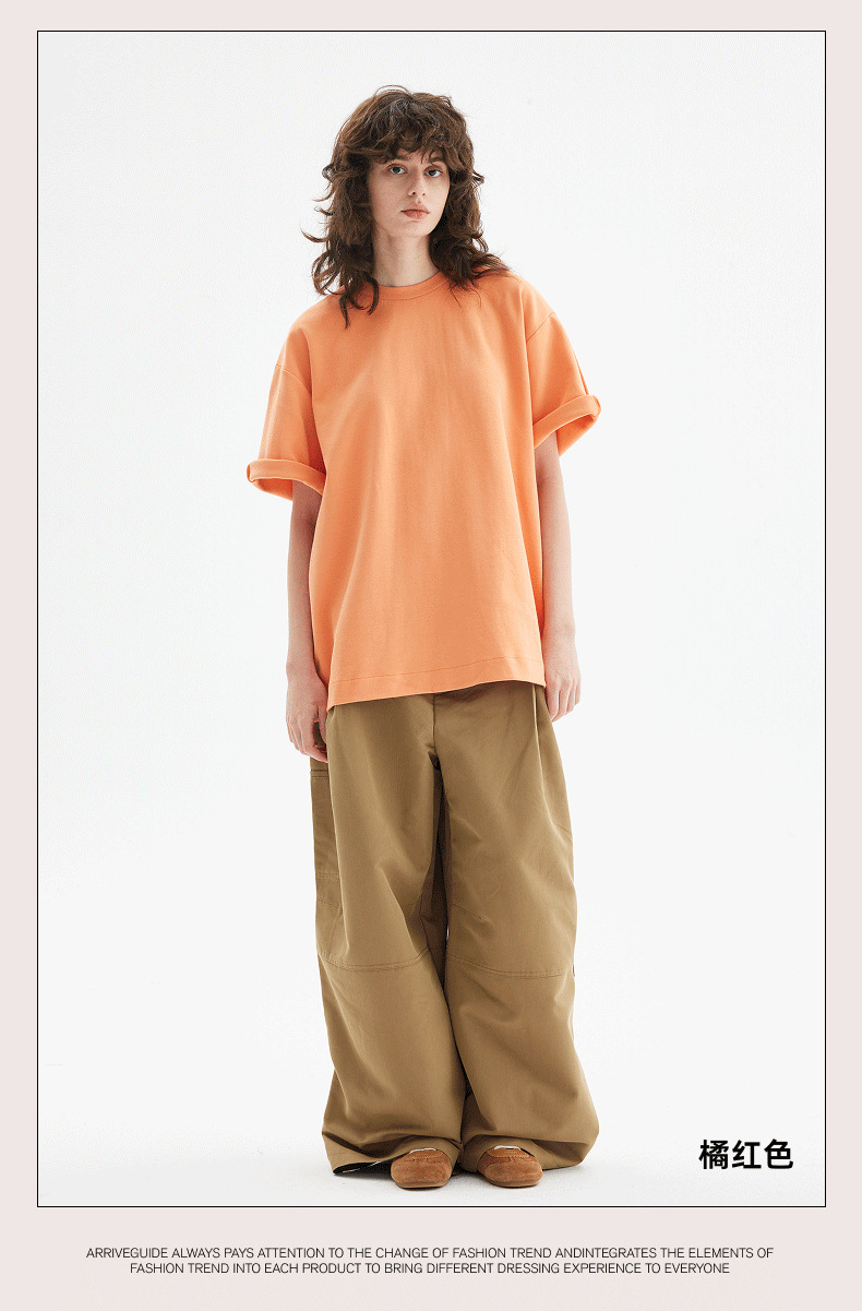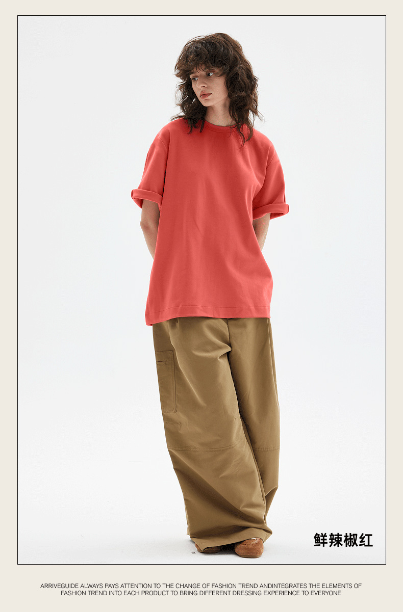 여름 남성 티셔츠 300g 건강한 대형 사이즈 트렌디한 루즈핏 라운드넥 면 반팔 여름 통기성 반팔