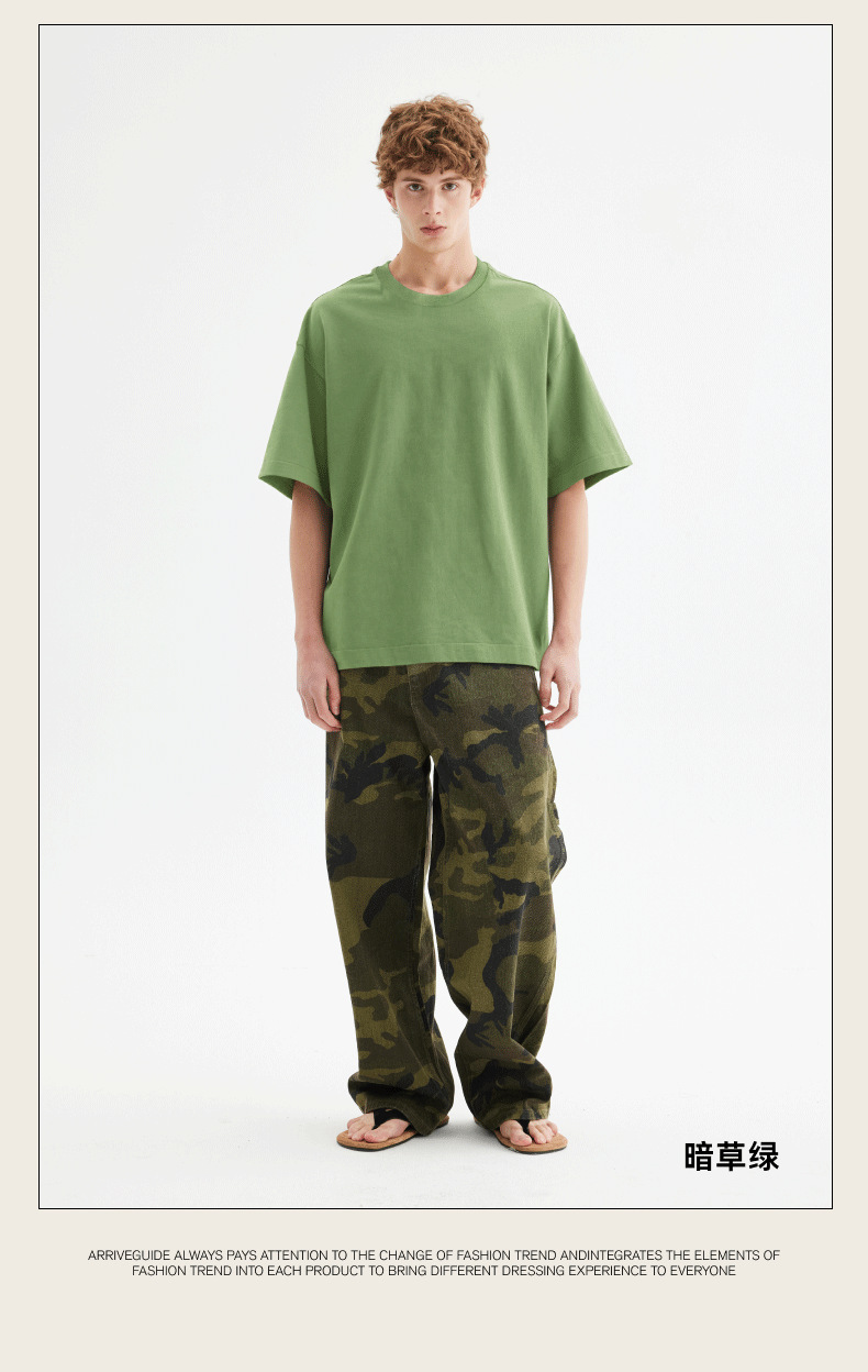 여름 남성 티셔츠 300g 건강한 대형 사이즈 트렌디한 루즈핏 라운드넥 면 반팔 여름 통기성 반팔스토어 가기