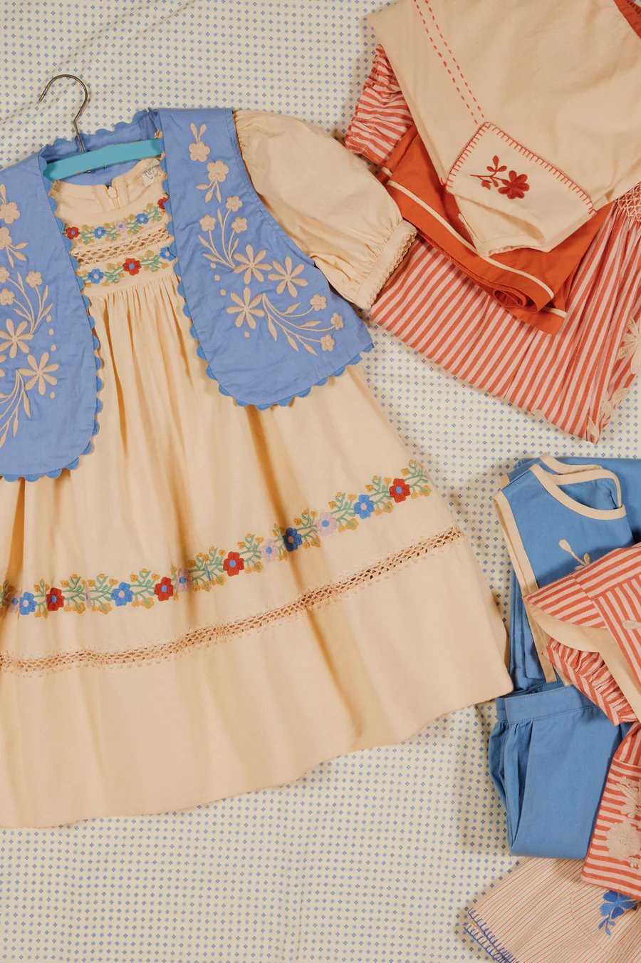 여아 드레스 2026 여름 아동용 플레어 슬리브 꽃무늬 원피스 아기용 얇은 원피스 소녀용 레트로 전원풍 원피스스토어 가기