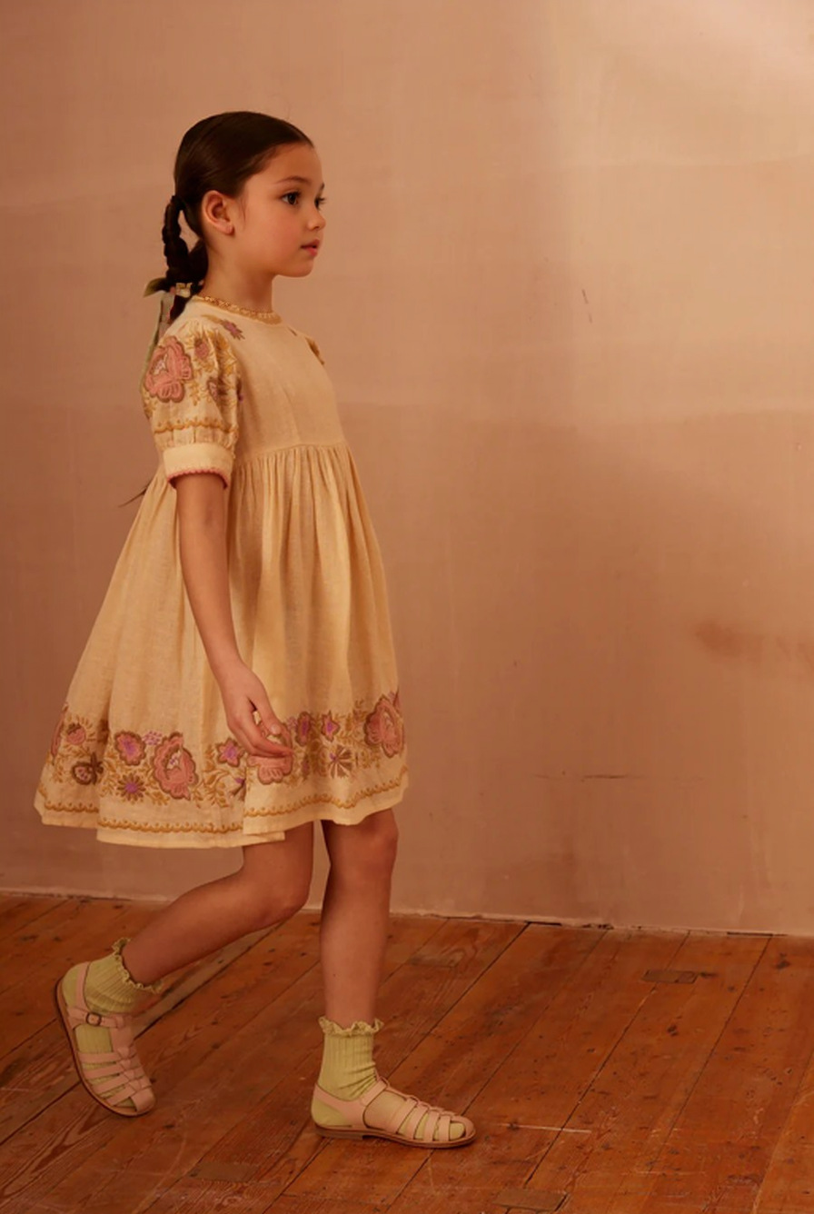 여아 드레스 2026 여름 아동용 플레어 슬리브 꽃무늬 원피스 아기용 얇은 원피스 소녀용 레트로 전원풍 원피스