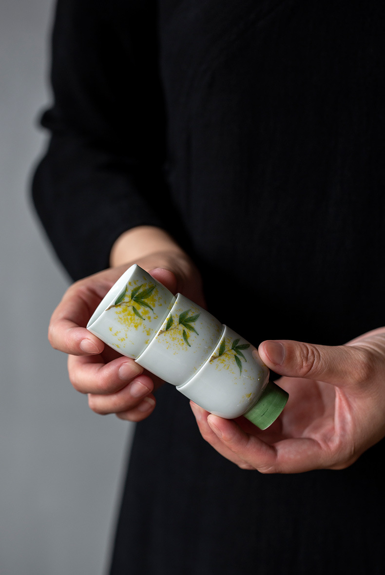 Huo Yan Feng 손으로 그린 Osmanthus Wind Bell Cup 레트로 일본식 티 컵 쿵푸 티 세트 세라믹 싱글 티 룸 가구스토어 가기