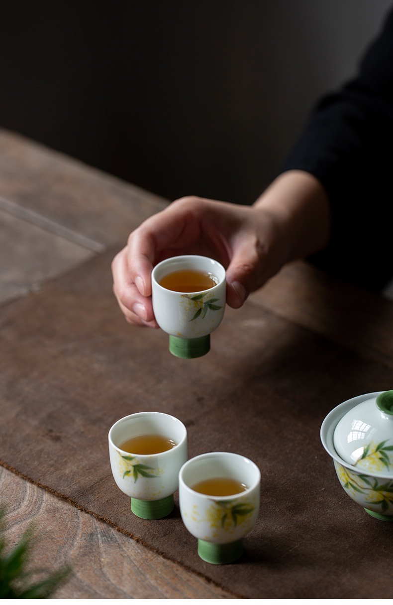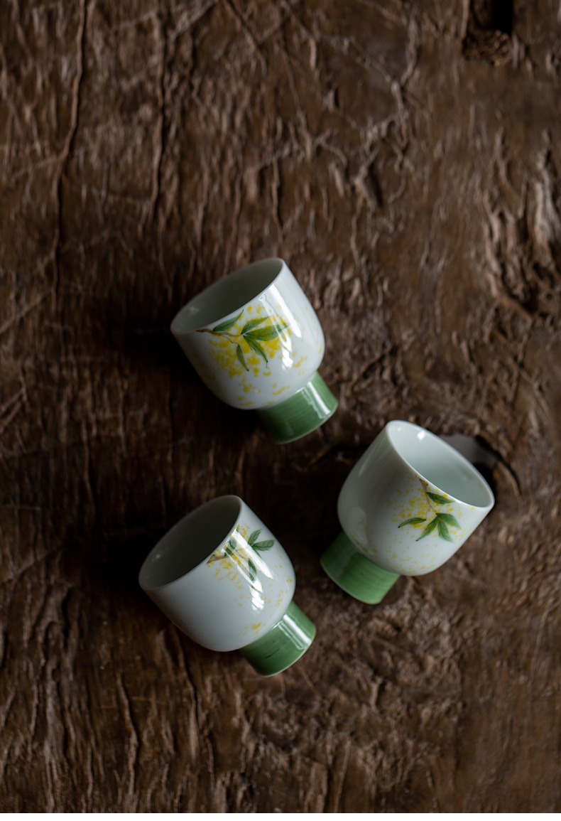 Huo Yan Feng 손으로 그린 Osmanthus Wind Bell Cup 레트로 일본식 티 컵 쿵푸 티 세트 세라믹 싱글 티 룸 가구