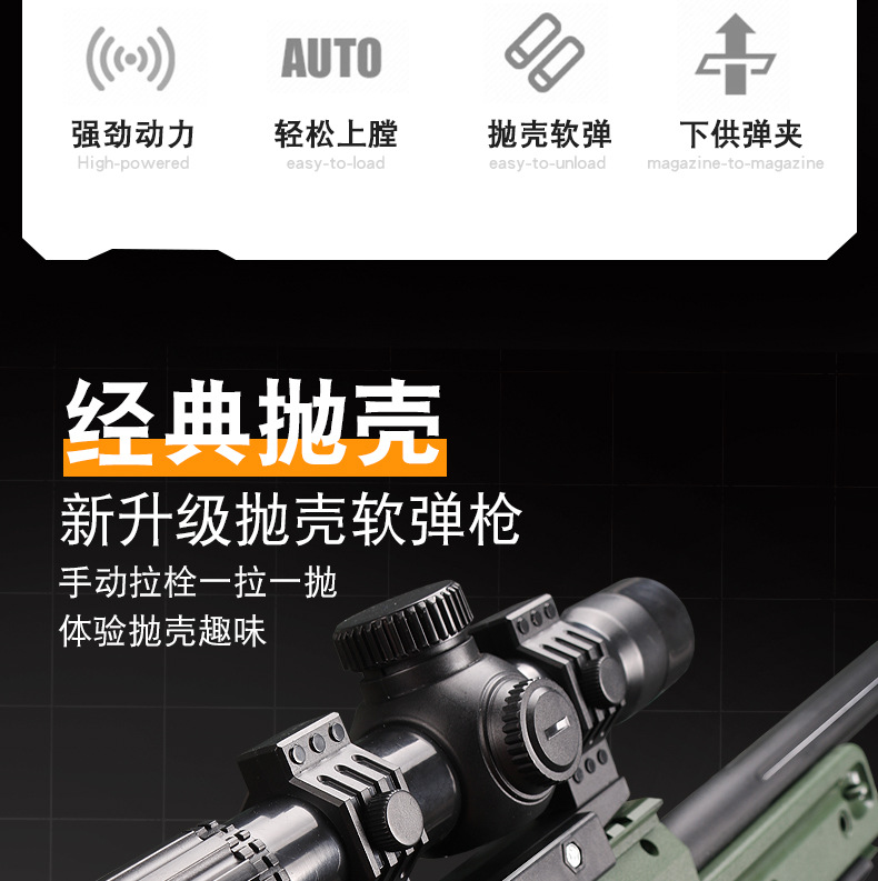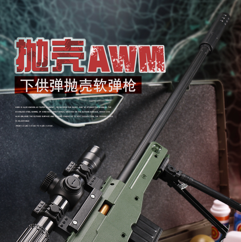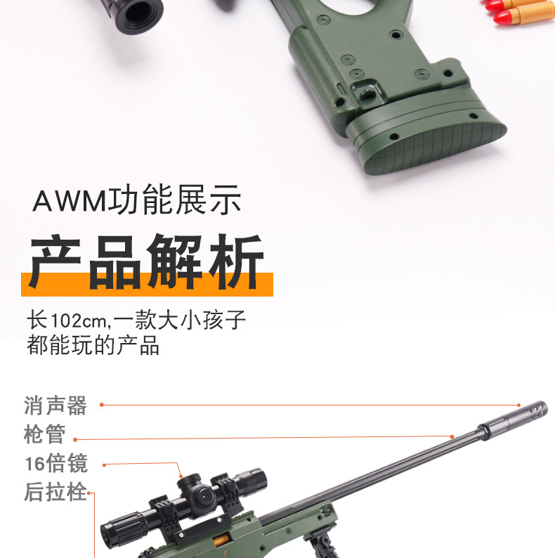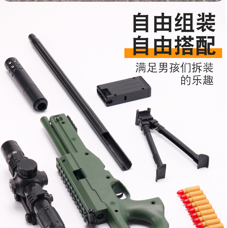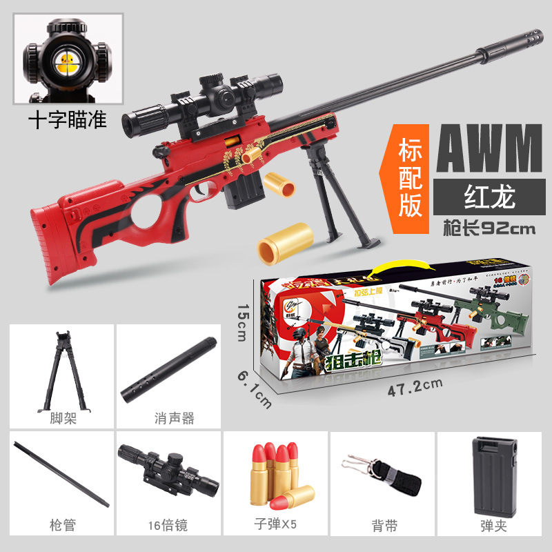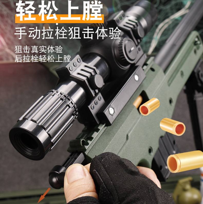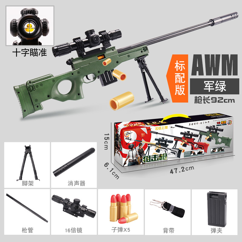 어린이 AWM 부드러운 총알 총 수동 풀 볼트 포탄 던지기 저격 소총 소년 먹는 닭 장비 시뮬레이션 장난감 총