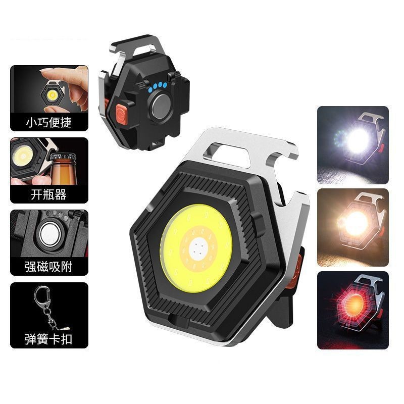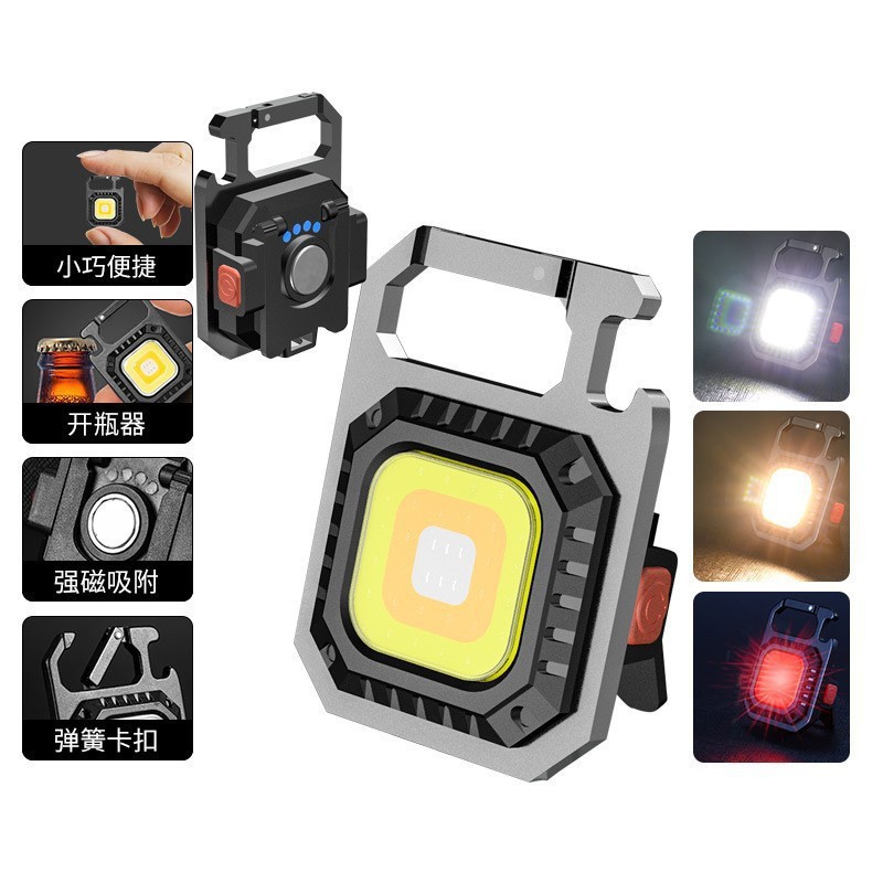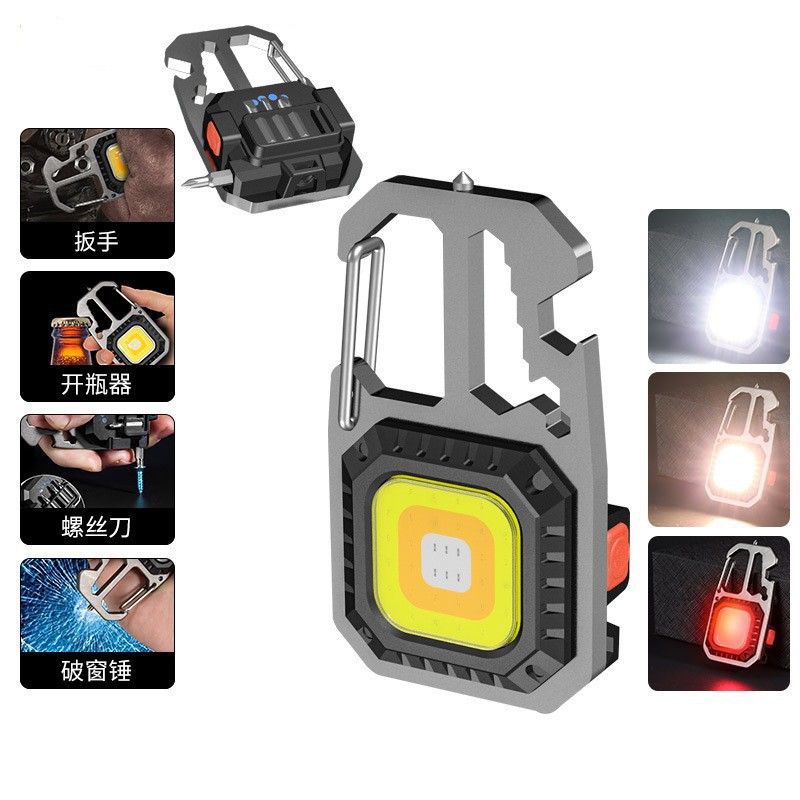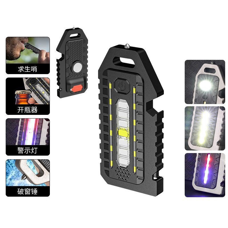 안전 해머 새로운 COB 다기능 키 체인 USB 충전 하이라이트 미니 작업 휴대용 캠핑 비상 조명