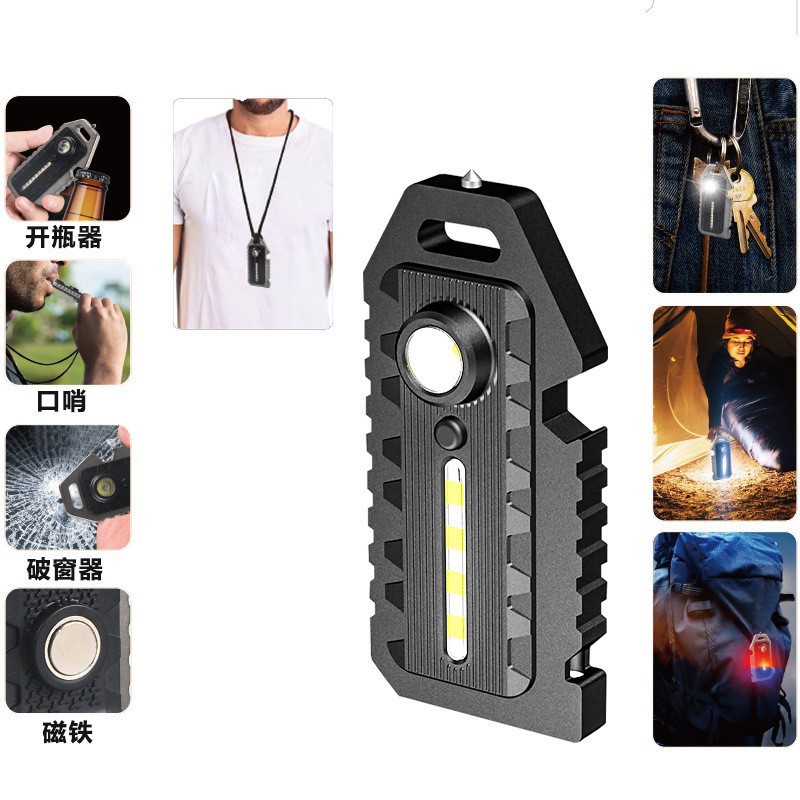안전 해머 새로운 COB 다기능 키 체인 USB 충전 하이라이트 미니 작업 휴대용 캠핑 비상 조명스토어 가기