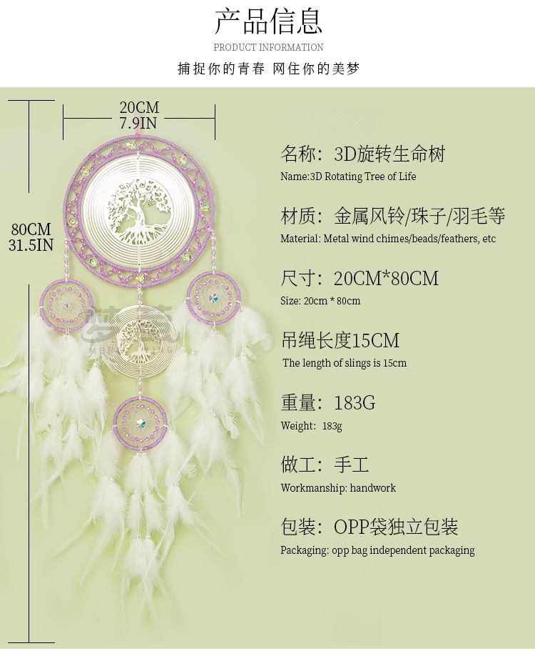 • 3D 회전 생명의 나무 드림캐처-핑크