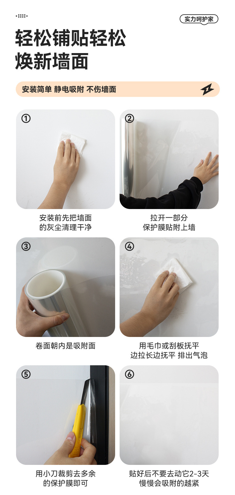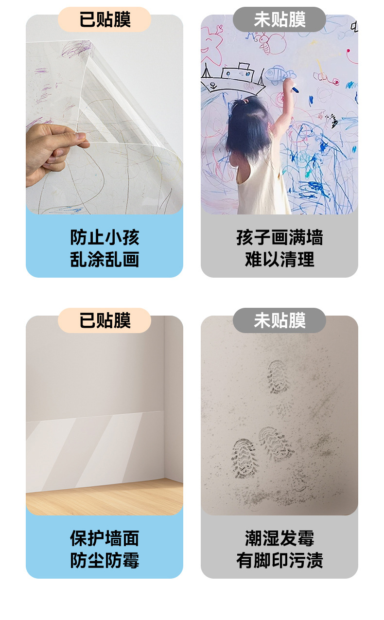라텍스 페인트 벽 장식 스티커 정전기 스티커 어린이 방 홈 자체 접착 벽 스티커 투명 정전기 벽 보호 필름