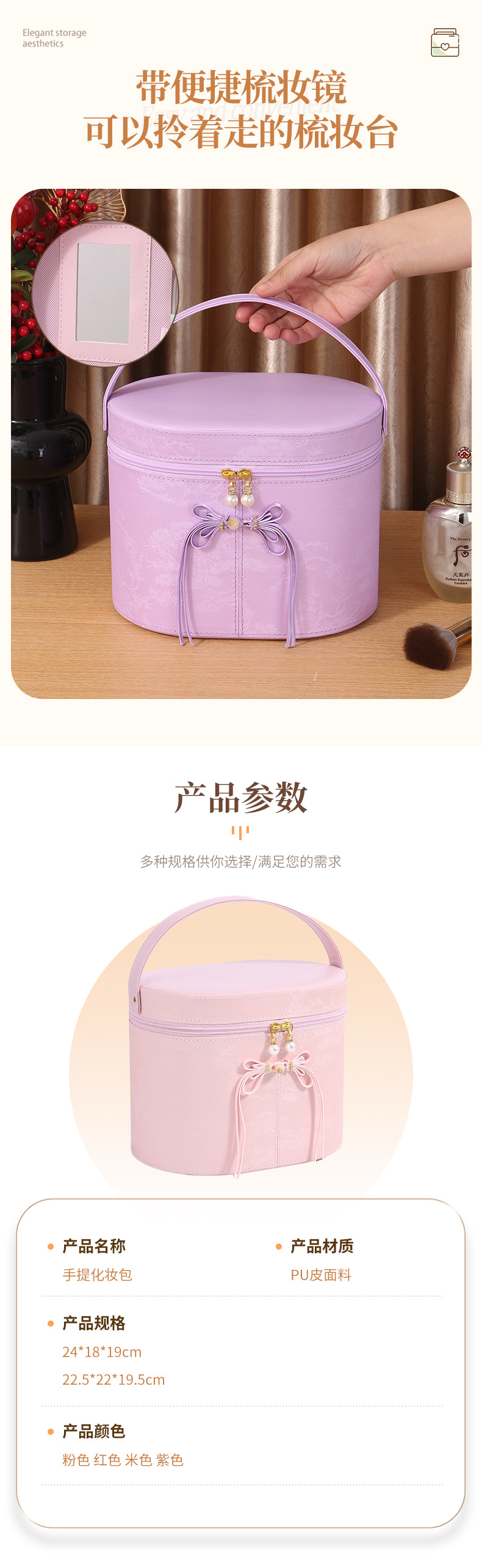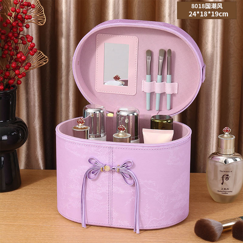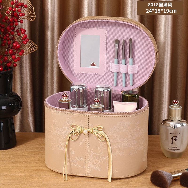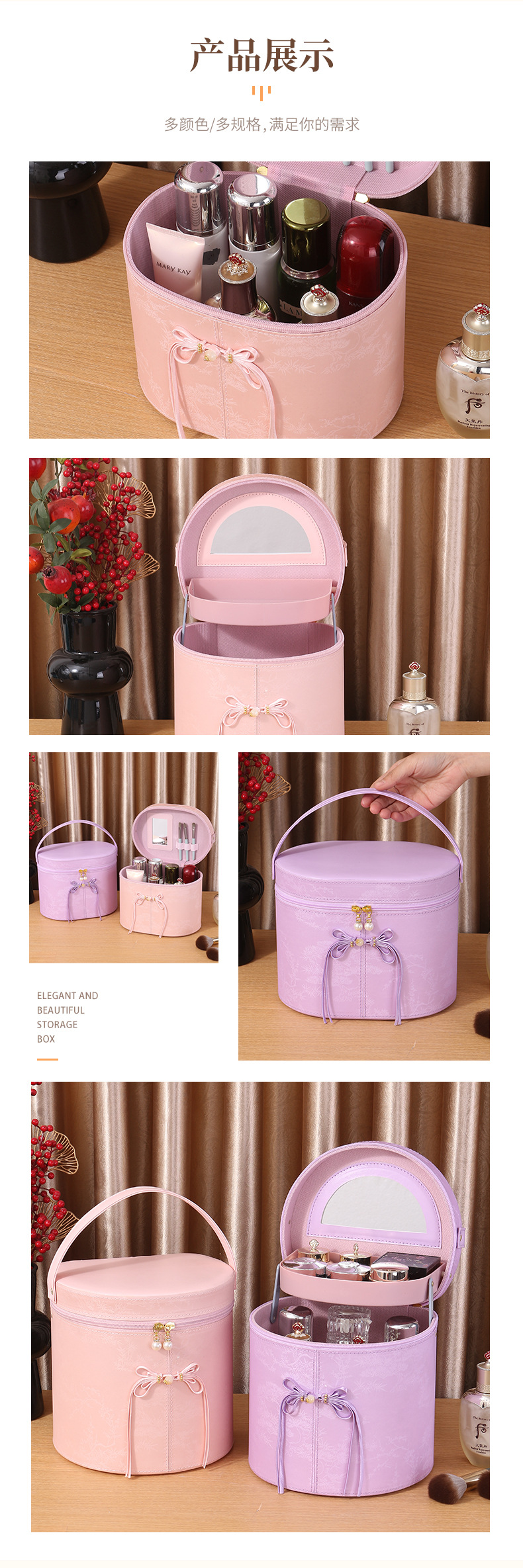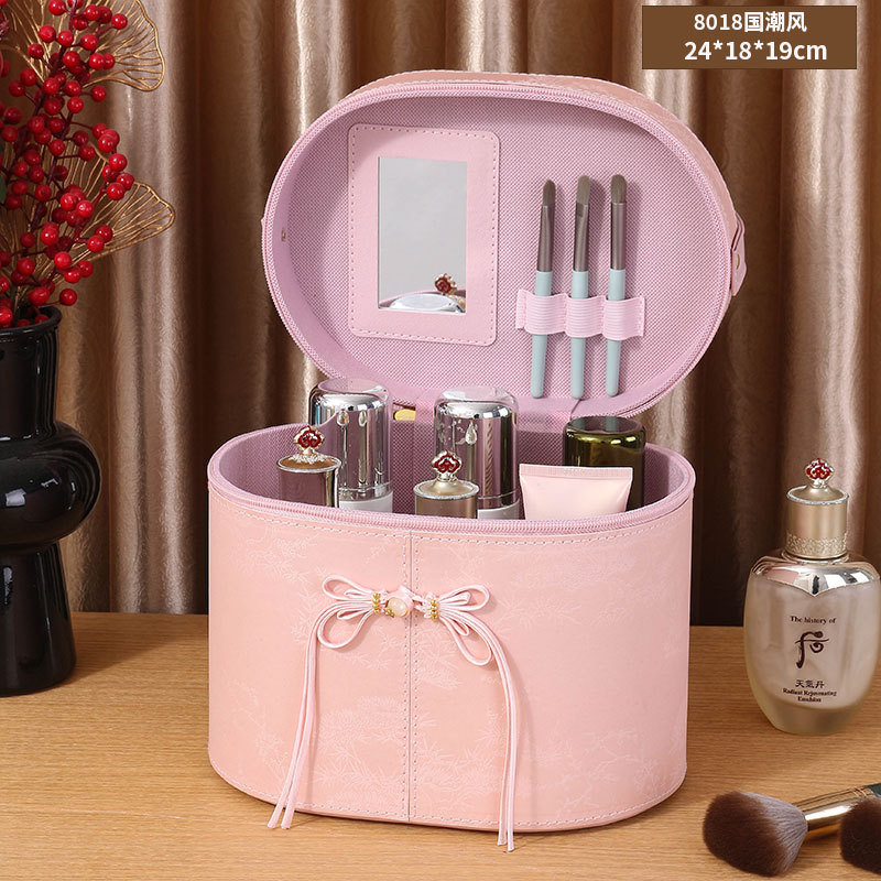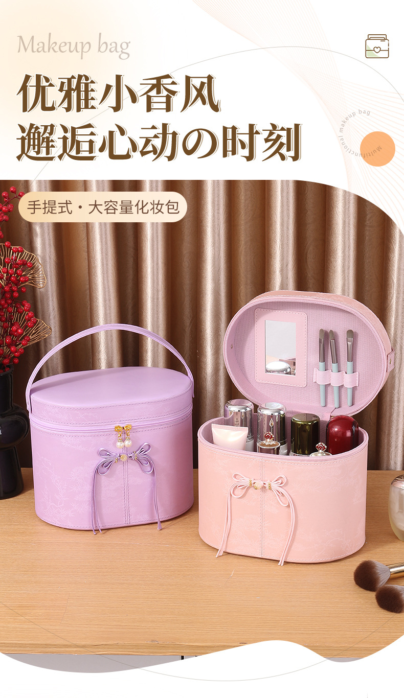 간단한 대용량 화장품 가방 핸들 pu 가죽 직물 방수 소재 트렌드 성격 화장품 가방 재고 도매스토어 가기