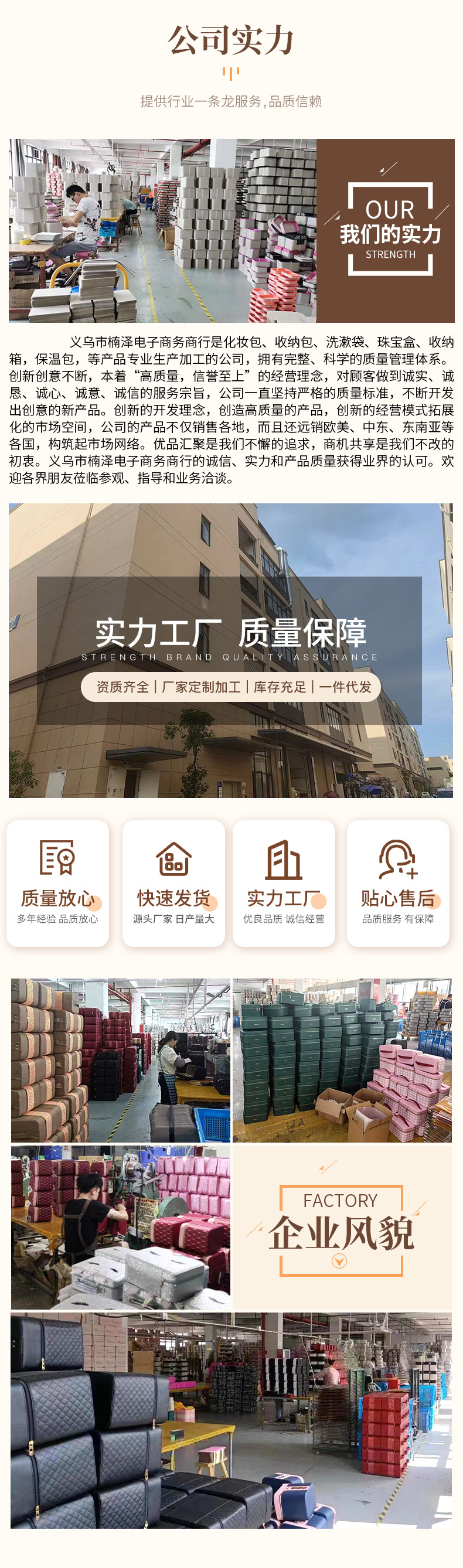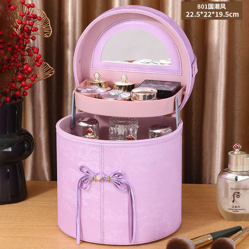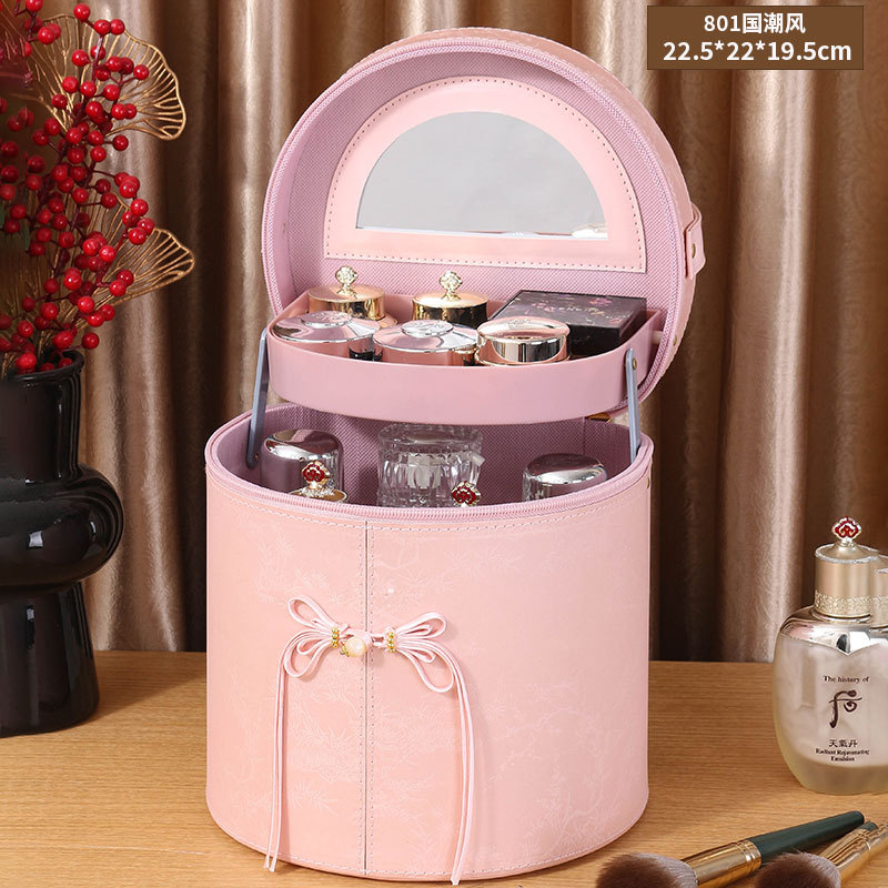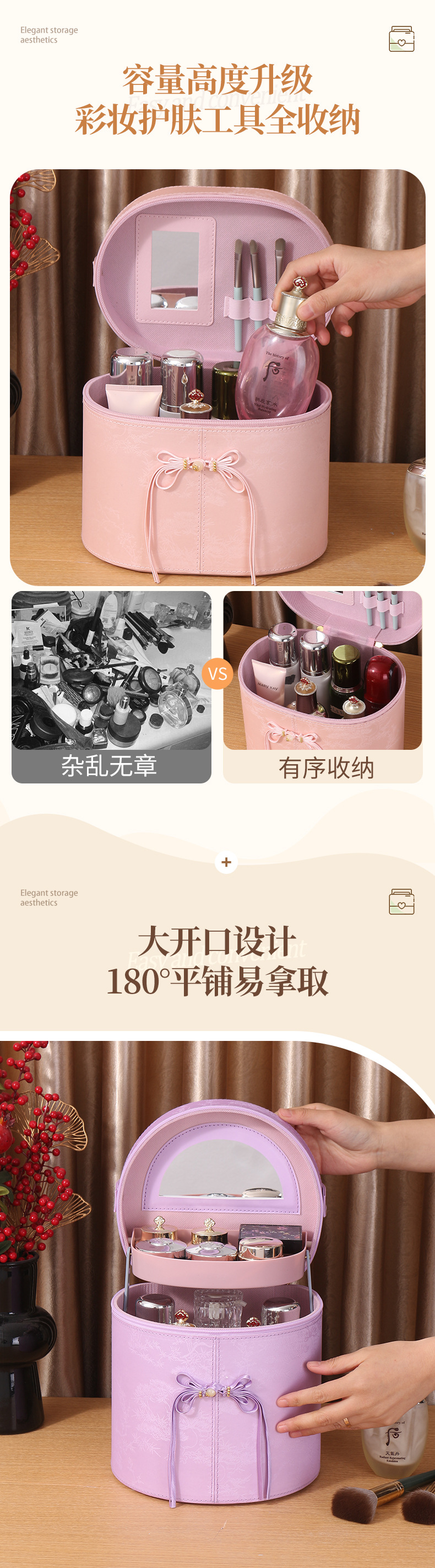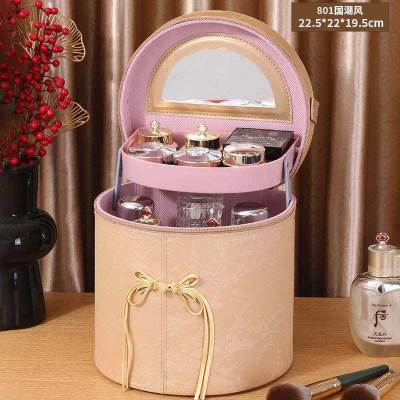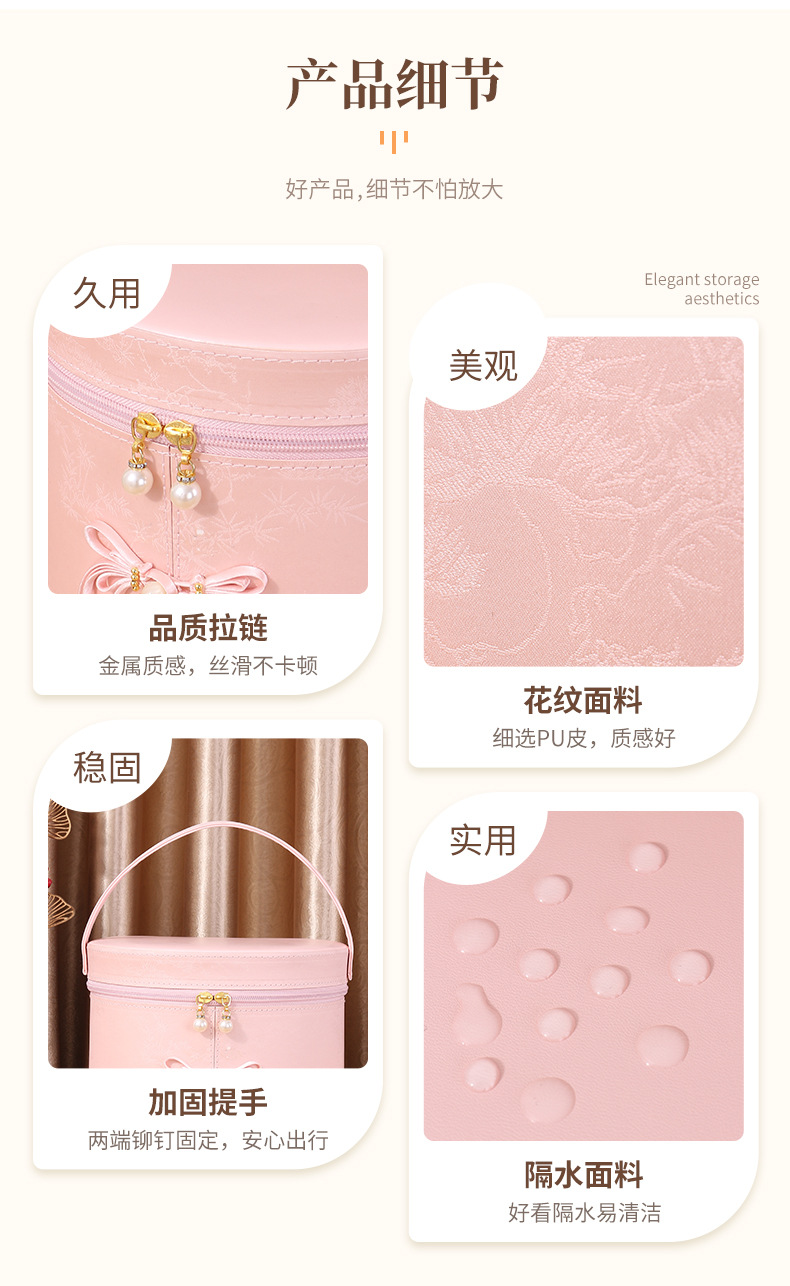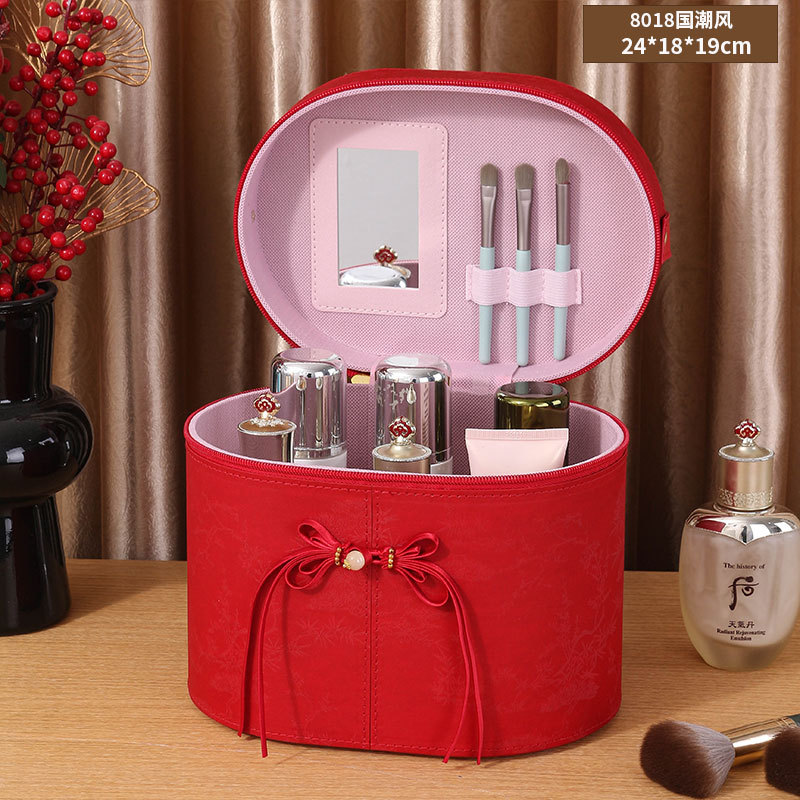 간단한 대용량 화장품 가방 핸들 pu 가죽 직물 방수 소재 트렌드 성격 화장품 가방 재고 도매스토어 가기