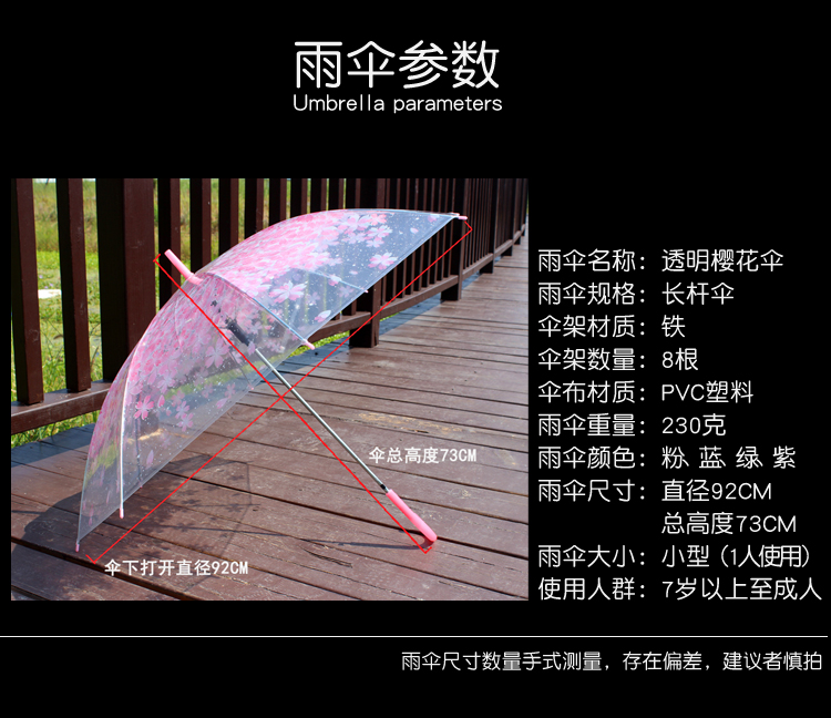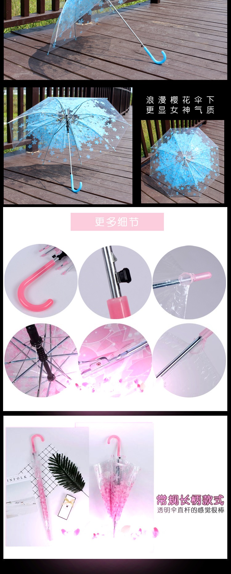 어린이 우산 여자 초등학생 투명 벚꽃 우산 투명 여성 긴 손잡이 여자 심장 귀여운 아이들 학생