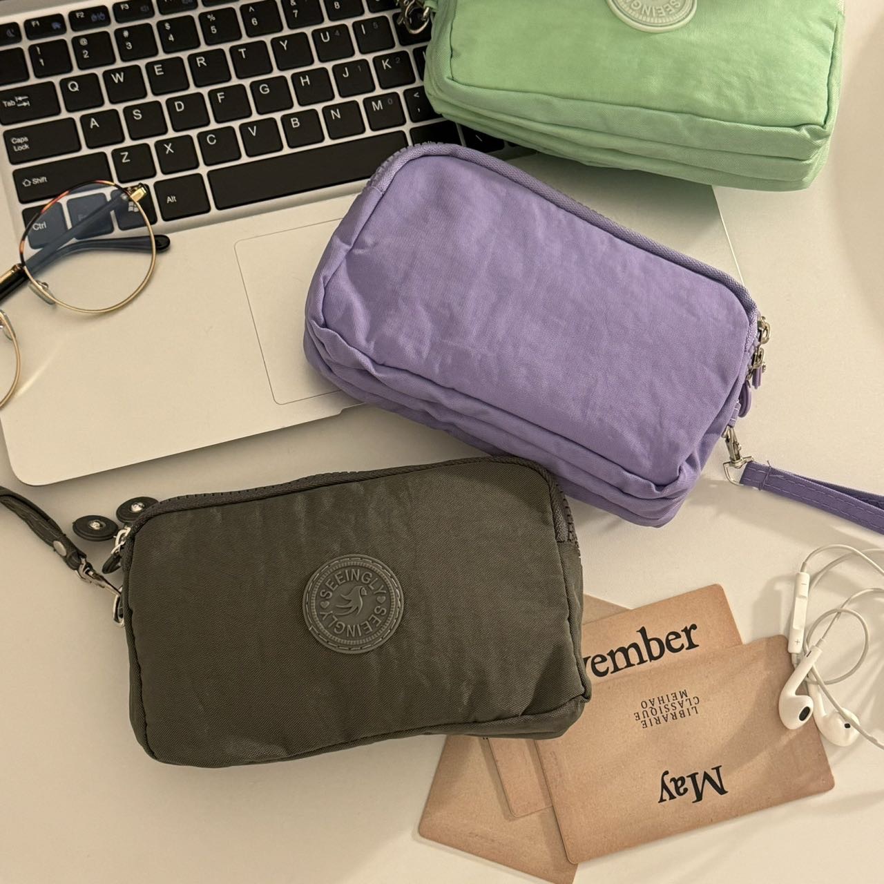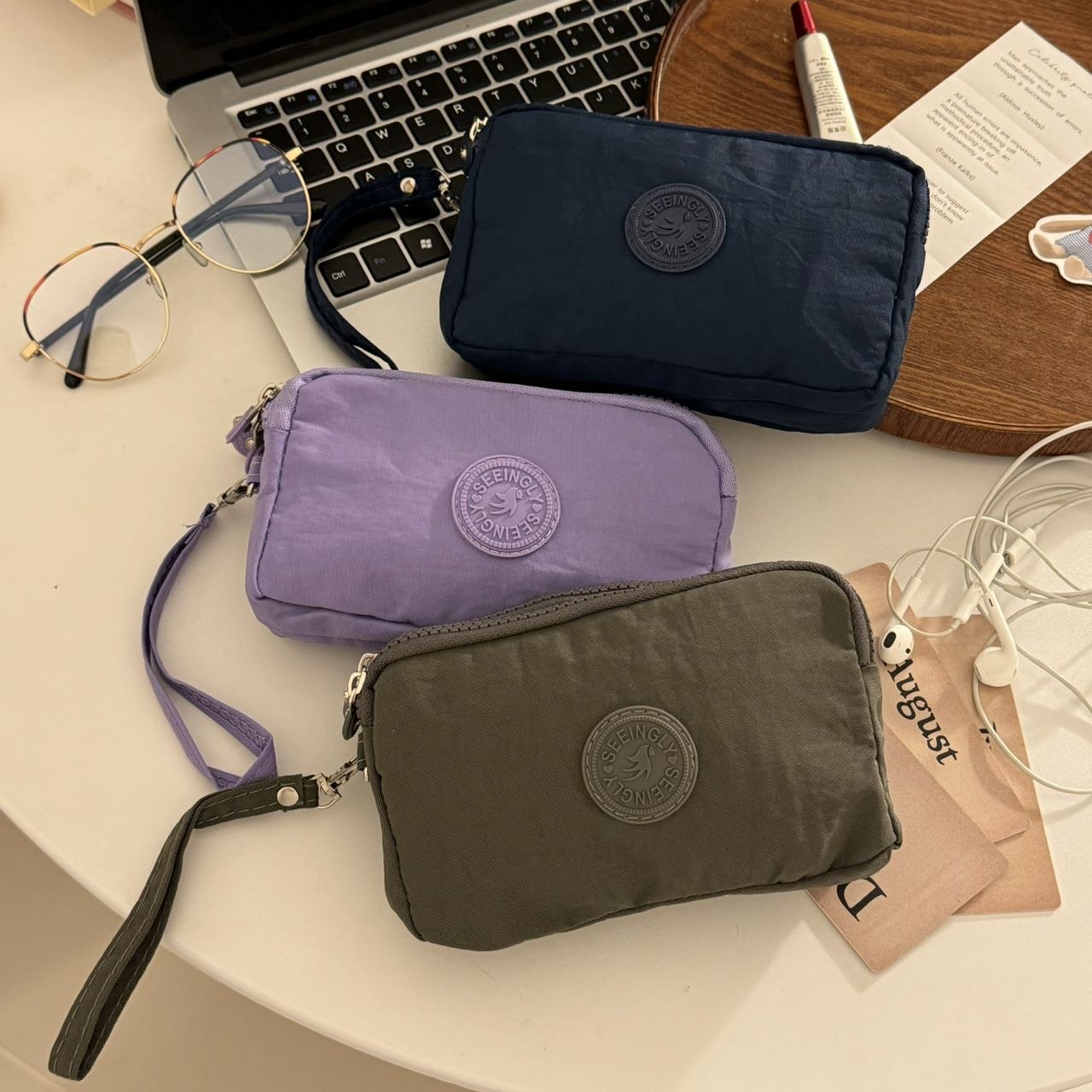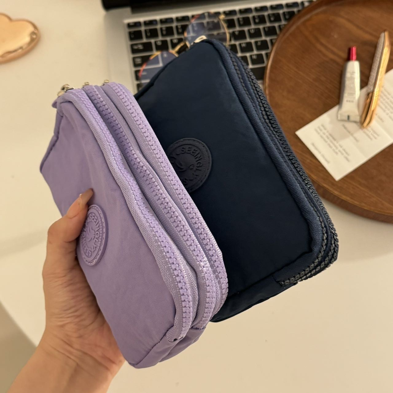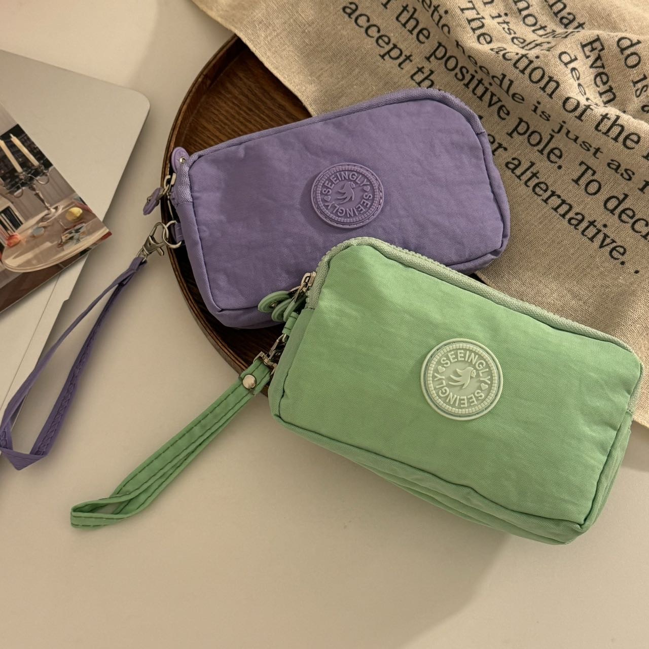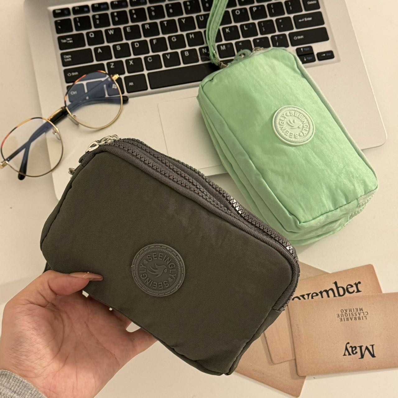 한국 스타일 패브릭 핸드 헬드 코인 지갑 여성의 긴 유행 3 층 지퍼 대용량 대형 스크린 휴대 전화 키 백스토어 가기