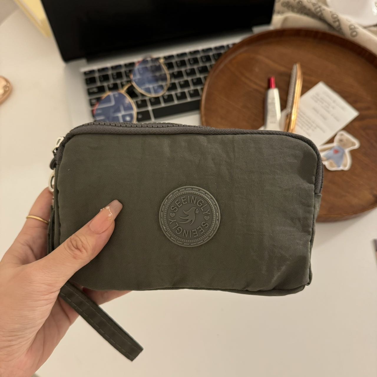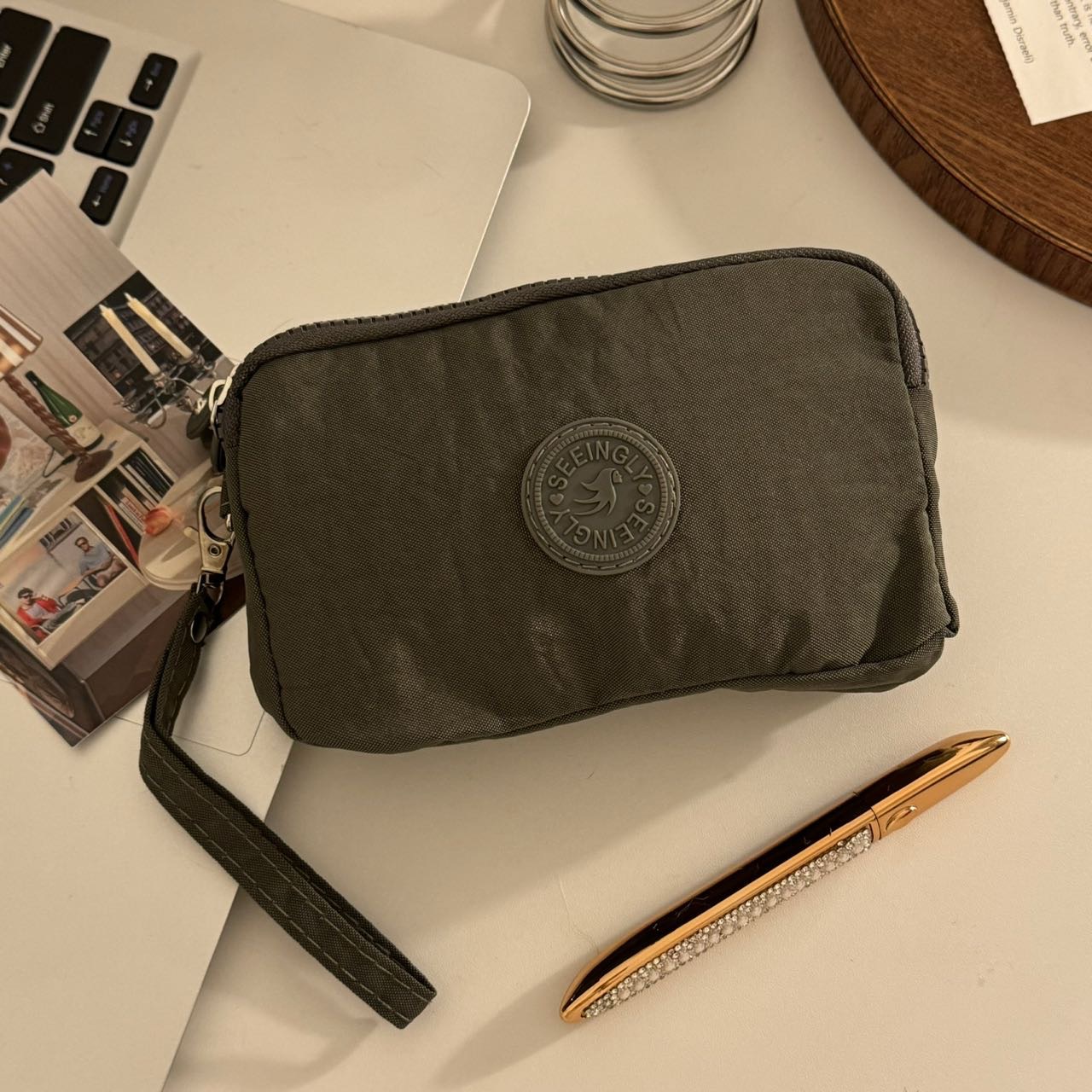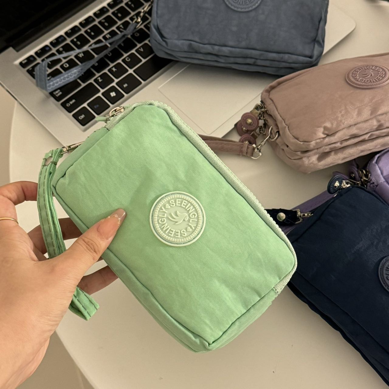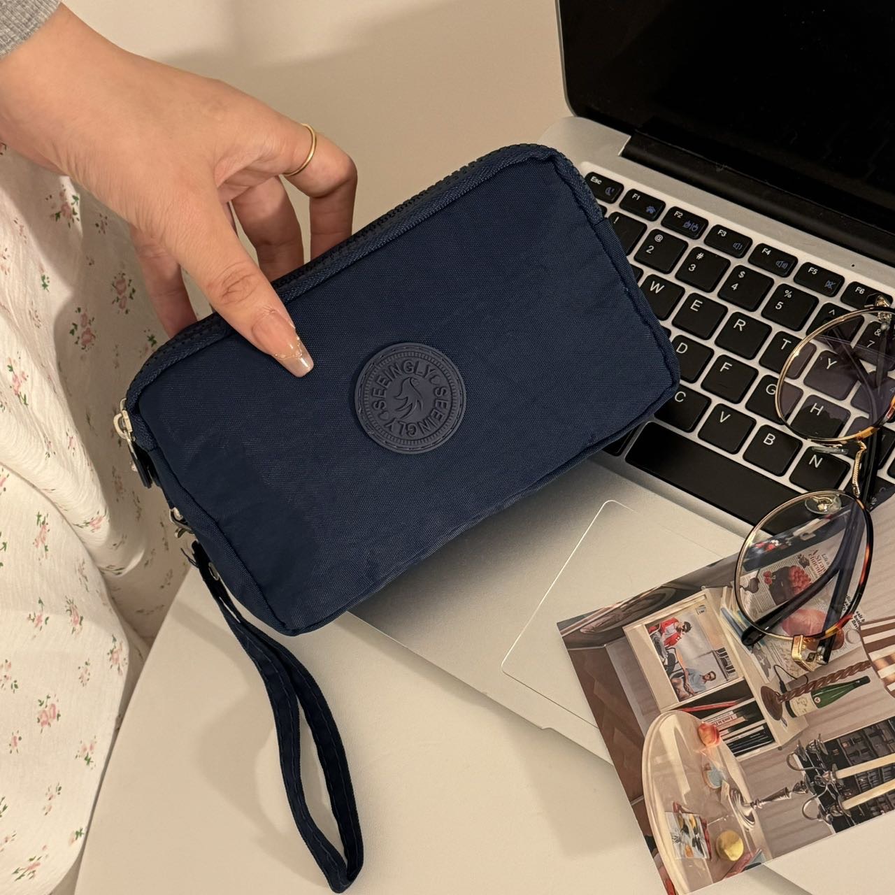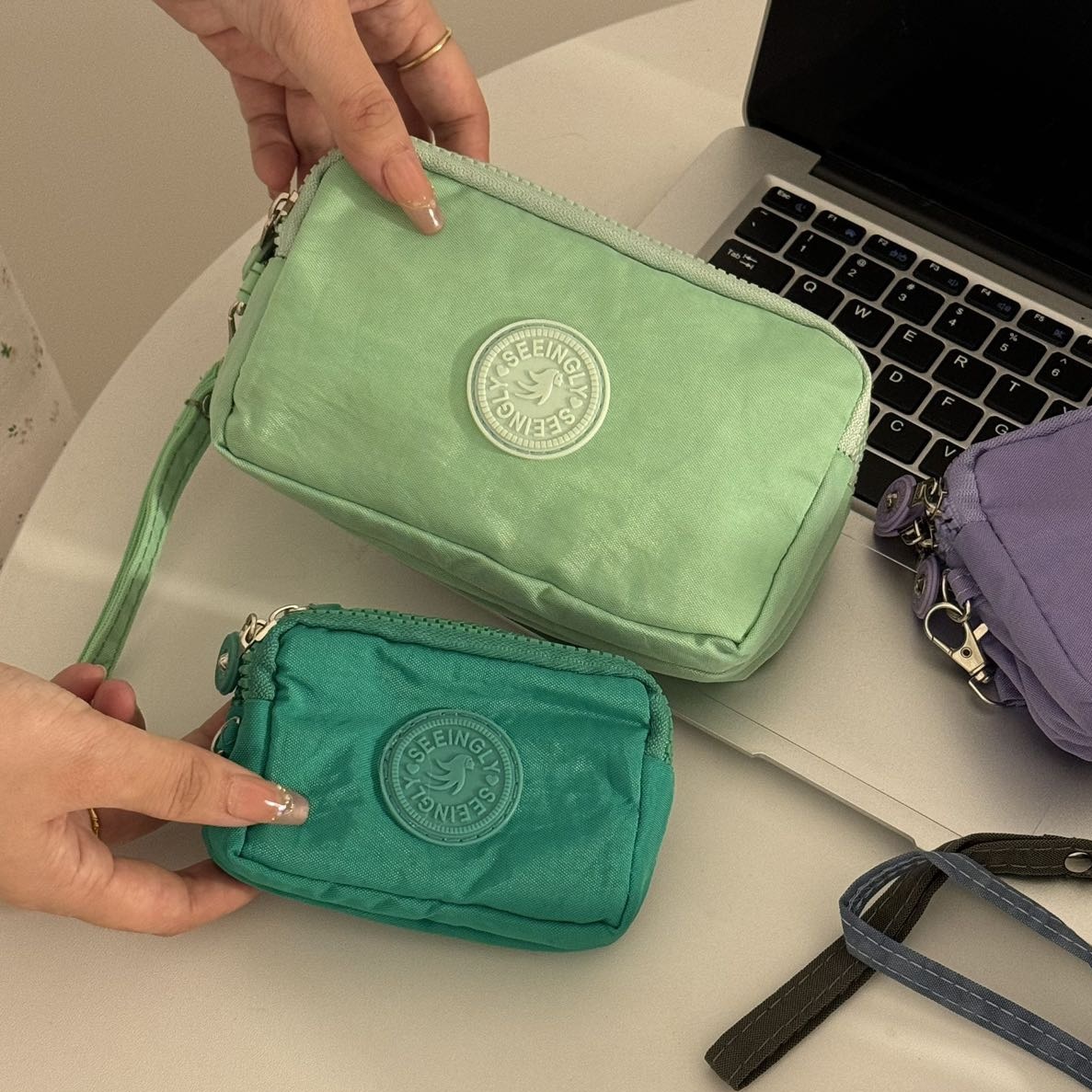 한국 스타일 패브릭 핸드 헬드 코인 지갑 여성의 긴 유행 3 층 지퍼 대용량 대형 스크린 휴대 전화 키 백스토어 가기