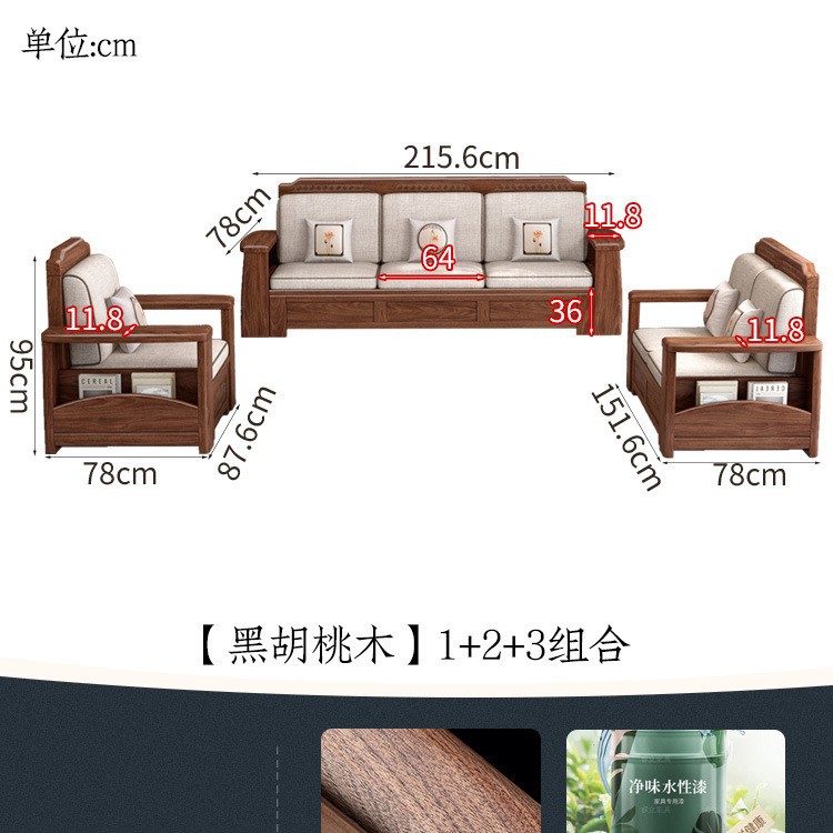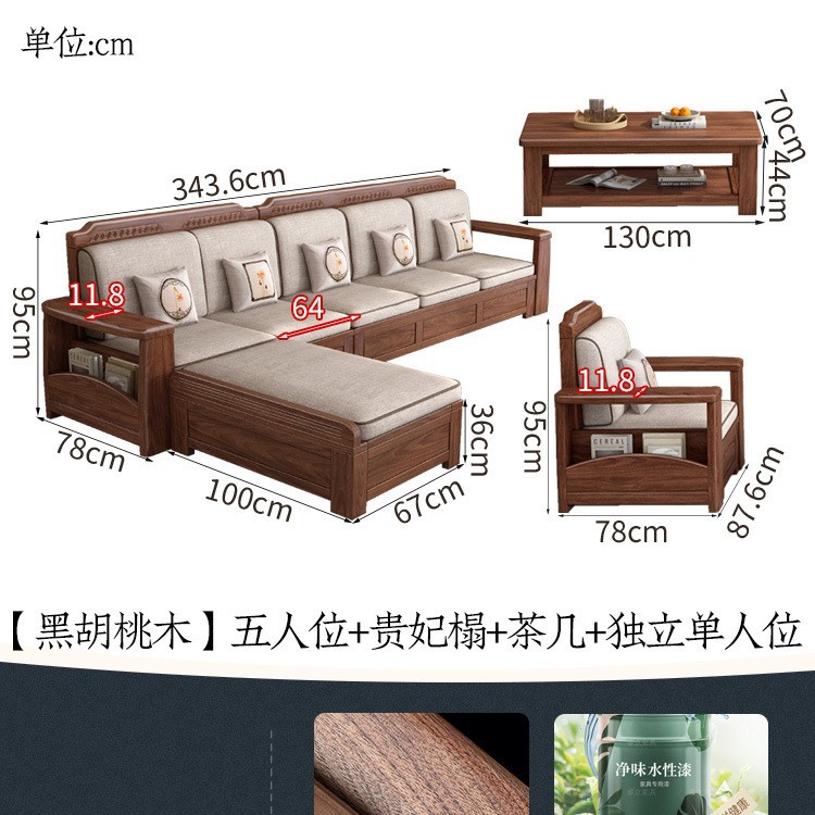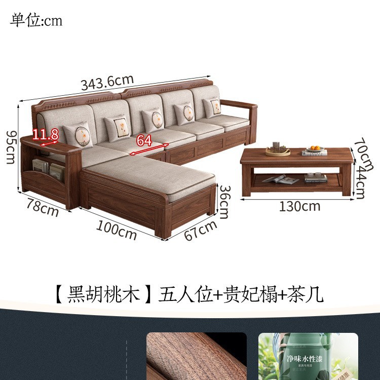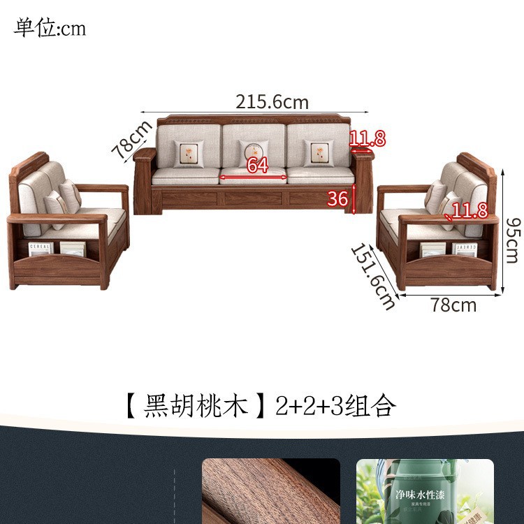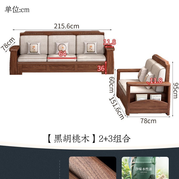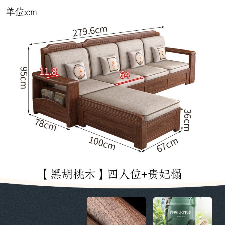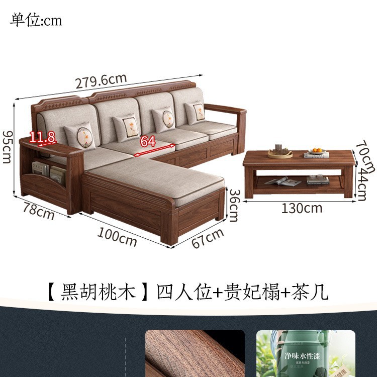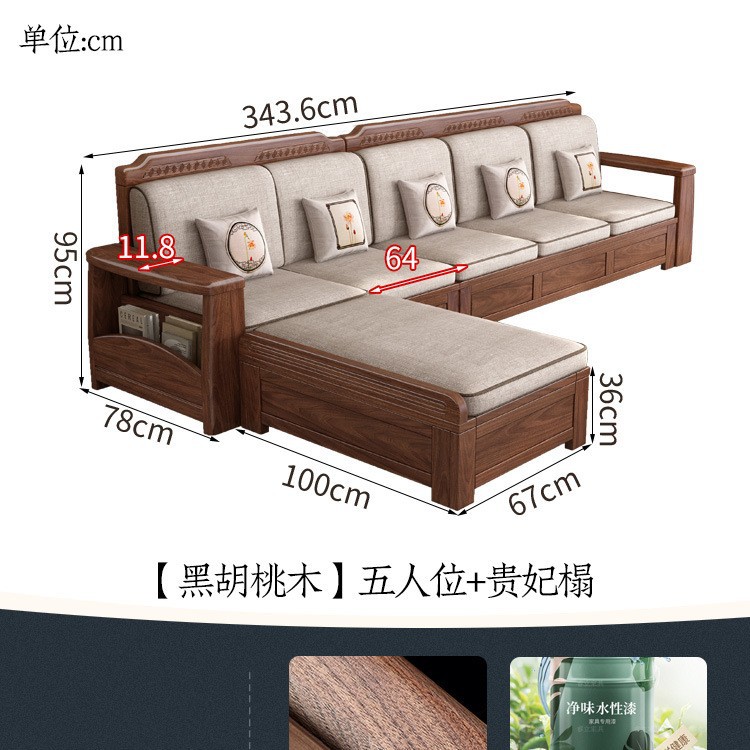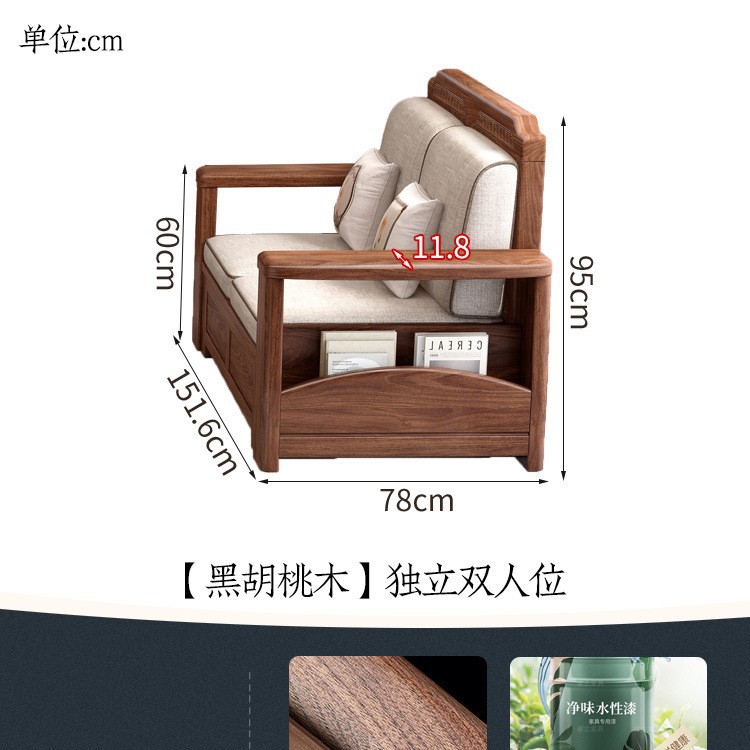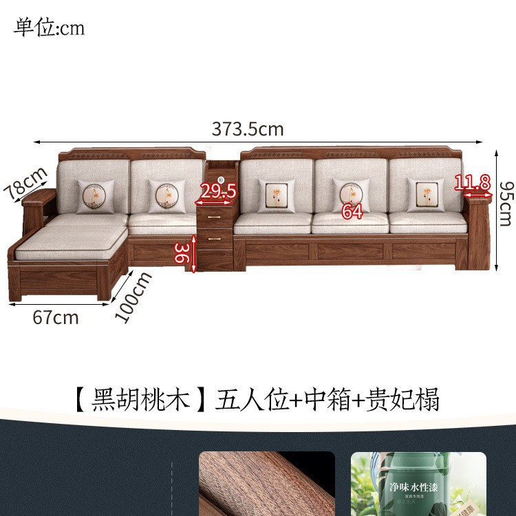 새로운 중국 스타일 블랙 호두 솔리드 우드 소파 거실 현대 간단한 작은 아파트 팔걸이 저장 상자 유형 나무 소파스토어 가기